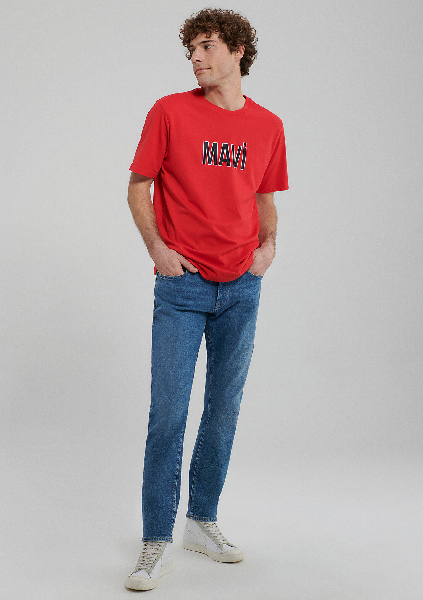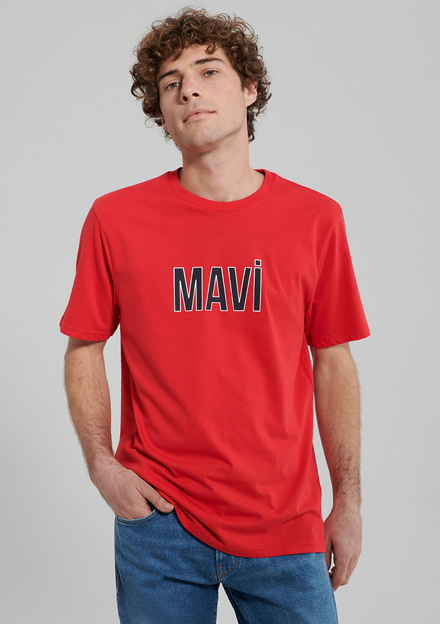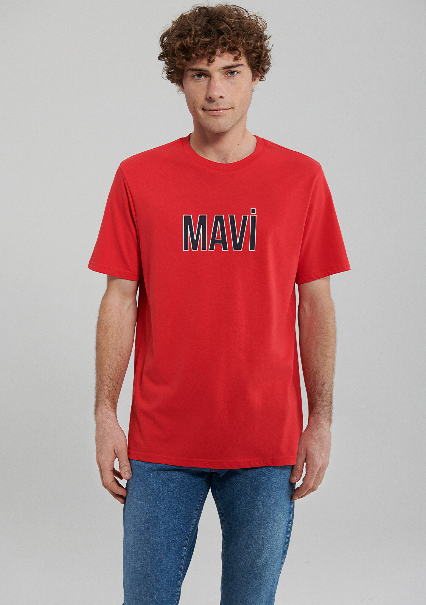 - نام : Mavi Logo Baskılı Kırmızı Tişört