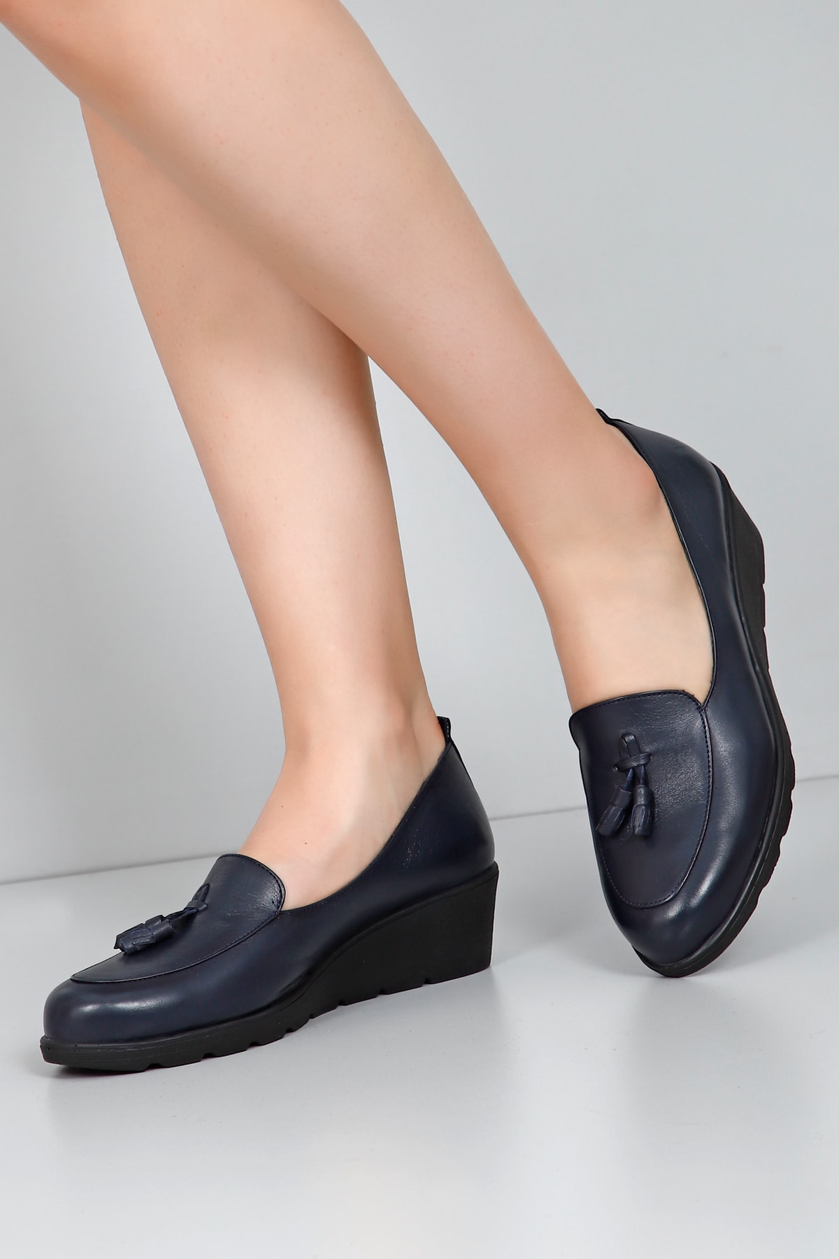 - نام : Hakiki Deri Lacivert Antik Kadın Günlük (Casual) Ayakkabı 24102