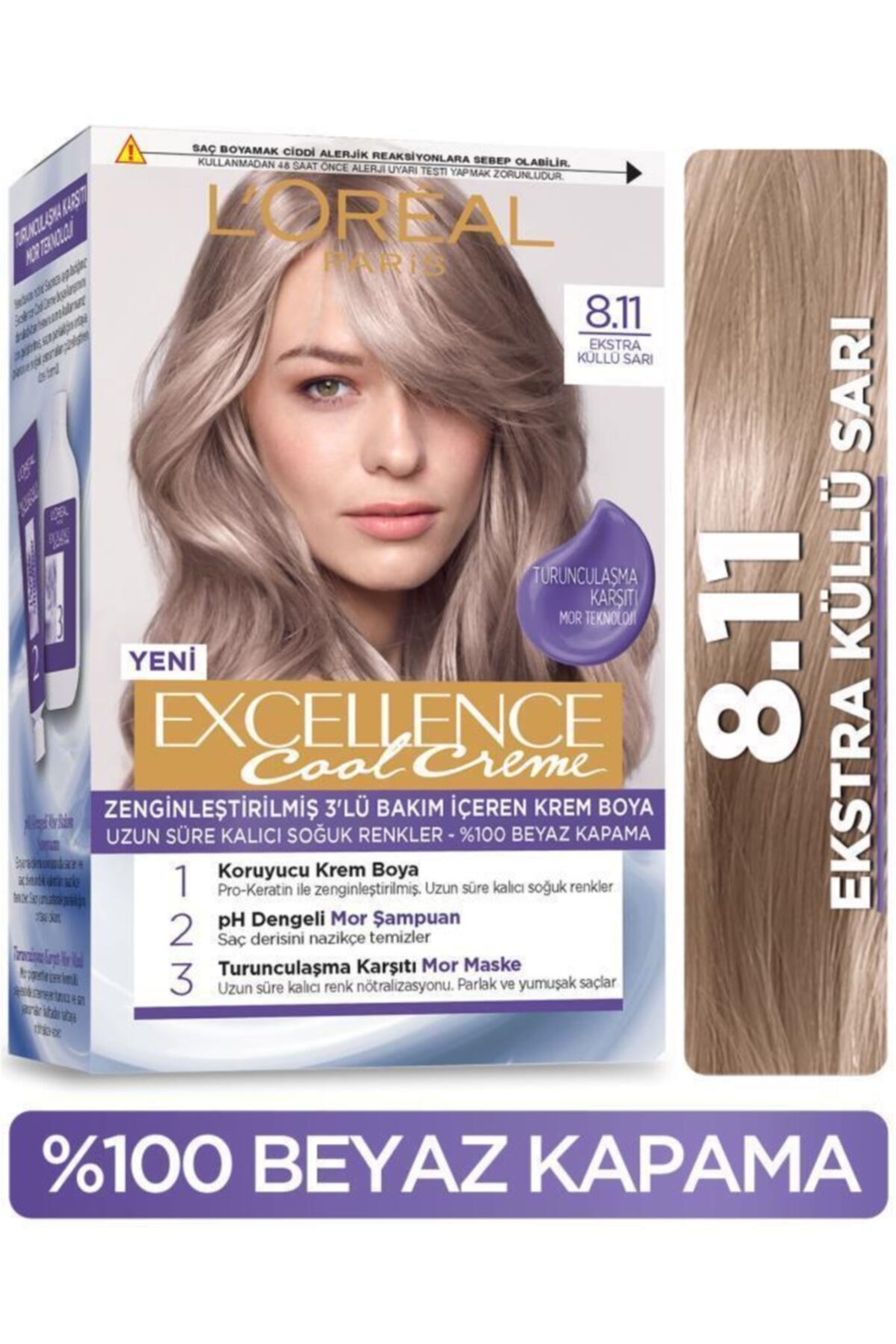 - نام : L’oréal Paris Excellence Cool Creme Saç Boyası – 8.11 Ekstra Küllü Sarı
