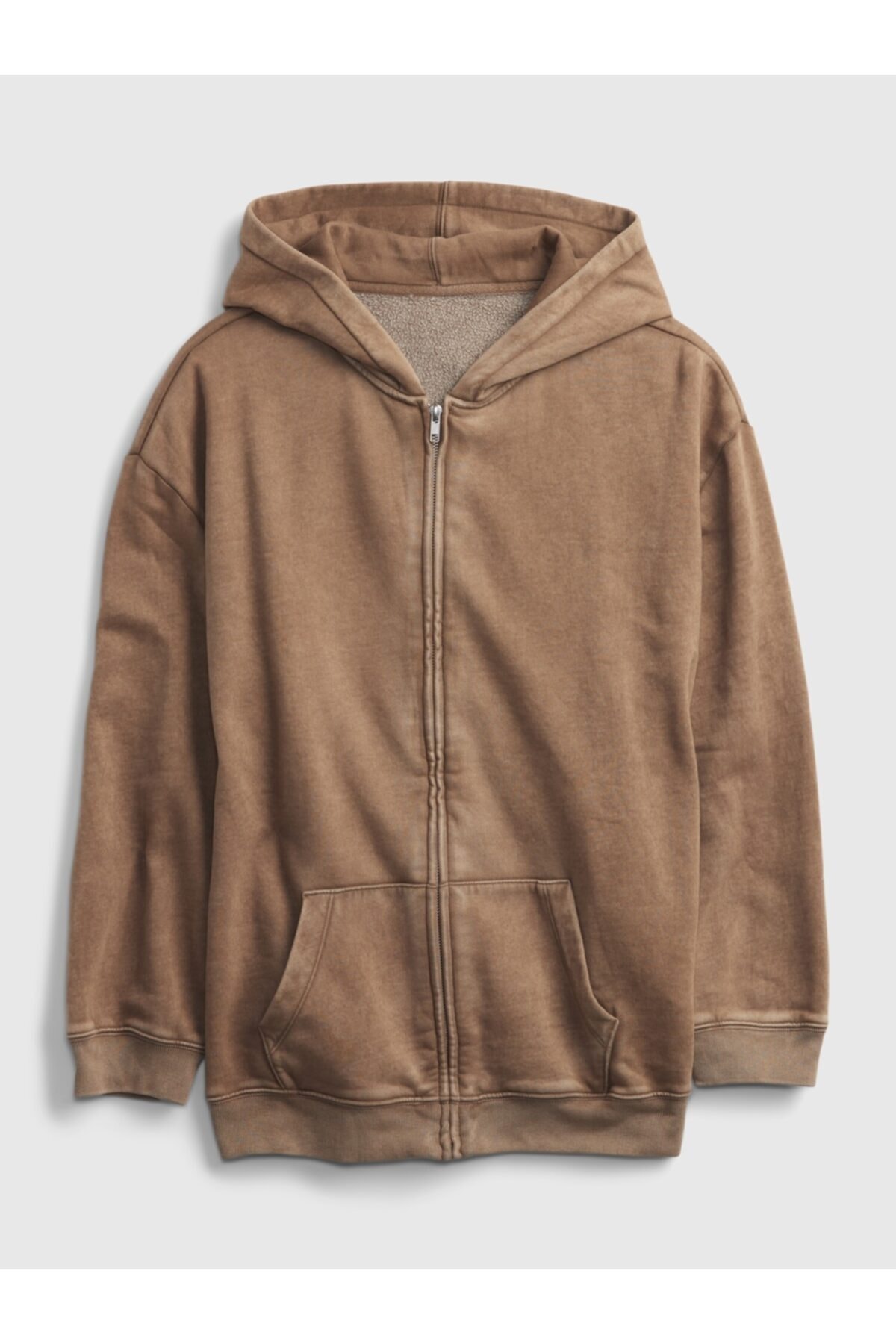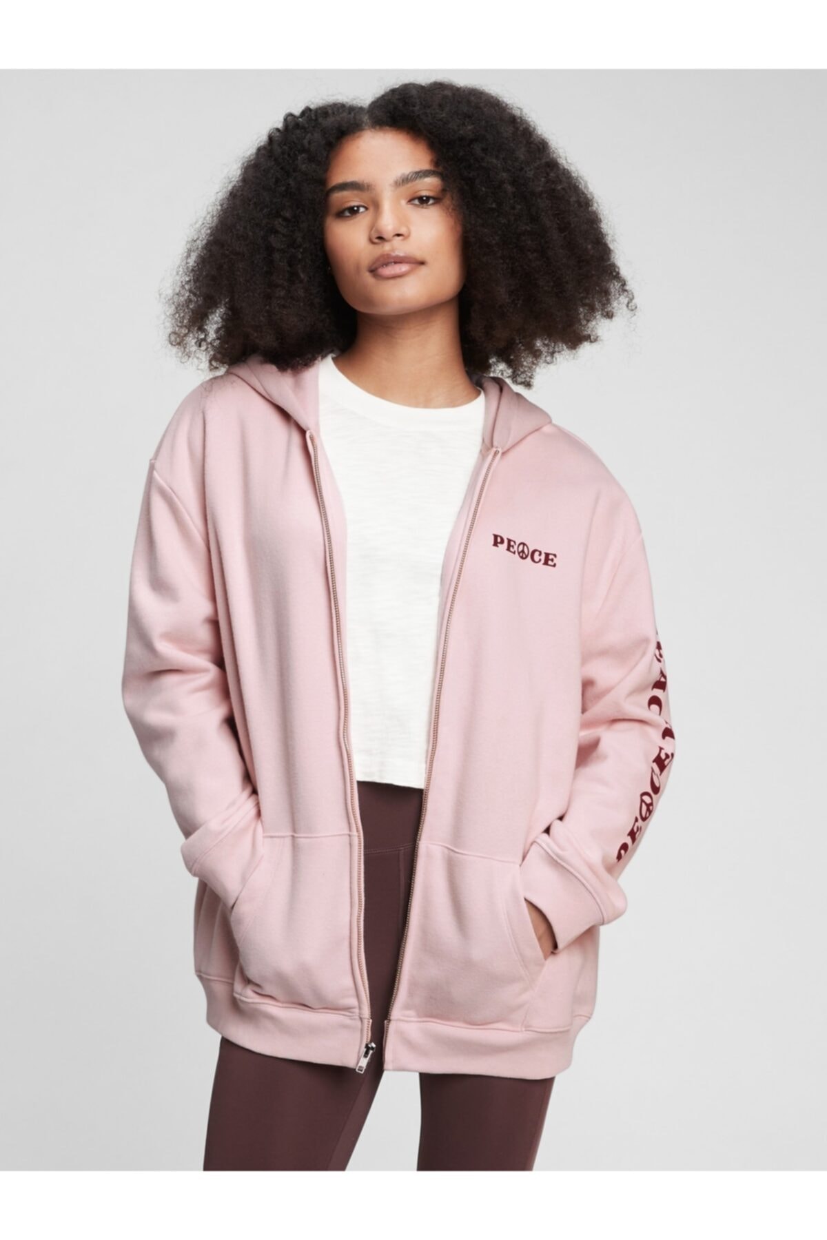 Eşofman Üst Bu kapüşonlu üst %23 geri dönüştürülmüş polyesterden üretilmiştir. Dünya için daha az atık. Sizin için daha harika sweatshirtler.|Yumuşak triko sweatshirt.|Fitilli kol manşetleri|Kapüşonlu|Fermuarlı kapama|Önde cepli|bunu sil. Oversized fit %77 Pamuk, %23 Geri Dönüştürülmüş Polyester.
