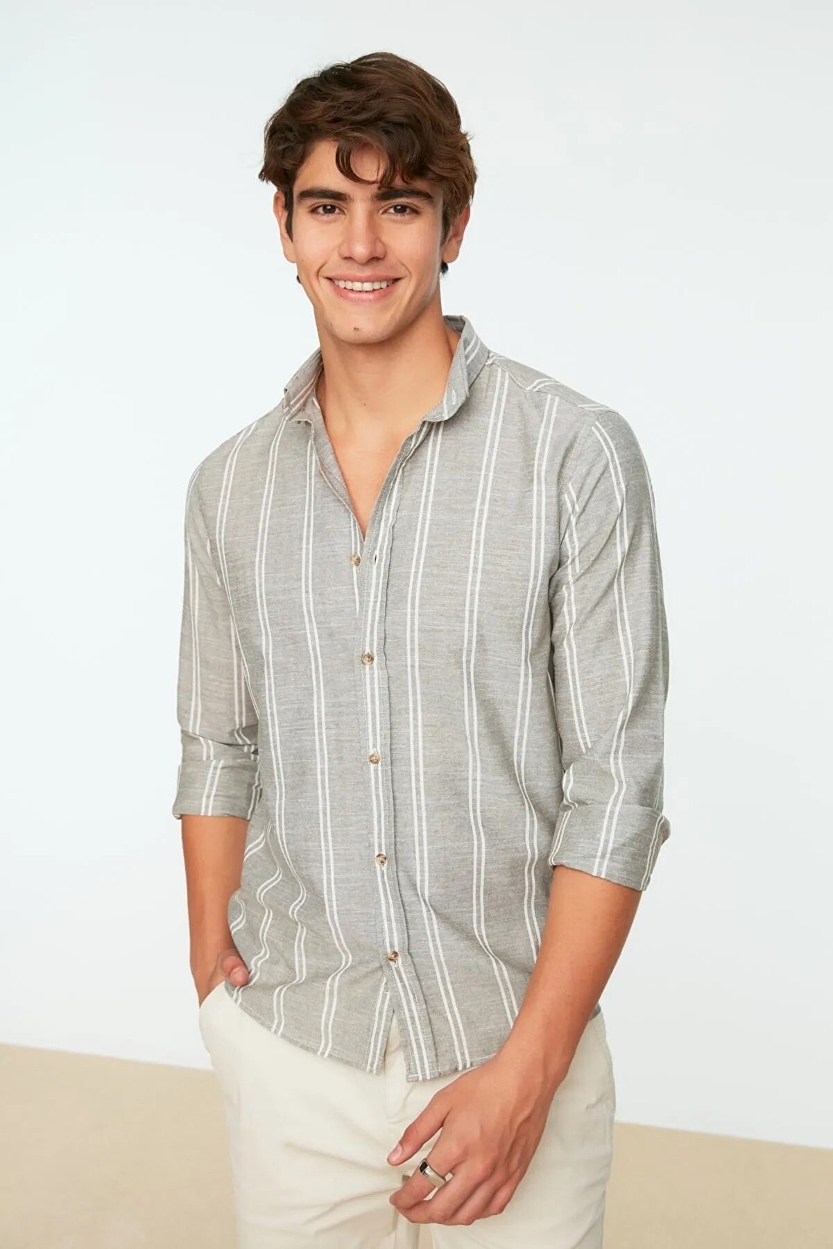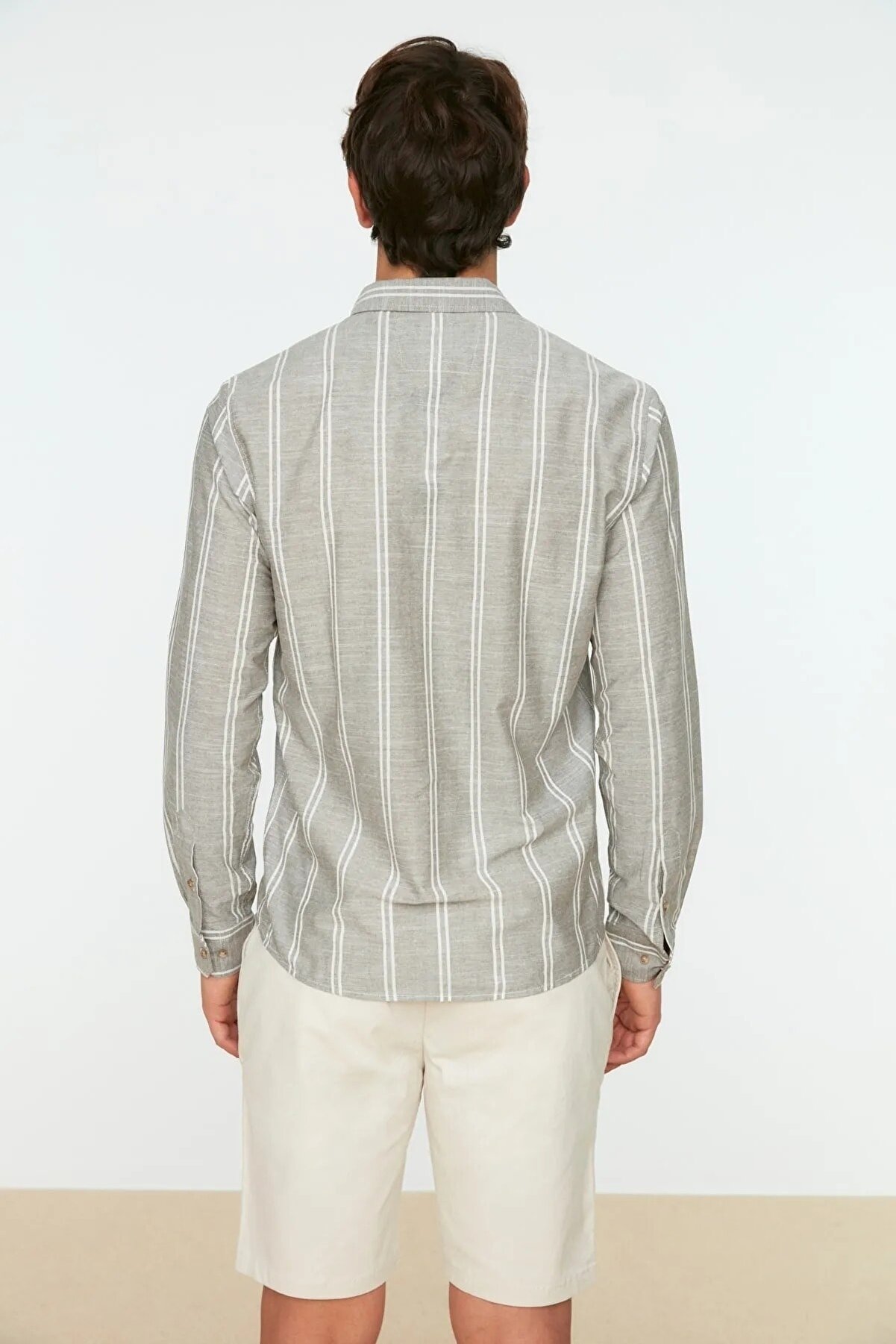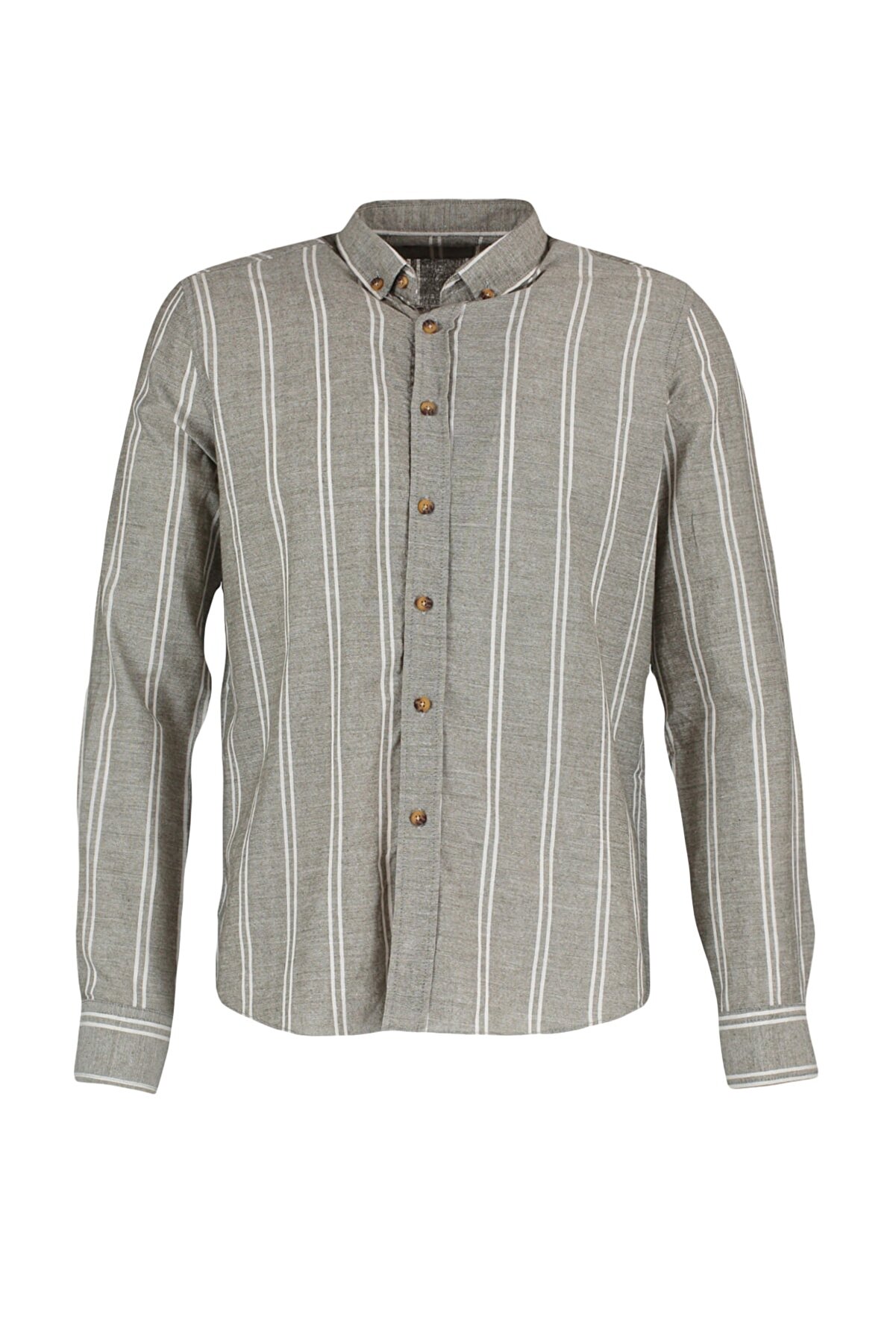 - نام : Haki Erkek Slim Fit Düğmeli Yaka İnce Çizgili Gömlek TMNSS20GO0092