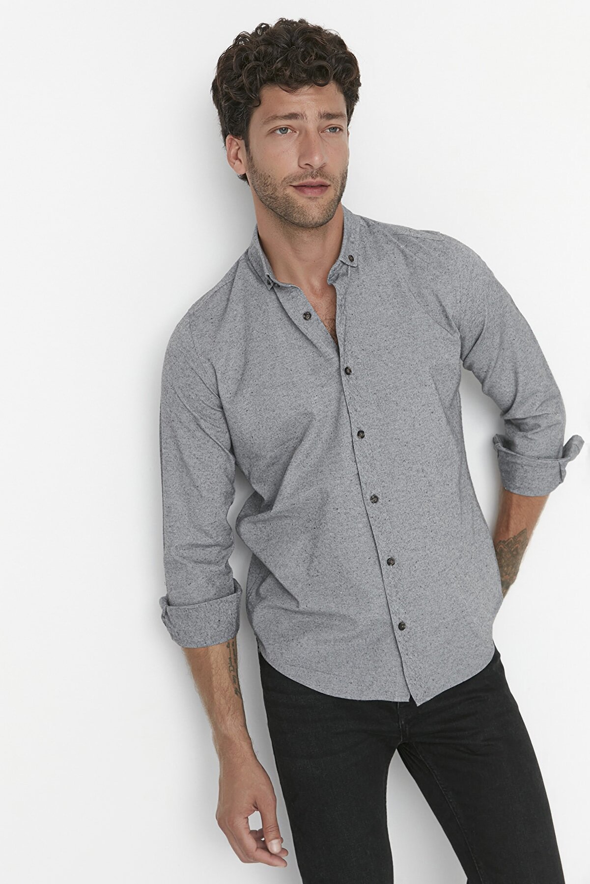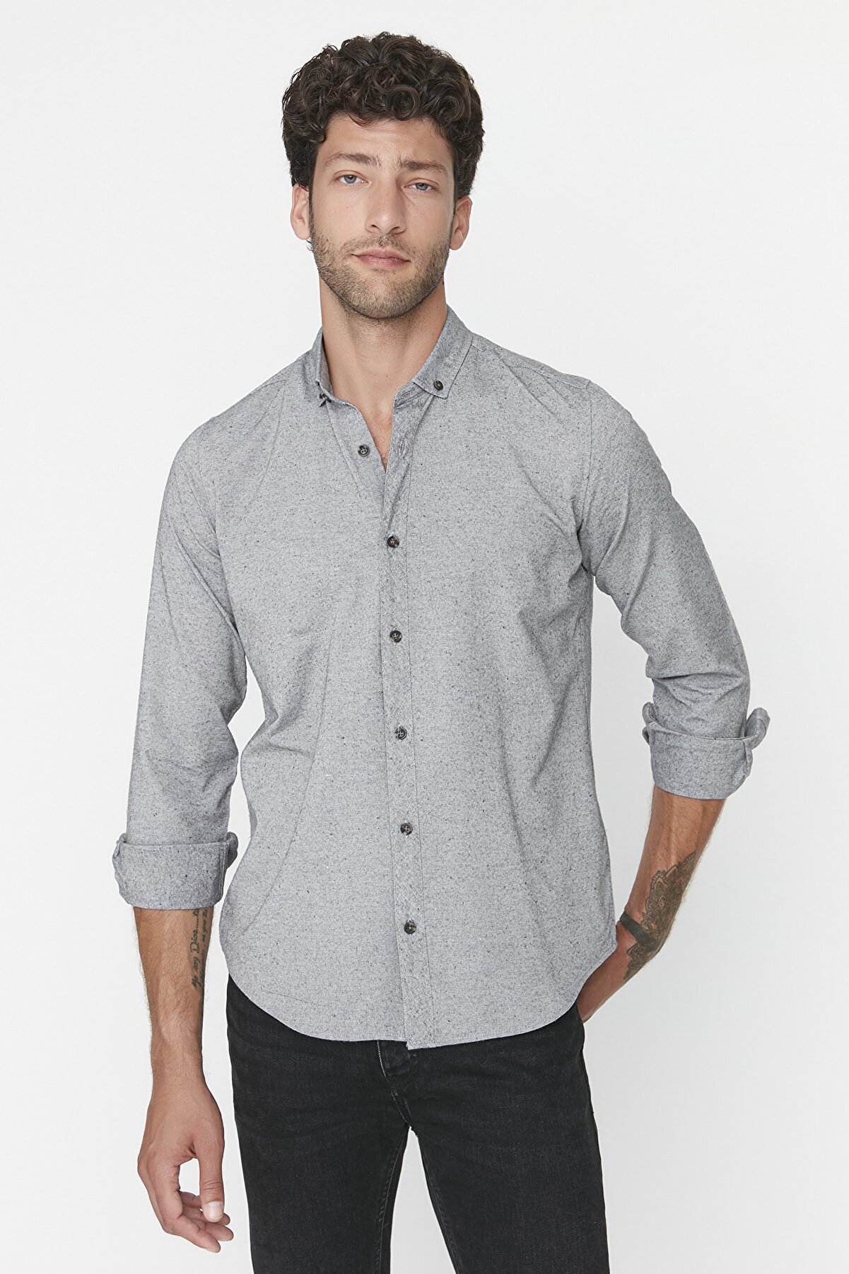 - نام : Gri Erkek Slim Fit Düğmeli Yaka Gömlek TMNAW20GO0094