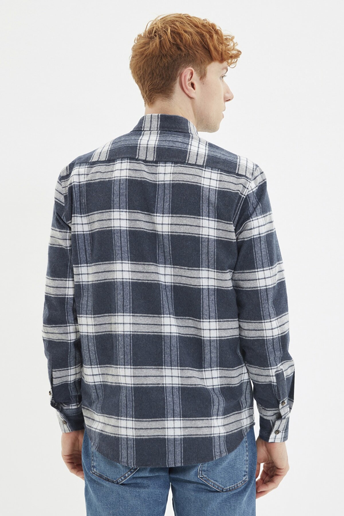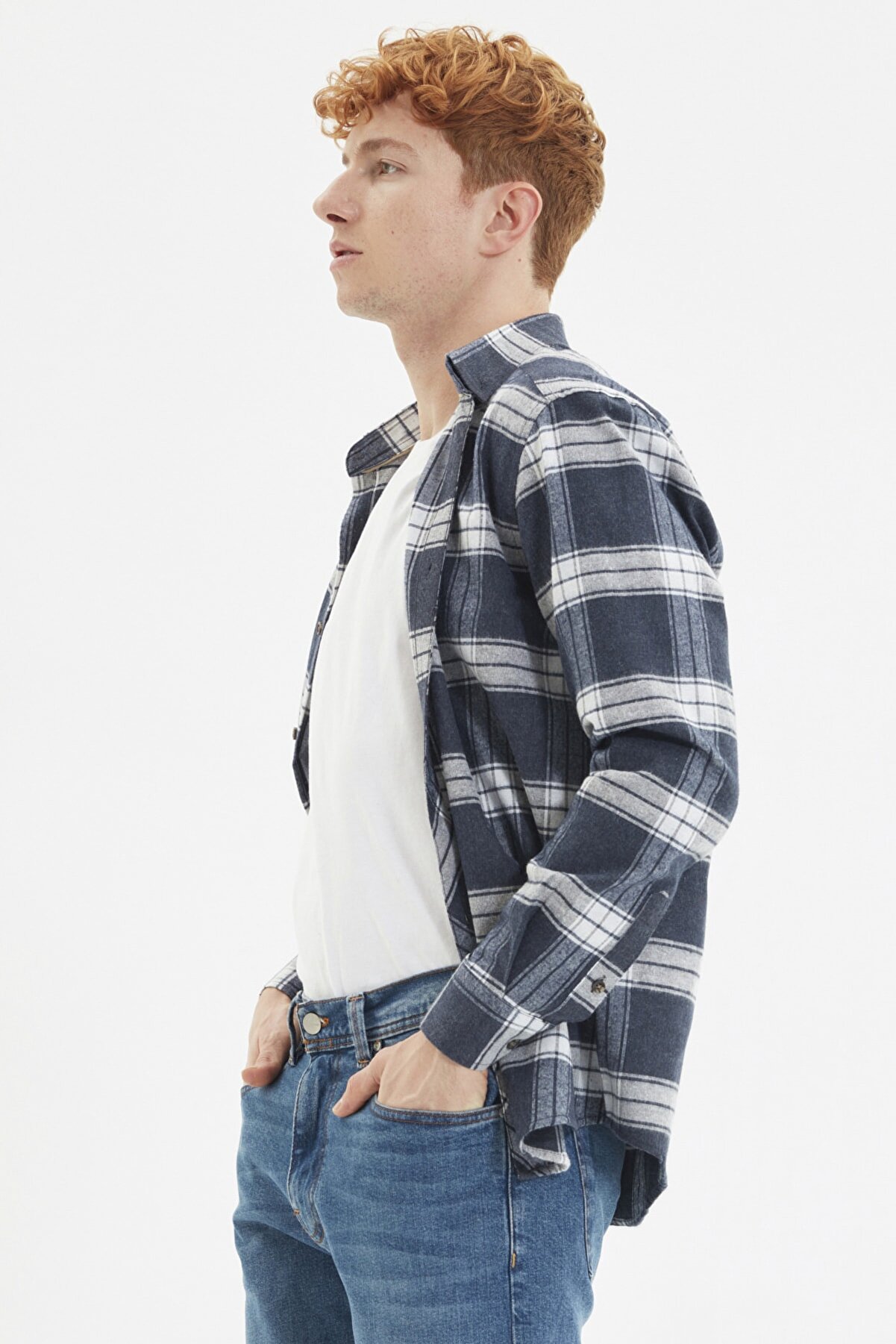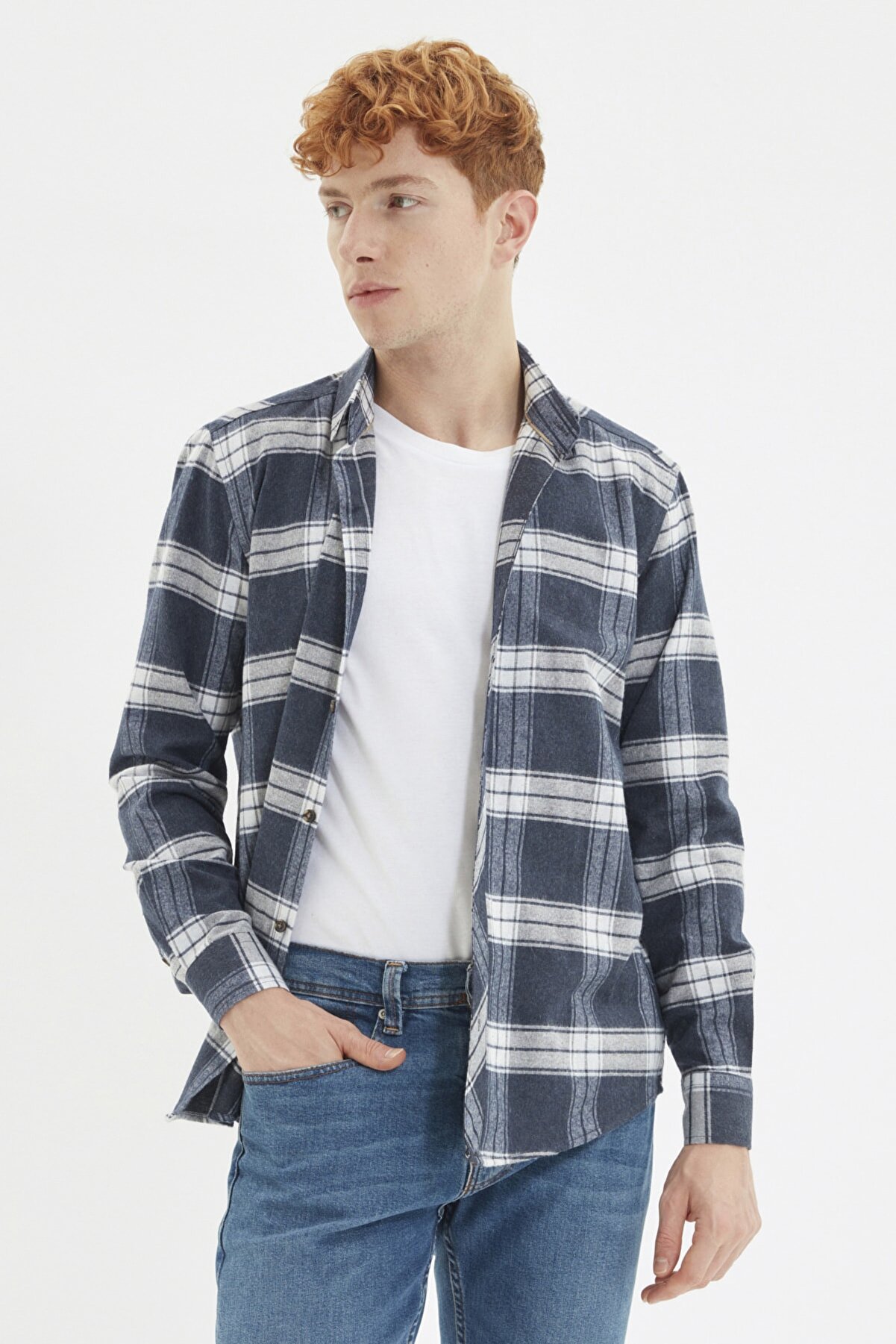 - نام : Lacivert Erkek Slim Fit Düğmeli Yaka Ekose Gömlek TMNAW21GO0611