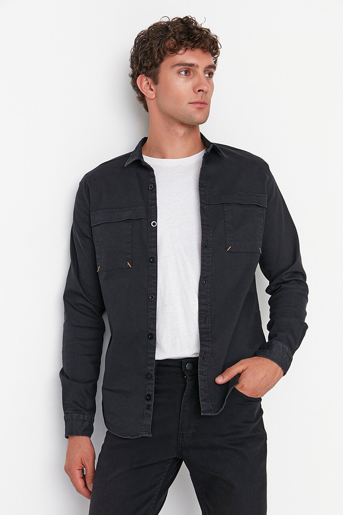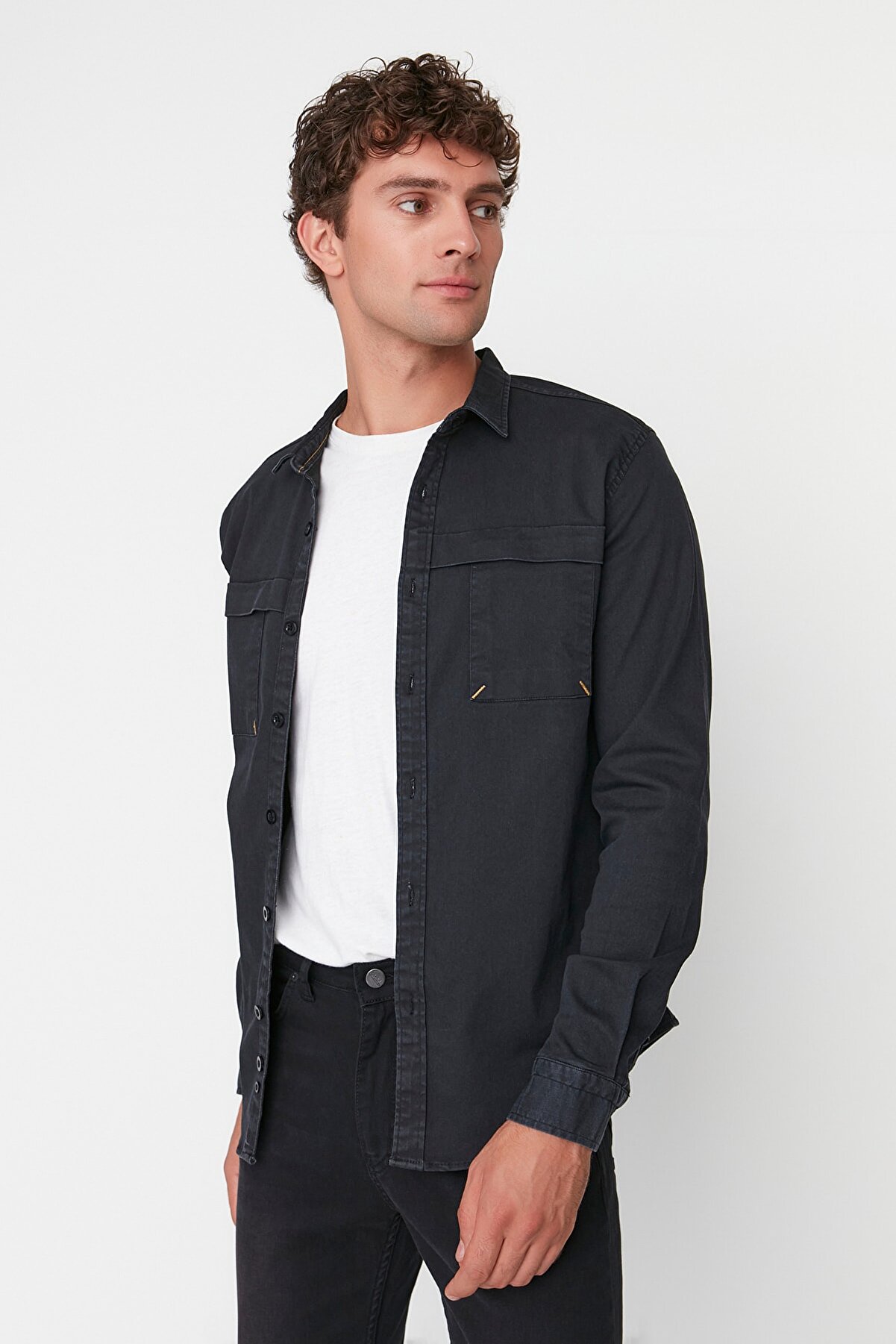 - نام : Antrasit Erkek Slim Fit Çift Cepli Gömlek Yaka Gömlek TMNAW22GO0200