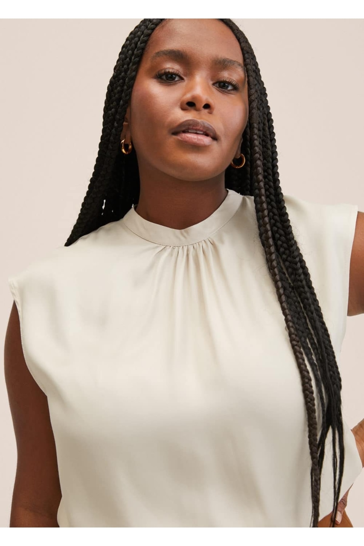 Bluz .-- natalie. Saten kumaş, Düz tasarım, Rahip yaka, Kolsuz, Arkası düğme kapamalı, Parti Koleksiyonu . 100% viskoz. Yan dikiş uzunluğu 30.6 cm, Arka uzunluk 62.7 cm. KISA SANTRFÜJLE MAKİNEDE MAKS. 30°C'DE YIKAYIN, ÇAMAŞIR SUYU KULLANMAYIN, MAKS. 150°C İLE ÜTÜLEYİN, PERKLOROETİLEN KURU TEMİZLEME UYGULAYIN, KURUTMA MAKİNESİNDE KURUTULAMAZ
