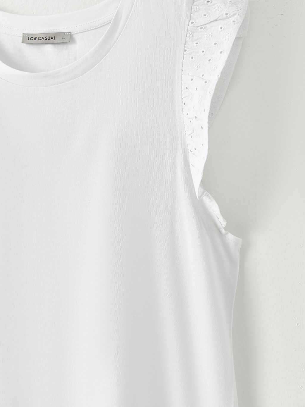 تیشرت آستین حلقه ای زنانه سفید السی وایکیکی S2IH52Z8