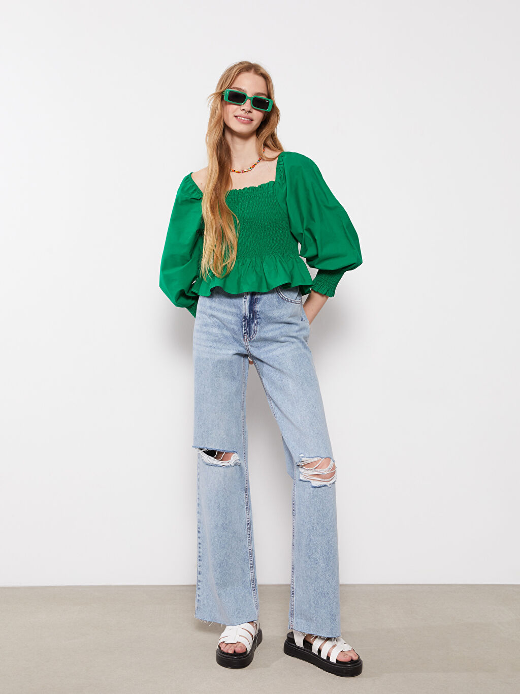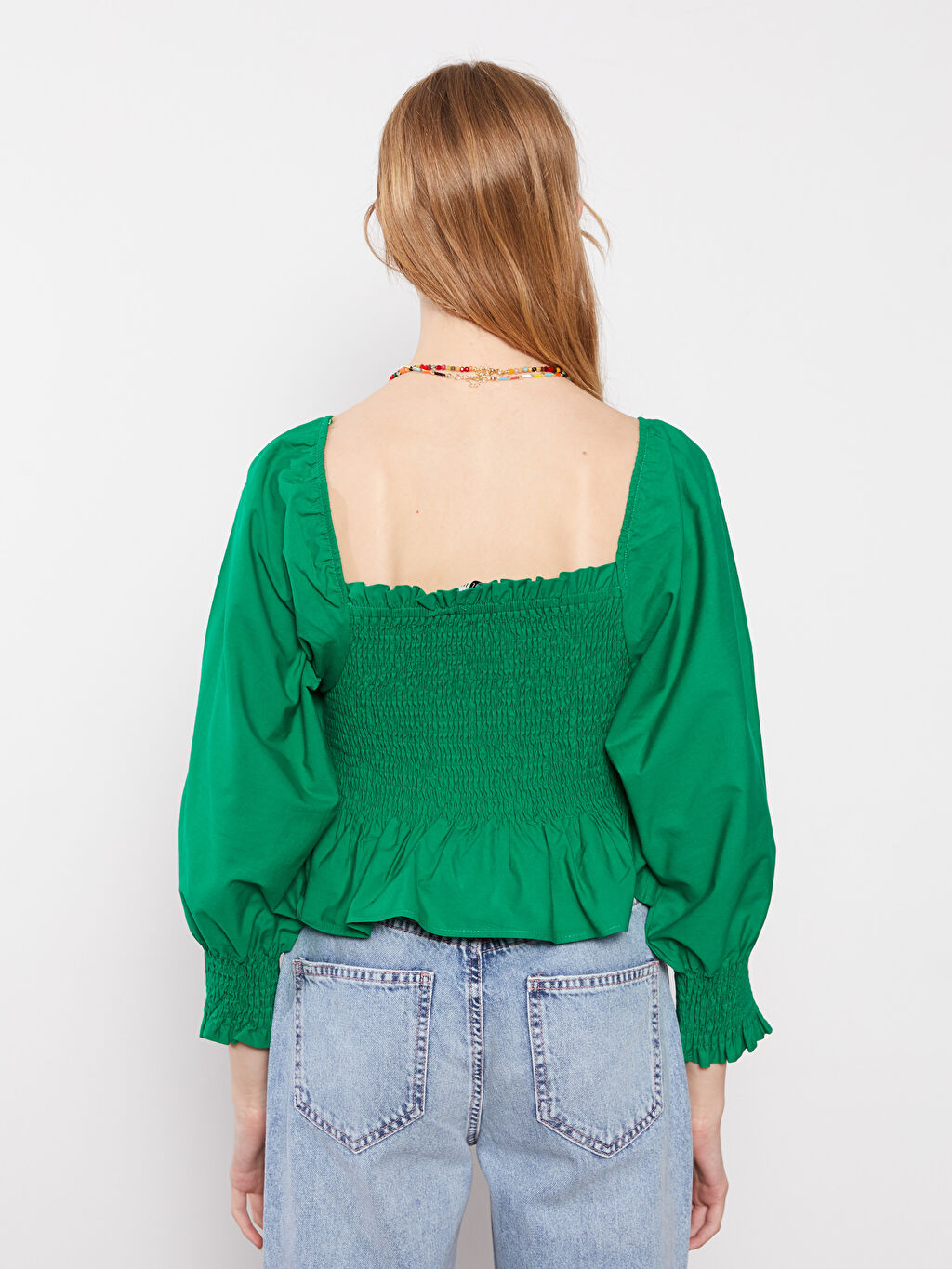 - نام : Kare Yaka Düz Uzun Poplin Kollu Kadın Bluz