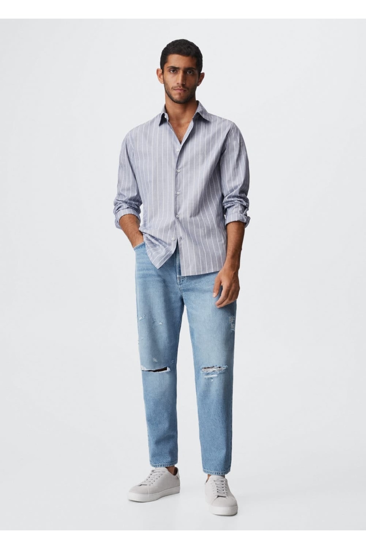 Jean .-- nestor. Tapered kesim: Geniş kesimli üst kısmı, dizden bileğe doğru daralır, Kısaltılmış tasarım, Loose tasarım, Geri kazanılmış pamuklu kumaş, Kemer köprülü, Yanları iki cepli, Arkası iki yama cepli, Fermuarlı ve düğmeli, Mankenin boyu 183 cm olup, 42 beden giymektedir., Committed etiketli giysiler, çevresel etkilerinin azaltılarak, sürdürülebilir lifler veya süreçler kullanılarak üretilen ürünlerdir. Mango'nun hedefi, doğaya daha fazla adanmış olan uygulamaları desteklemek ve koleksiyondaki sürdürülebilir giysi sayısını arttırmaktır. 80% pamuk,20% recycled cotton. MAKİNEDE MAKS. 30°C'DE YIKAYIN, ÇAMAŞIR SUYU KULLANMAYIN, MAKS. 110°C İLE ÜTÜLEYİN, KURU TEMİZLEME YAPILMAZ, KURUTMA MAKİNESİNDE KURUTULAMAZ