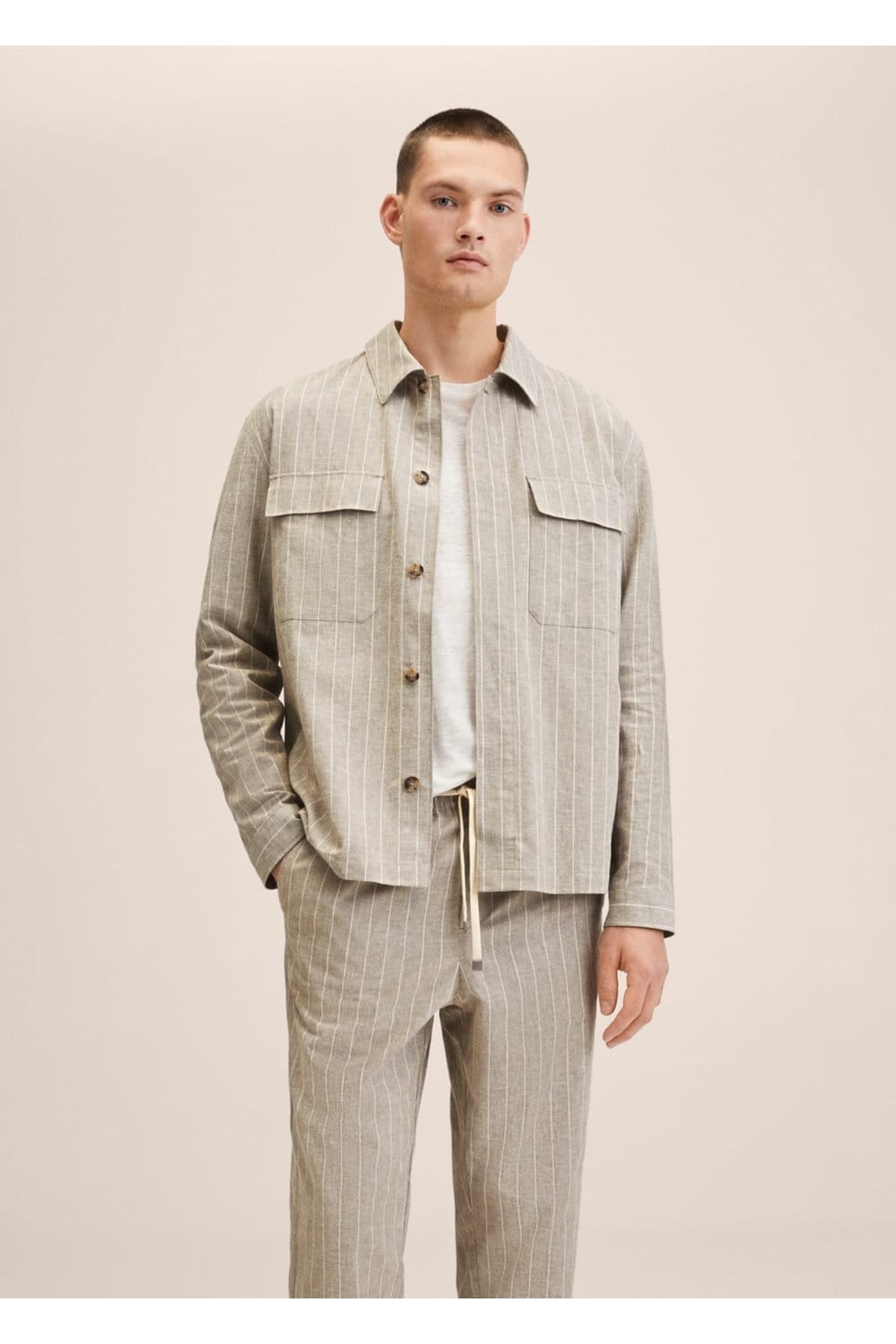 - نام : Çizgili Pamuklu Keten Gömlek Ceket