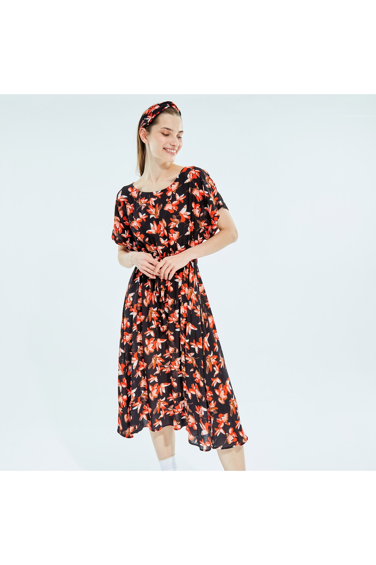 - نام : Kadın Siyah Standart Fıt Kısa Kollu Elbise