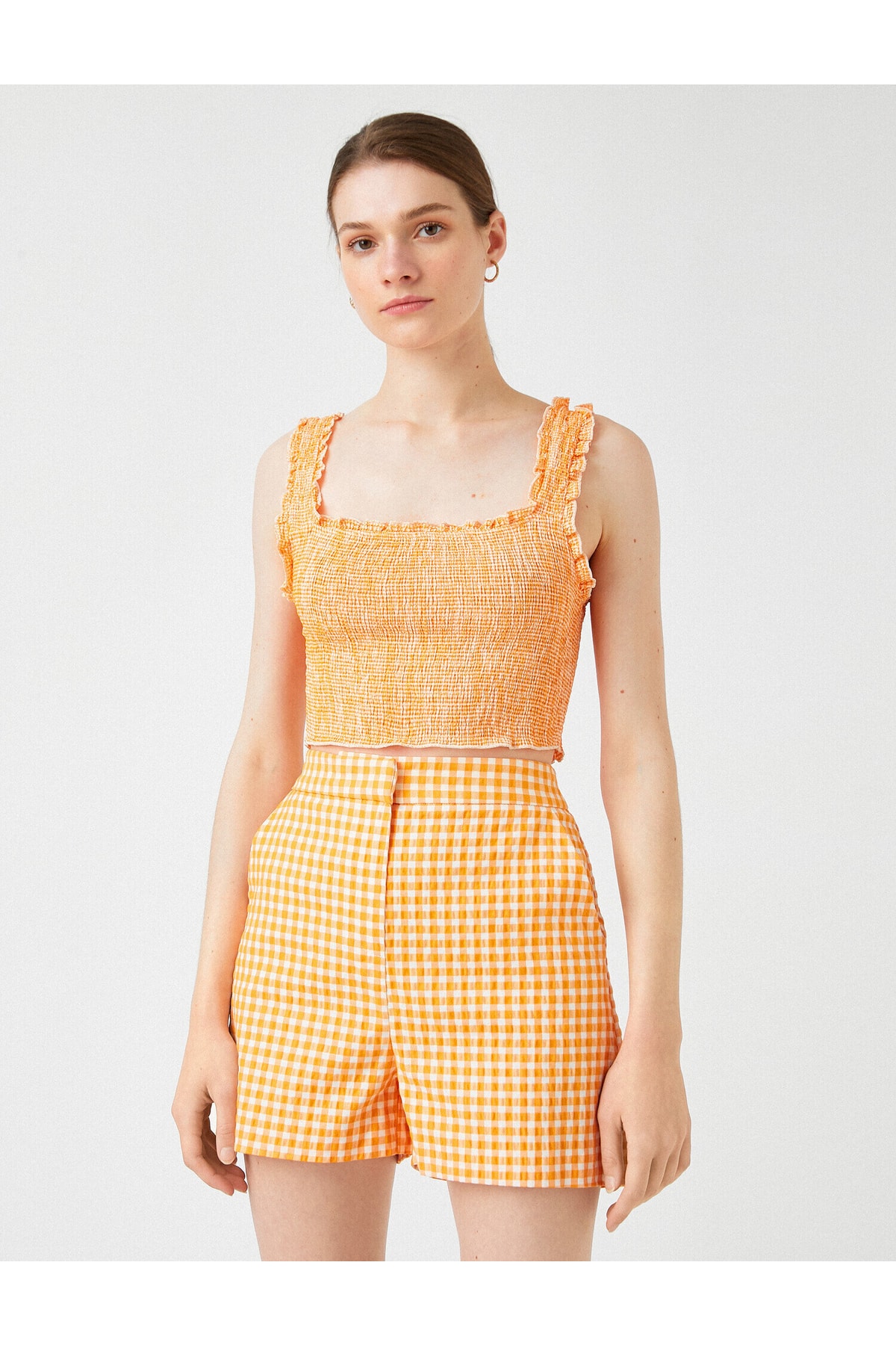 Gipe detaylı, kare yaka, kalın askılı crop atlet. Model Bilgileri: Boy:177 cm, Göğüs:80, Bel:61, Kalça:89, Modelin Bedeni:S