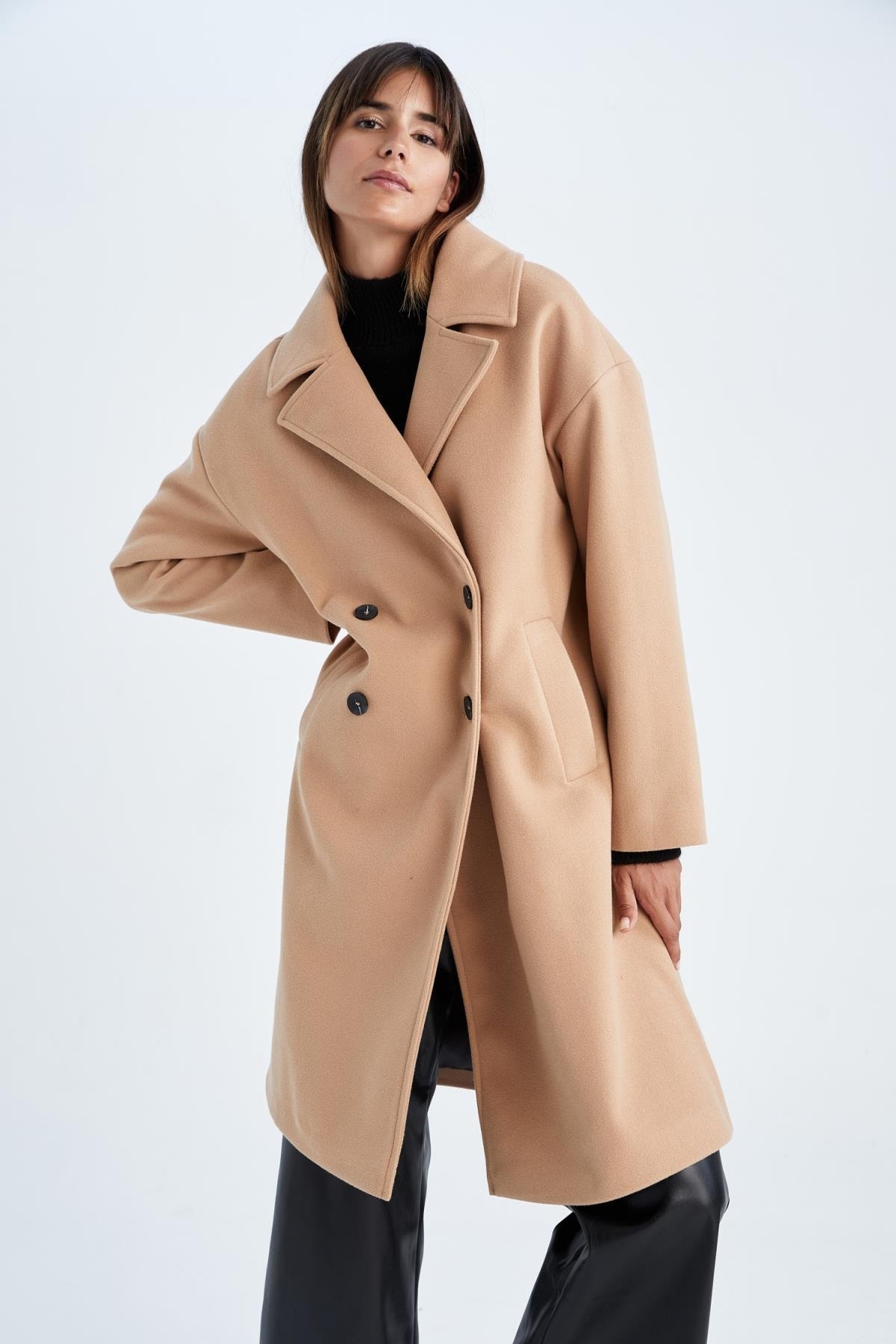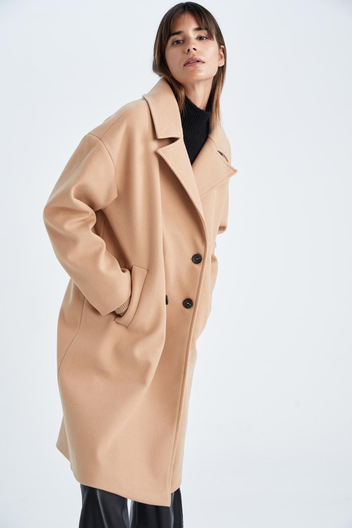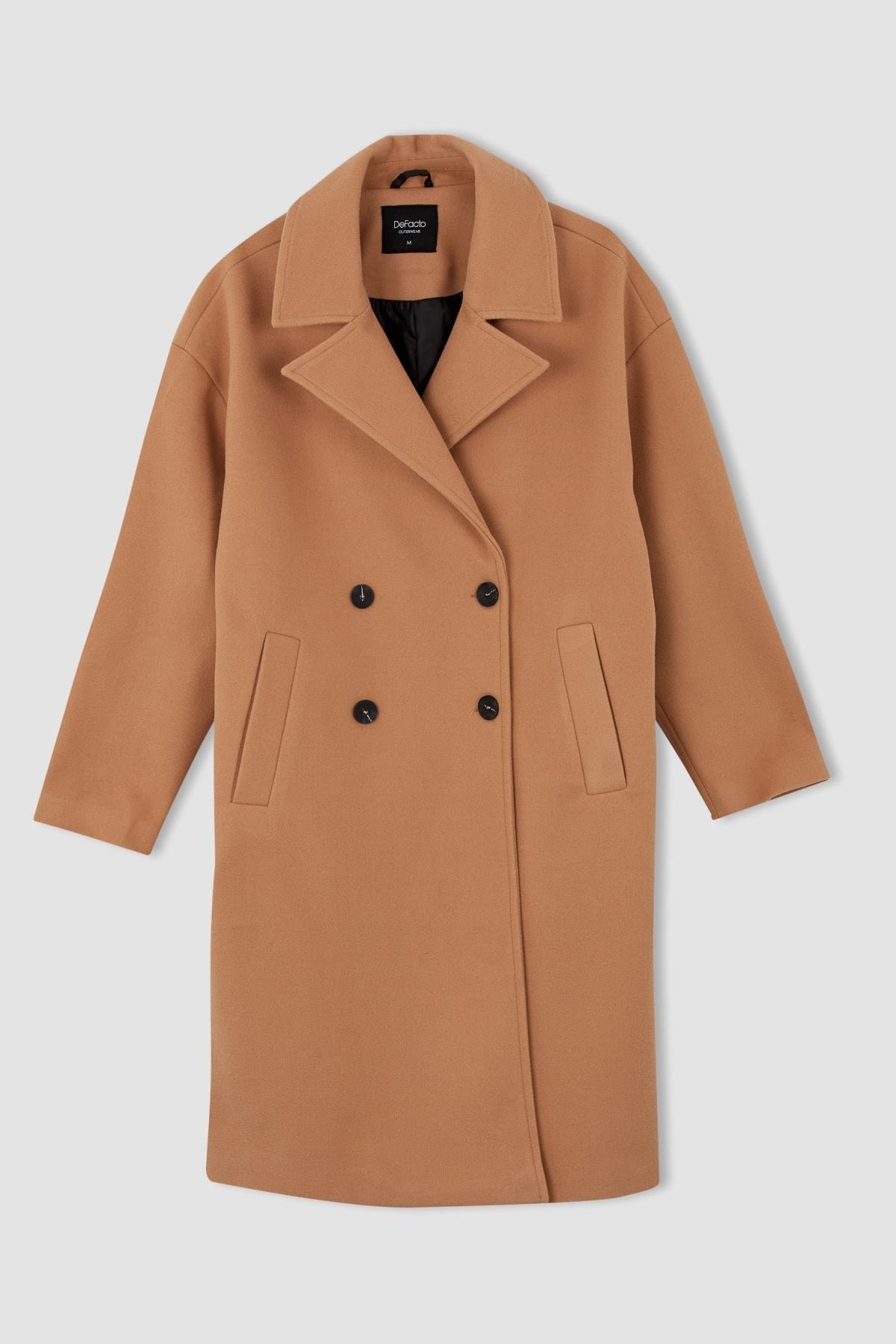 Soğuk kış günlerinizde sizi ısıtacak, basic sade ve düğmeli uzun sıcak tutan özelliği ile son zamanların en trend tesettür dış giyim modeli rahat kaşe sentetik astar kumaşı ile tüm kombinlerinizde kullanabileceğiniz pamuk karışımlı kumaşı defacto kadın oversize fit kaşe