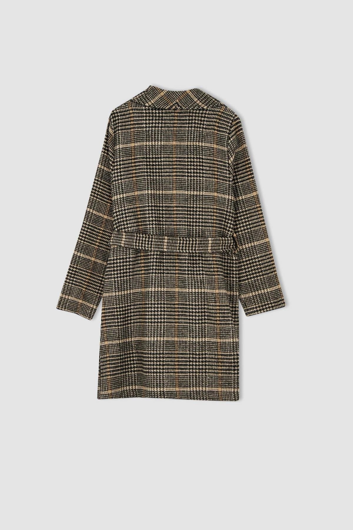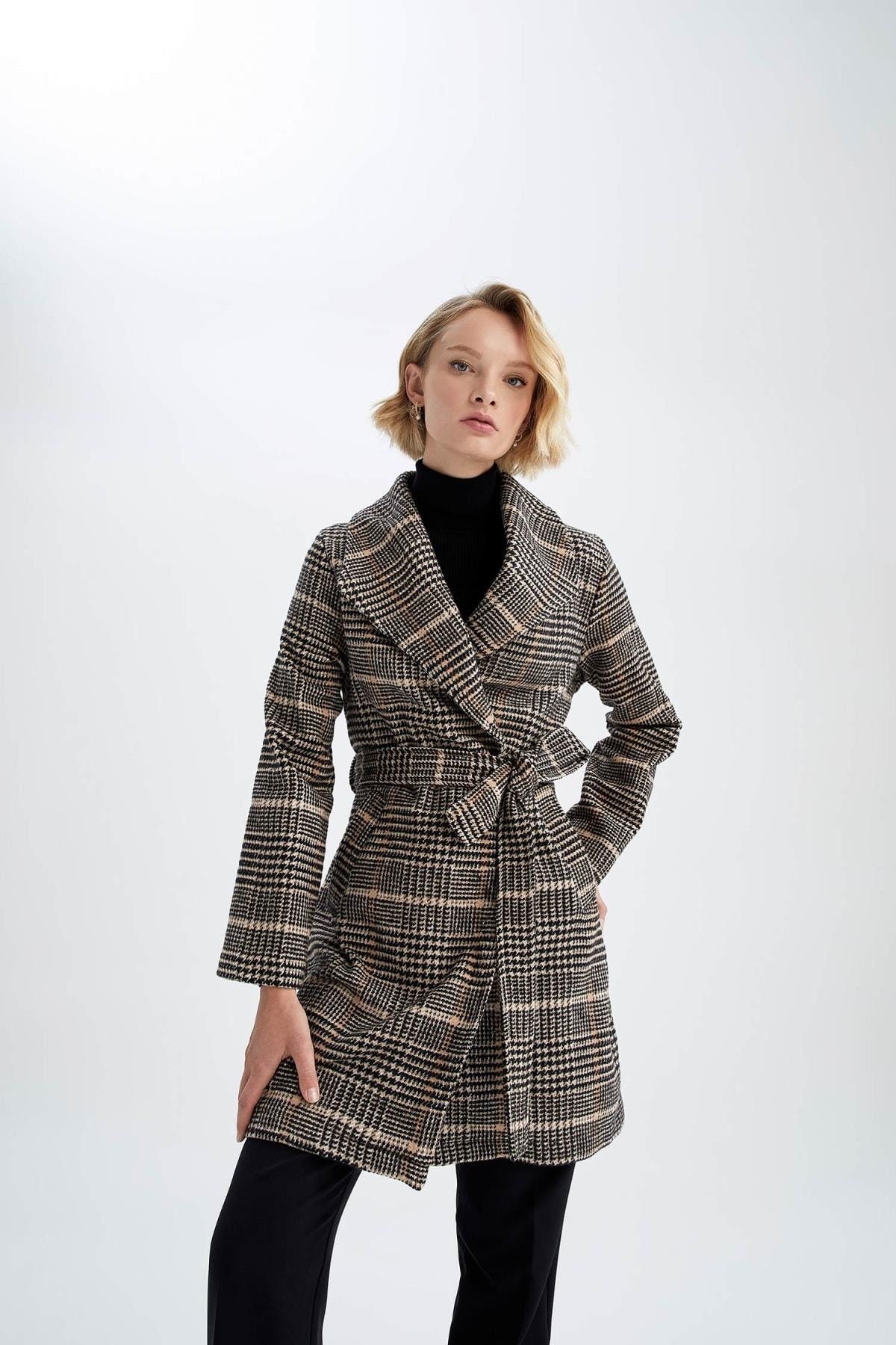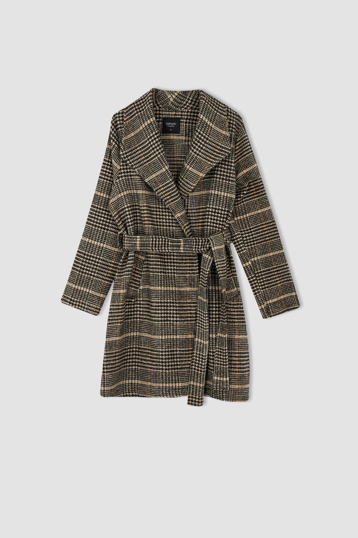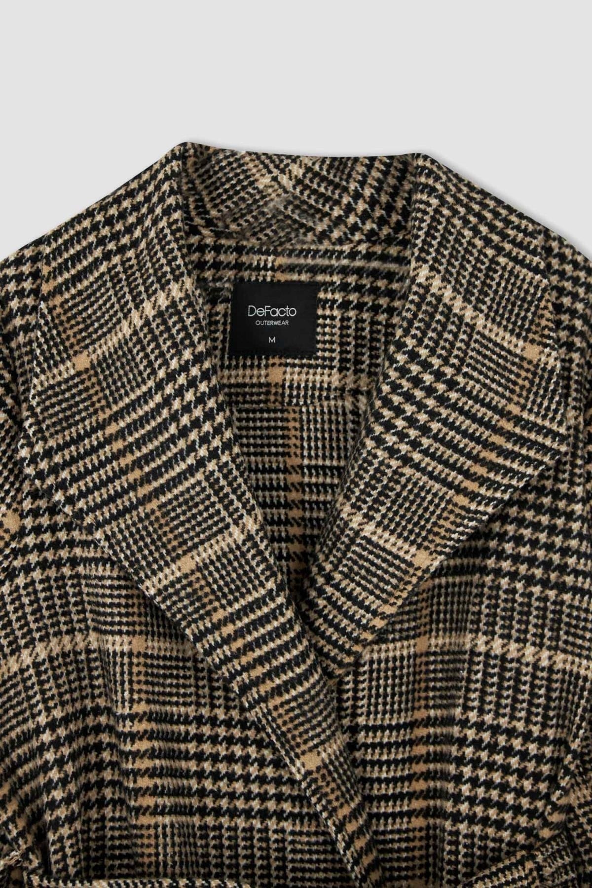 Soğuk kış günlerinizde sizi ısıtacak, ekose kare desenli kuşaklı, ve düğmeli uzun modeliyle son zamanların en trend tesettür dış giyim modeli rahat kaşe kumaşı ile tüm kombinlerinizde kullanabileceğiniz DeFacto Kadın Regular Fit Dokuma Görünümlü Kaşe