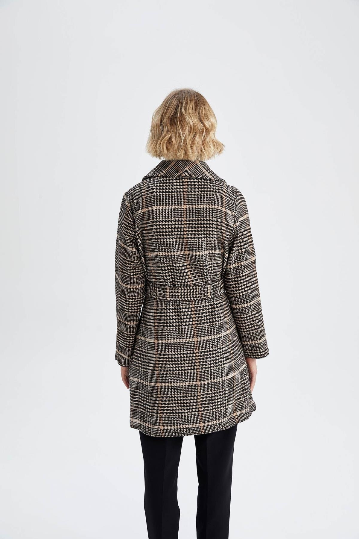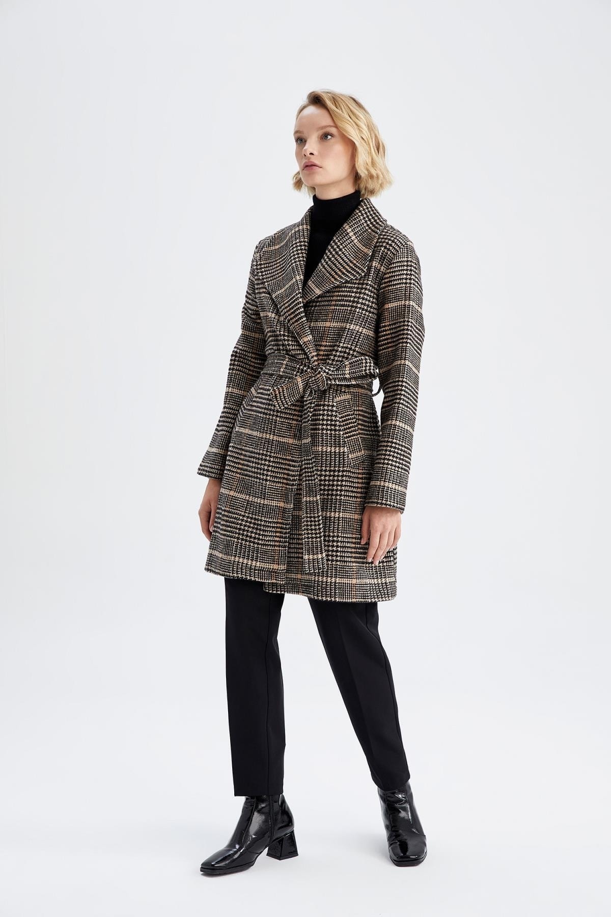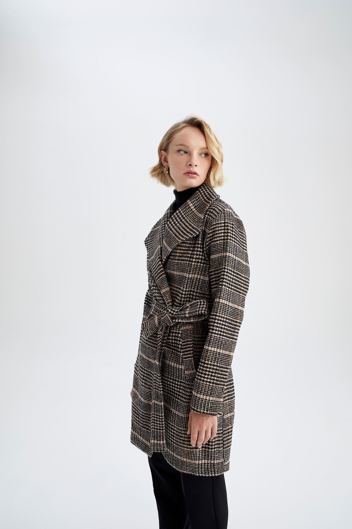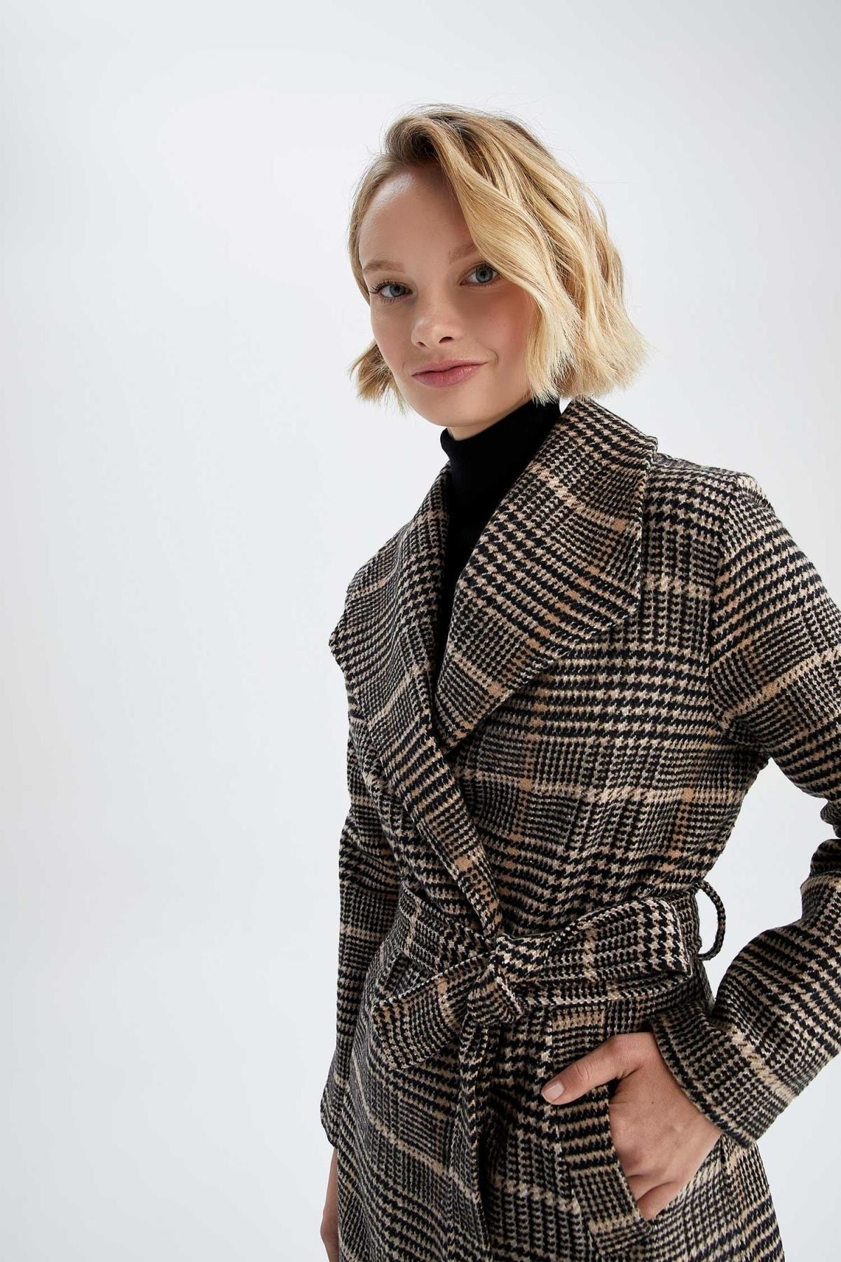 Soğuk kış günlerinizde sizi ısıtacak, ekose kare desenli kuşaklı, ve düğmeli uzun modeliyle son zamanların en trend tesettür dış giyim modeli rahat kaşe kumaşı ile tüm kombinlerinizde kullanabileceğiniz DeFacto Kadın Regular Fit Dokuma Görünümlü Kaşe
