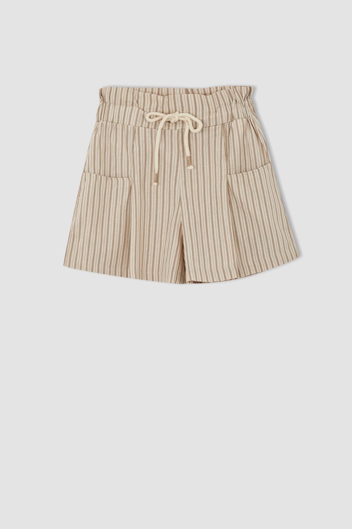 Keten karışımlı pamuklu kumaşı, trend basic şort görünümüyle klasik kombinlerinizde blazer ceket, gömlekler, spor kombinlerinizde spor ayakkabı, baskılı tişört, jean ceketlerle kombinleyebileceğiniz zamansız parça defacto kadın cepli keten karışımlı şort.