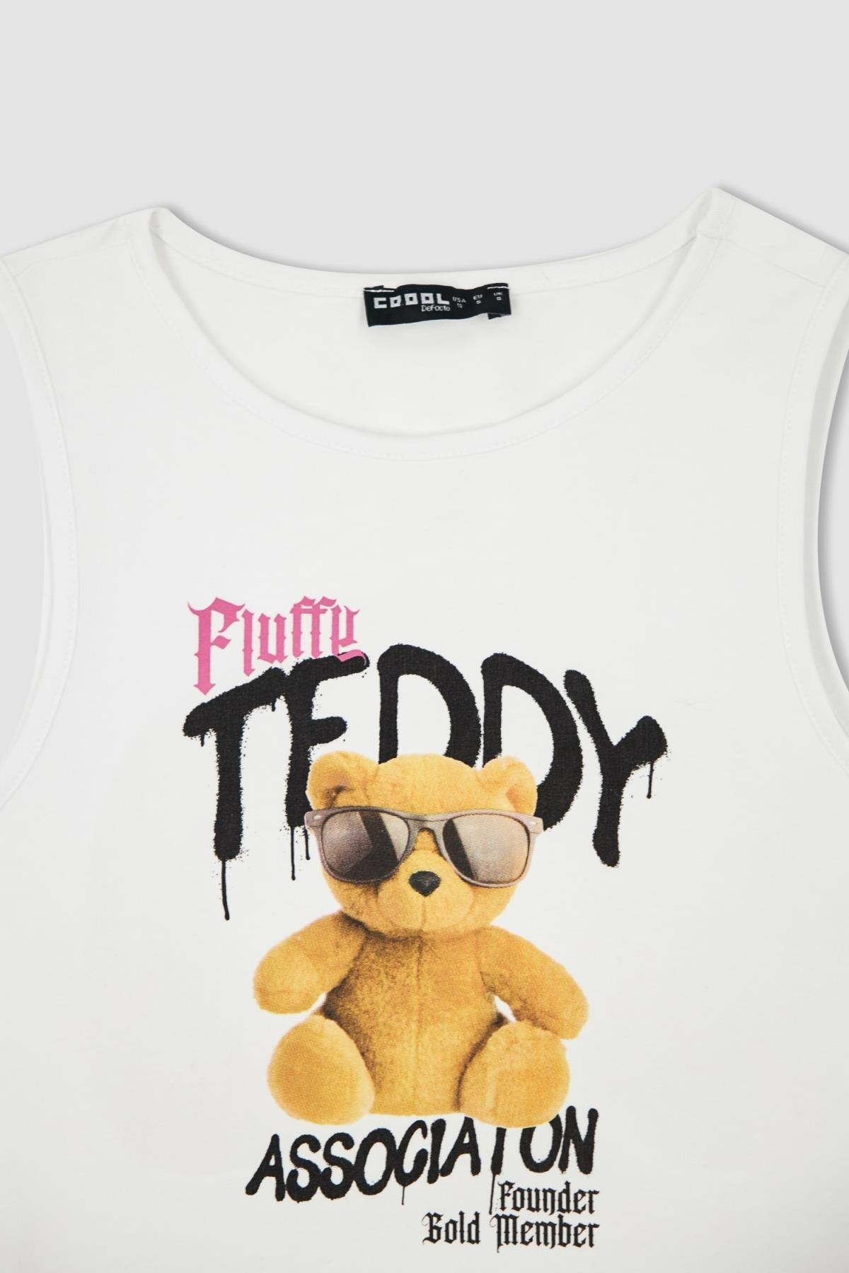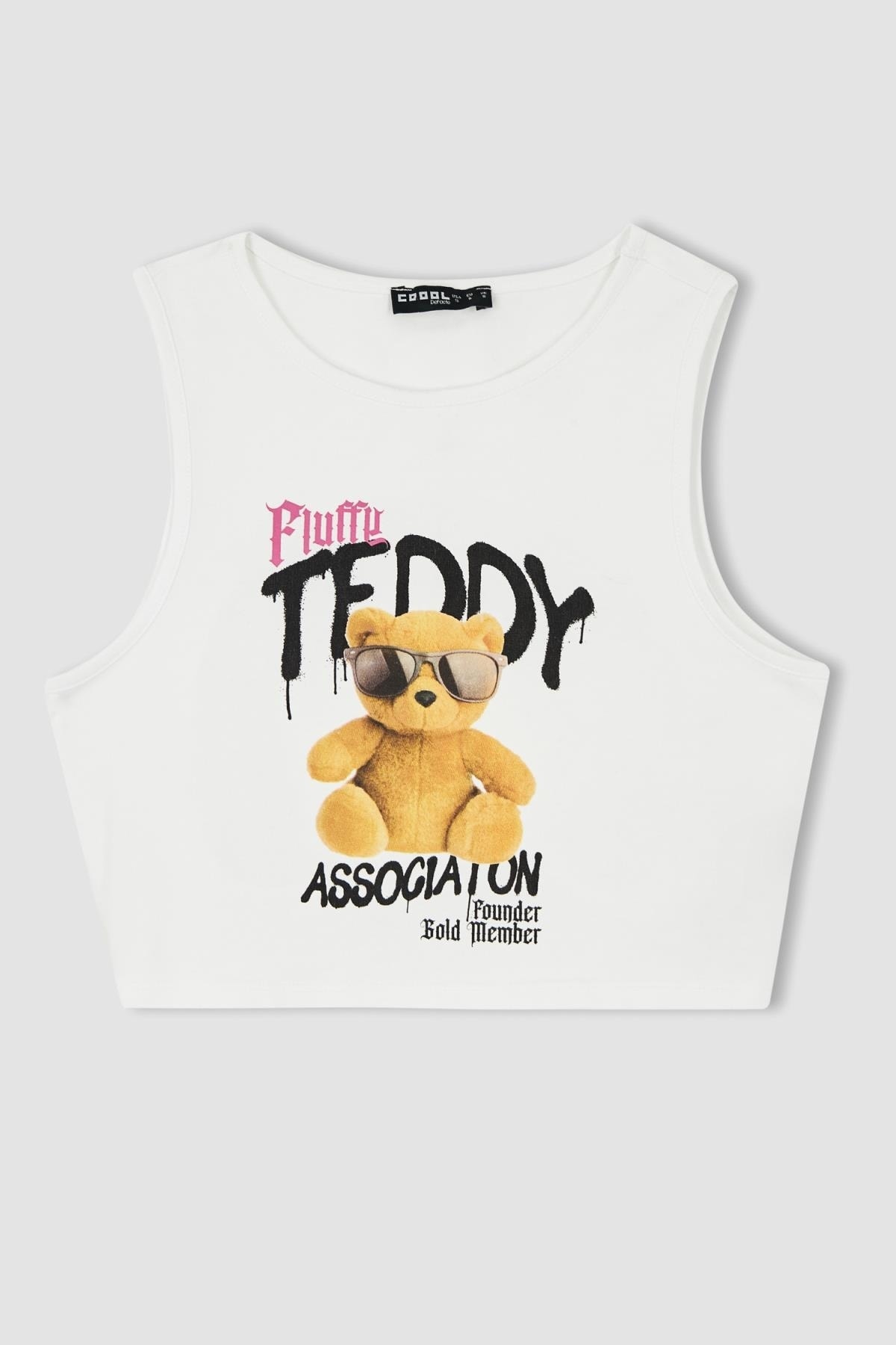 - نام : Coool Bisiklet Yaka Teddy Baskılı Sırt Detaylı Crop Atlet