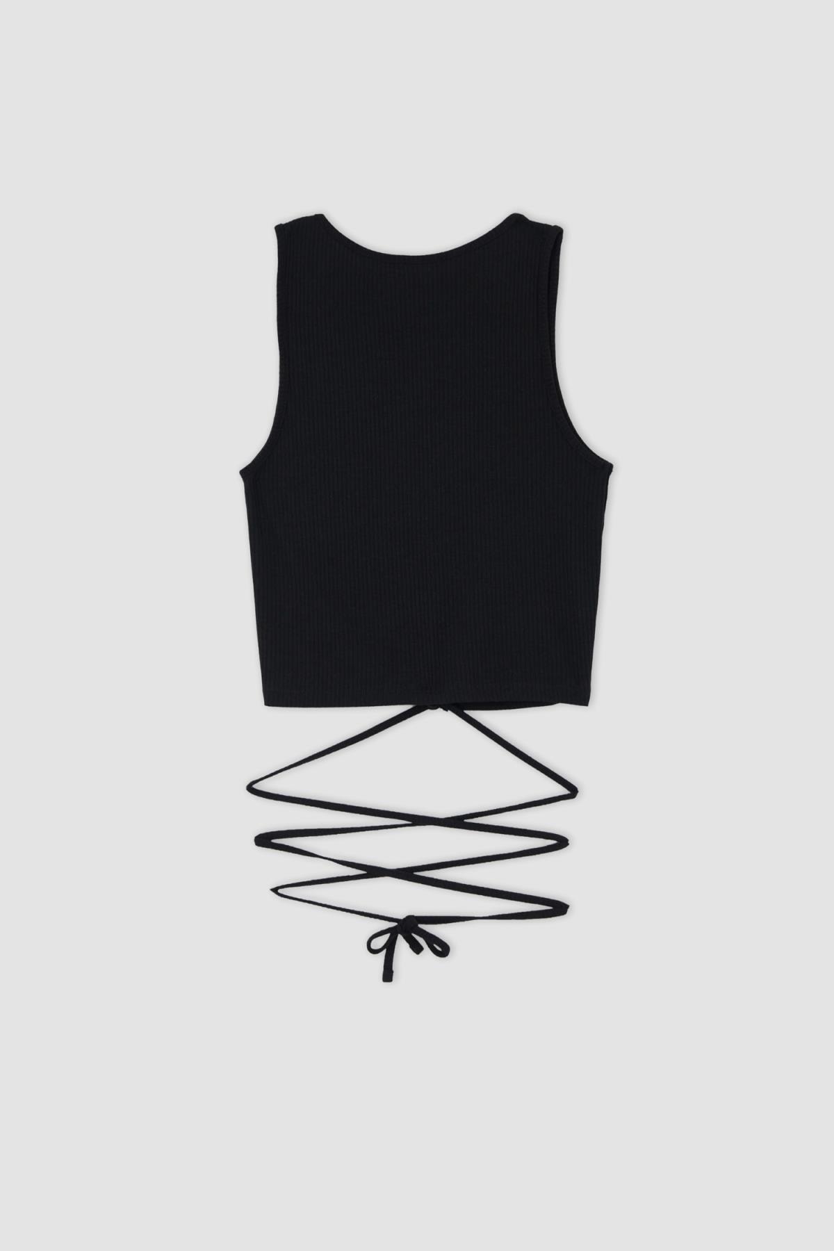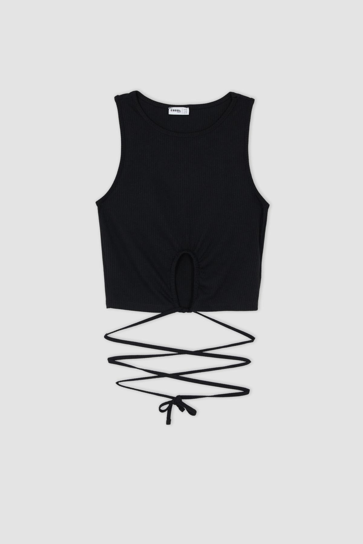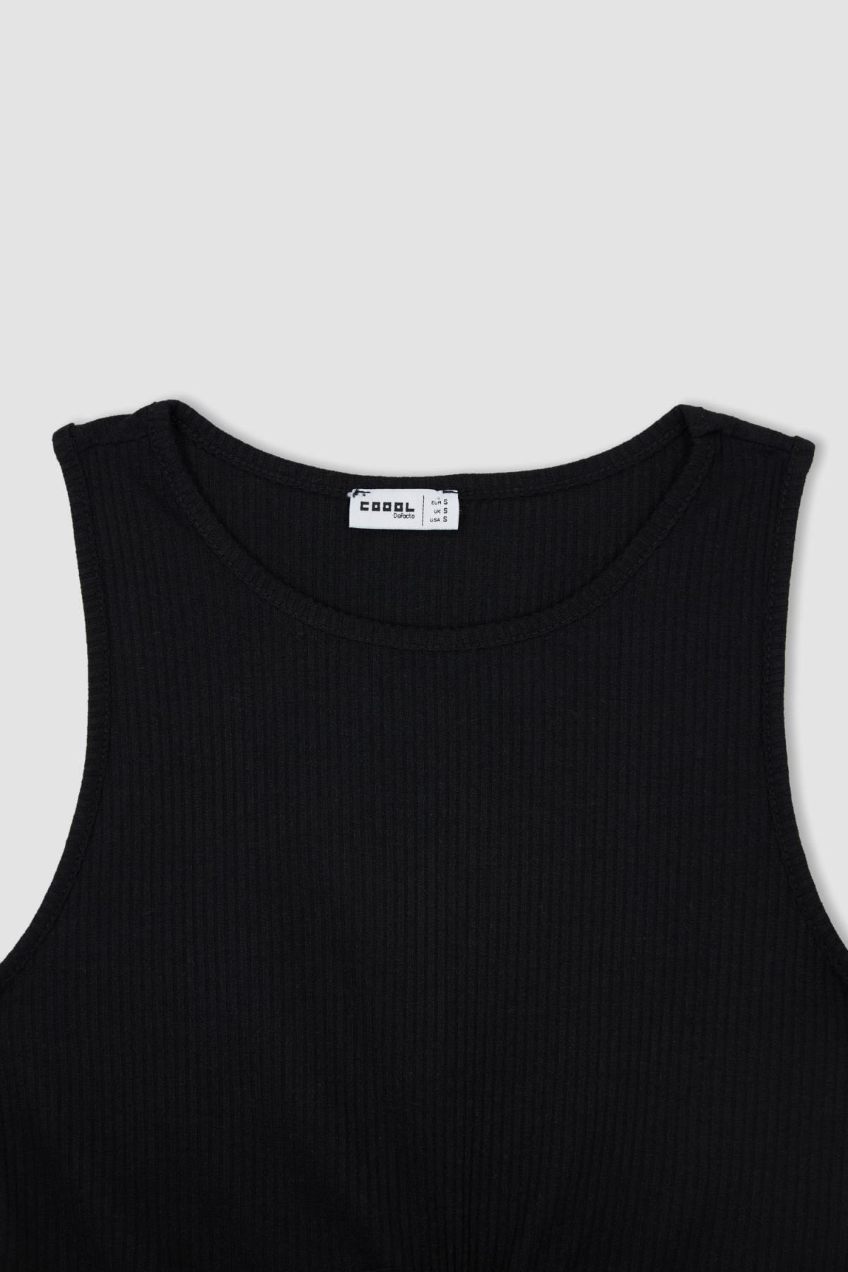 Şık giyinmeyi sevenlerin tarzını yansıtan fit görünümlü halter yaka atlet, dolabınızda mutlaka olması gereken anahtar parça olarak, giydiğinizde rahat hissedebileceğiniz pamuklu elastik fitilli dokulu yapısıyla, suni deri jogger pantolon, geniş paça pantolon, yüksek bel jean, jean şort, suni deri şort, crop hırka, crop blazer, oversize blazer ve hırkalarla uyumlu bir şekilde kombinleyebileceğiniz DeFacto Kadın Coool Fitted Bisiklet Yaka Bağcıklı Atlet.