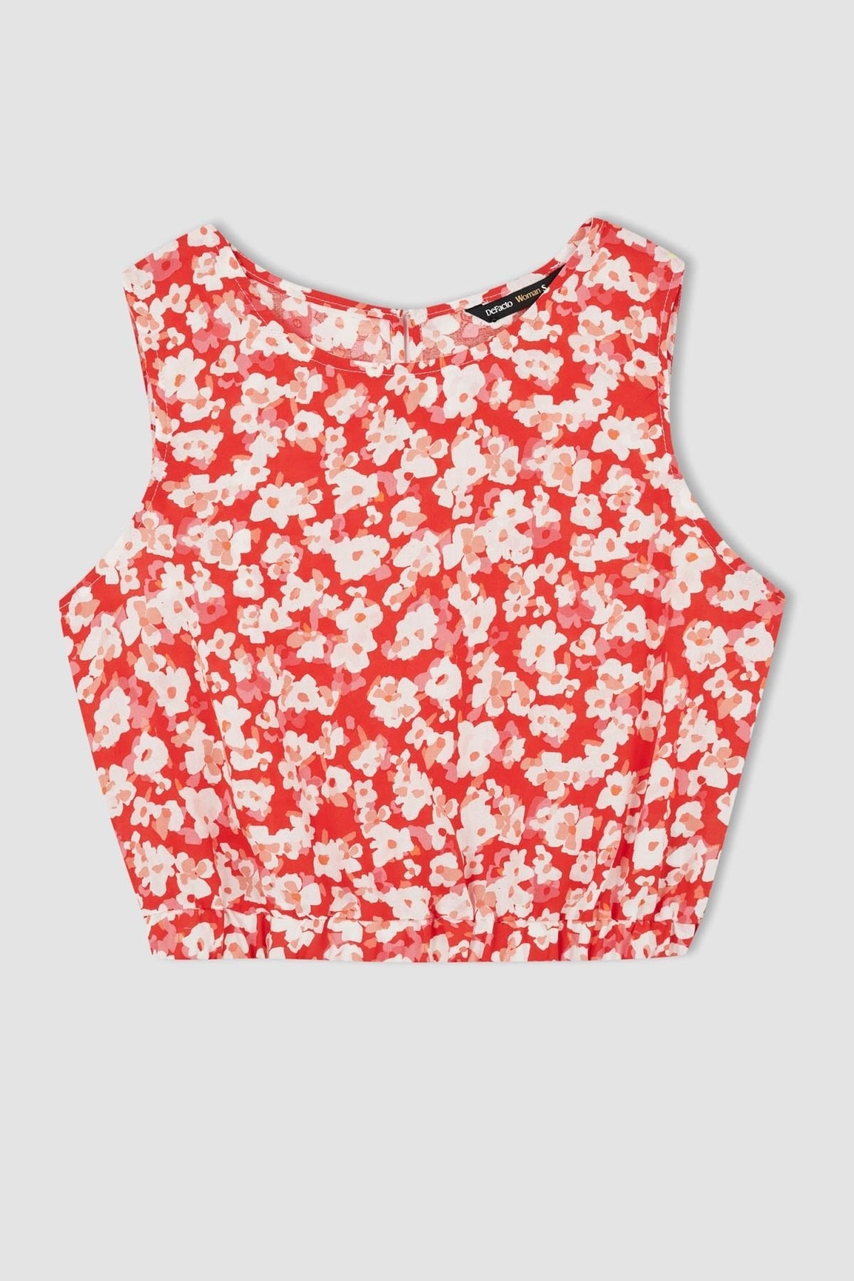 - نام : Crop Yuvarlak Yaka Desenli Kolsuz Bluz