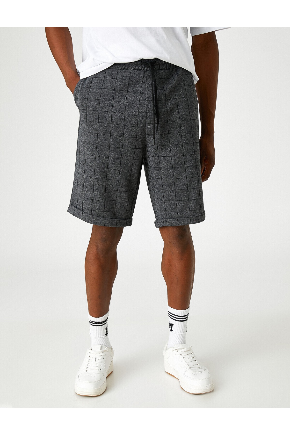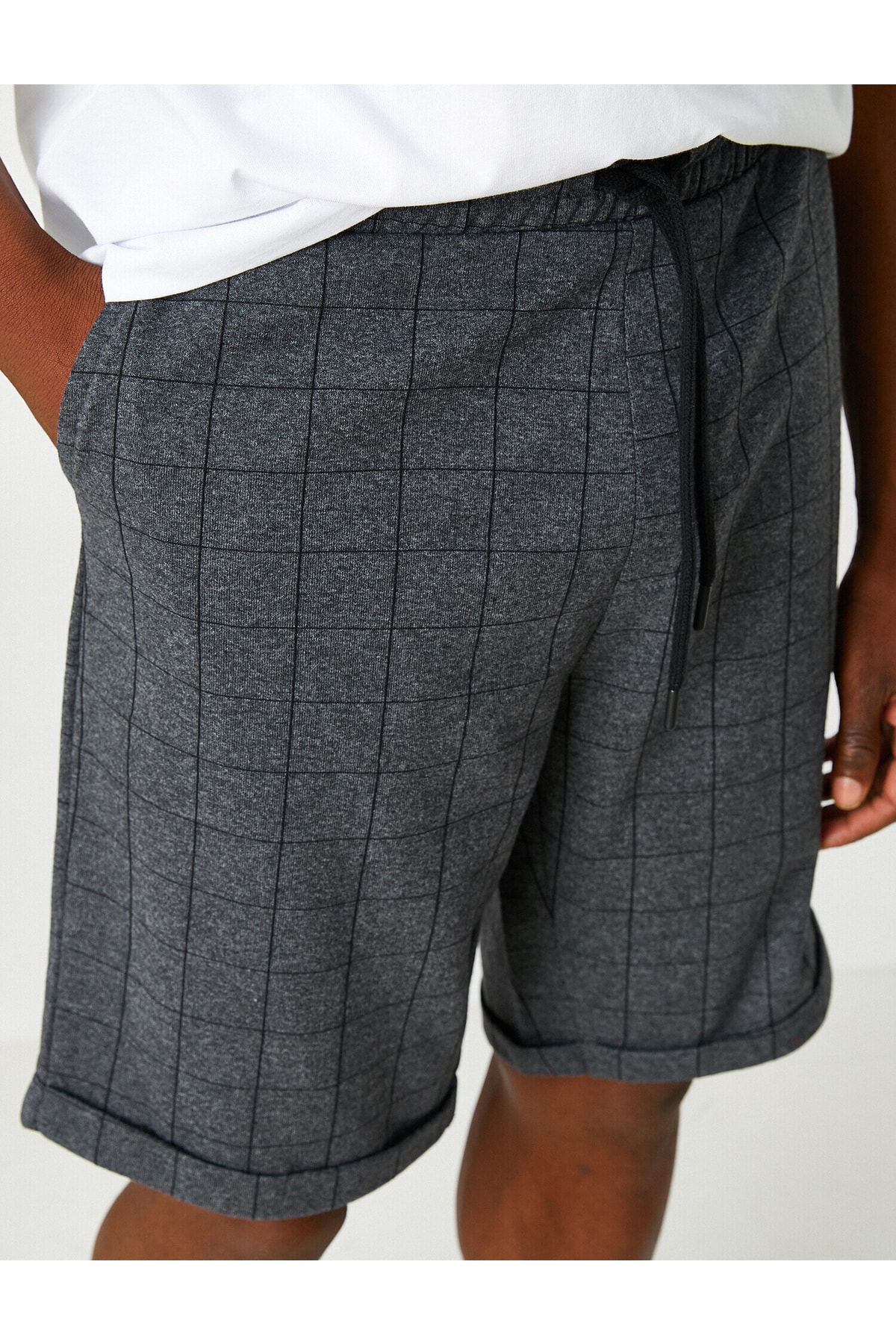 Bağcıklı kareli şort Model bilgileri:Boy:185 cm, göğüs:94, bel:71, kalça:91, modelin bedeni:L