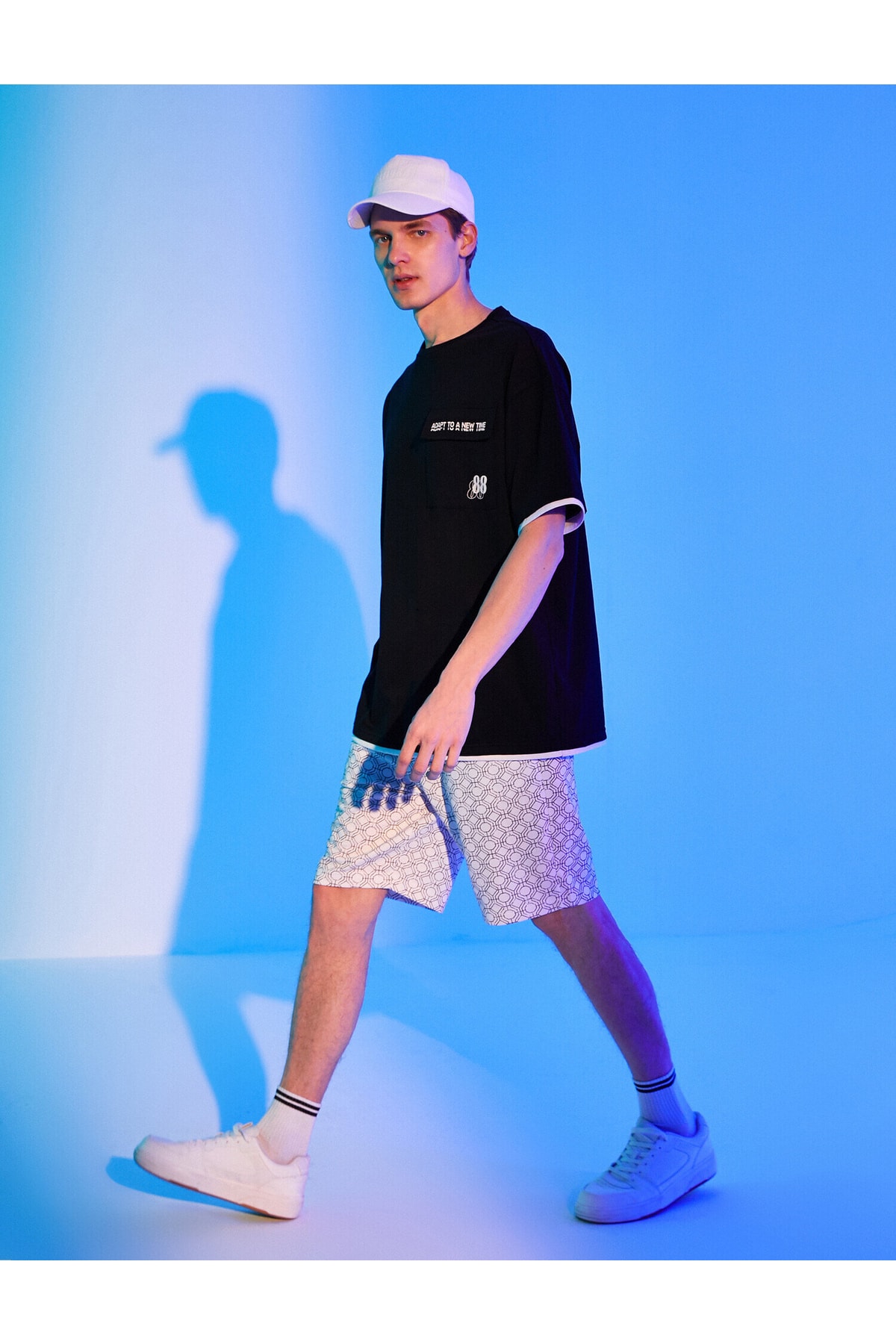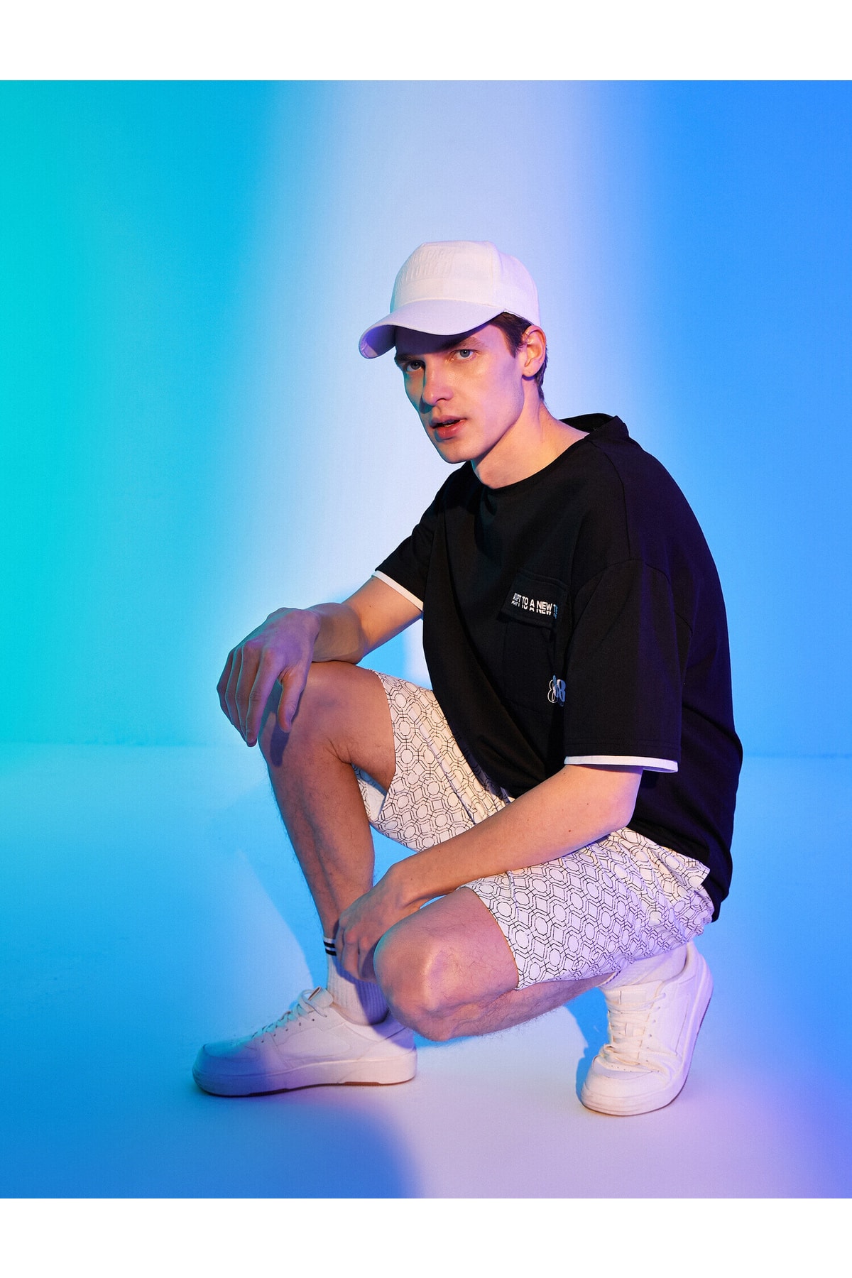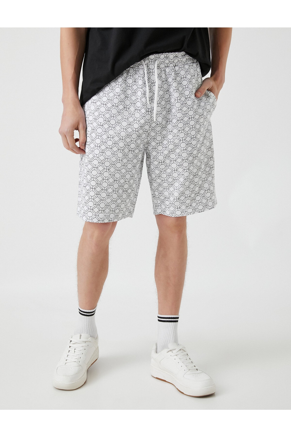 Geometrik Desenli Şort Model Bilgileri: Boy:186 cm, Göğüs:99, Bel:76, Kalça:94, Modelin Bedeni:M