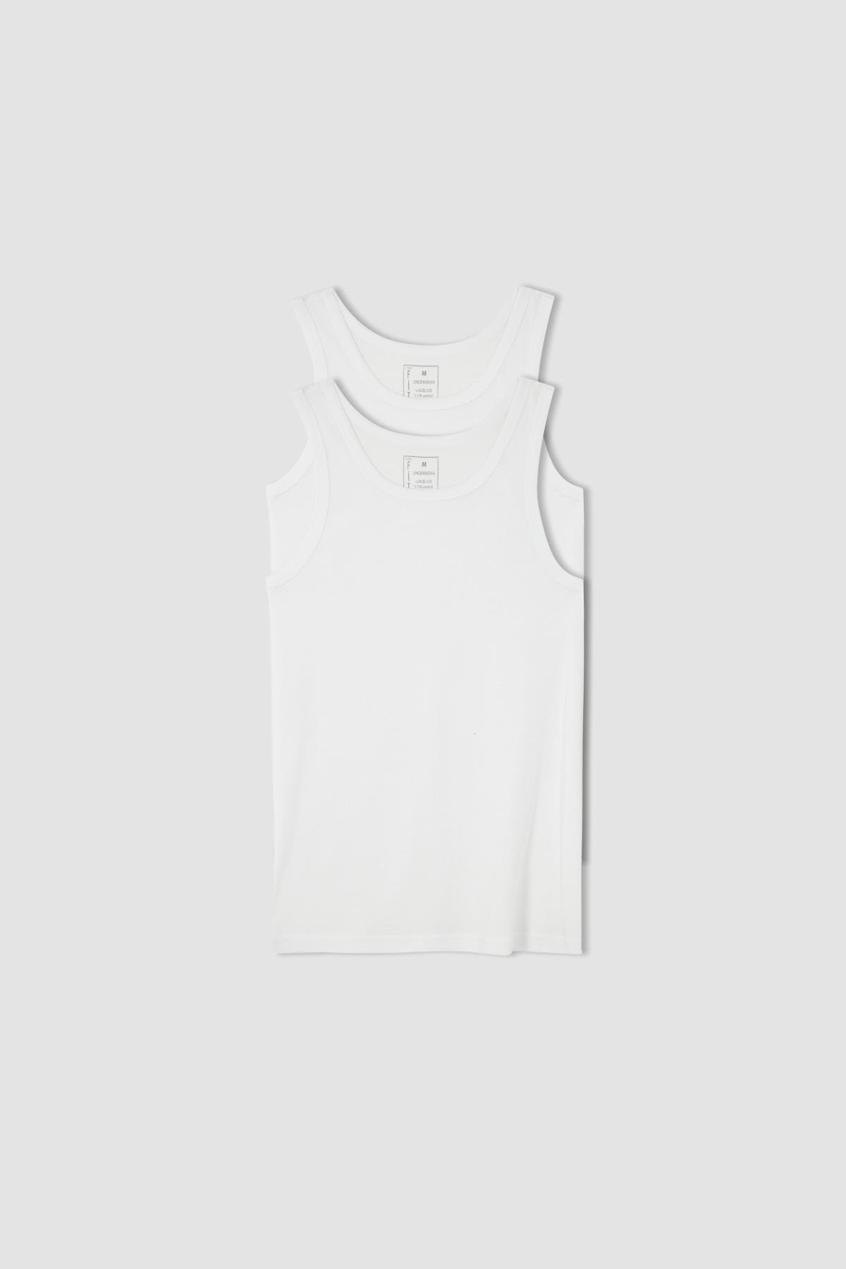 Konforlu kullanım sunan pamuk modal karışımlı kumaştan üretilmiş, basic, bisiklet yaka, kolsuz, rahat kalıbı ve modeli ile Defacto Fit Slim Fit Ribana 2'li Atlet.