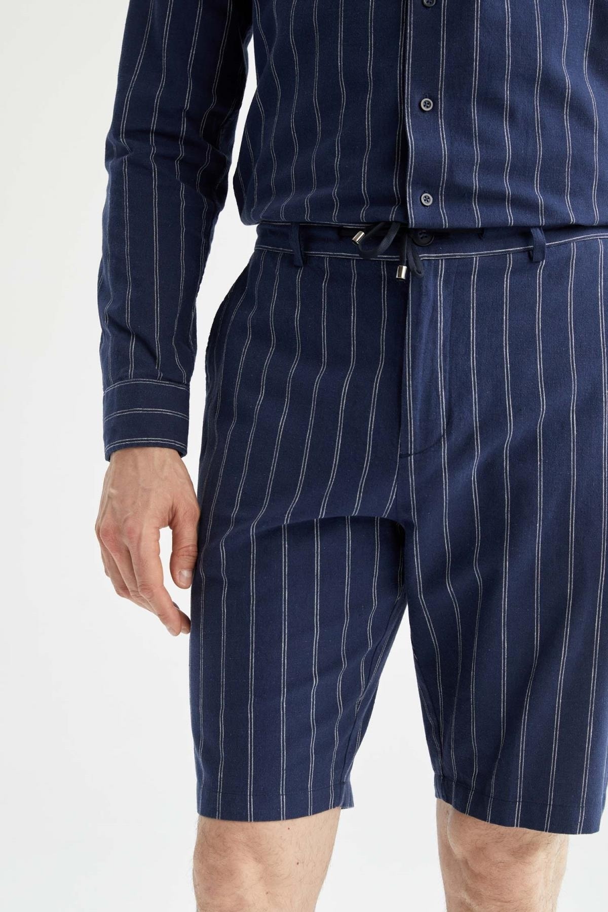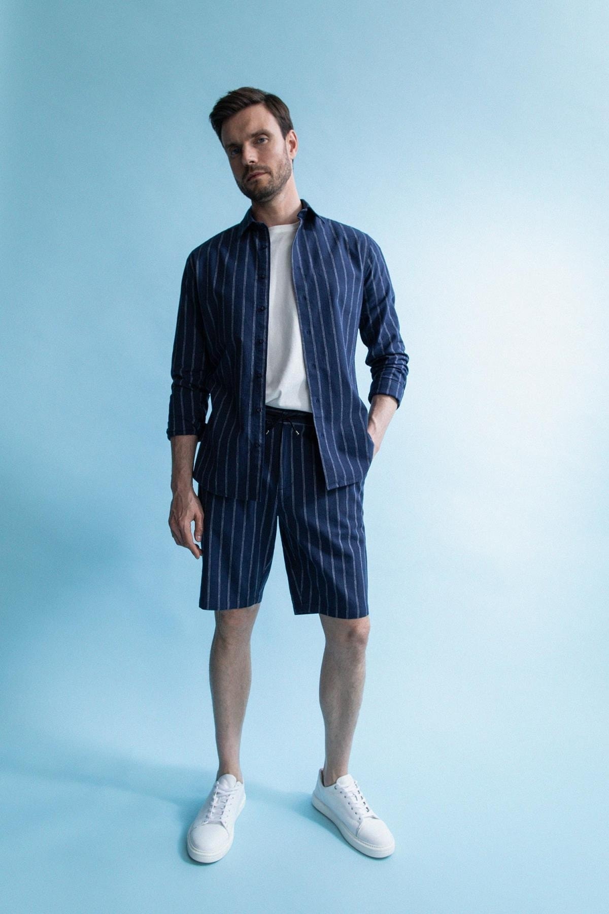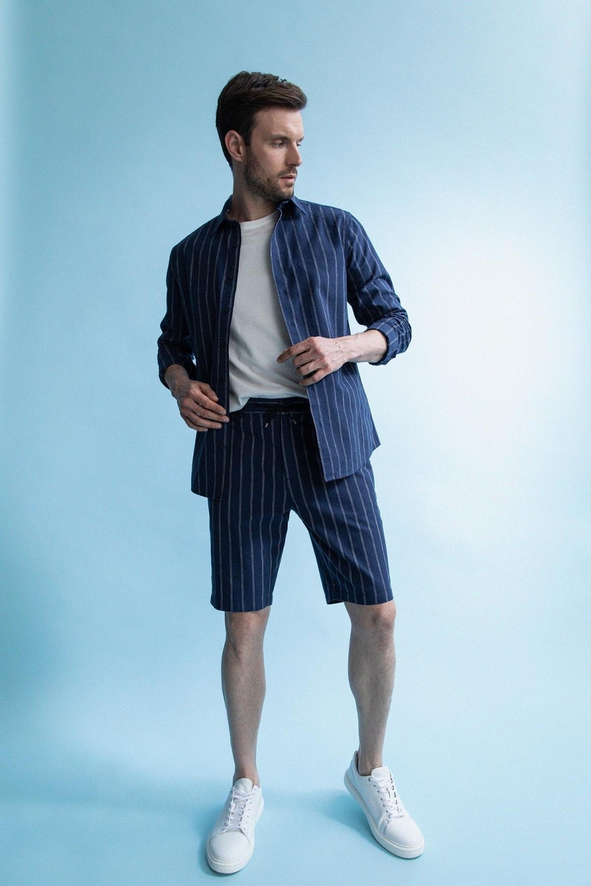 - نام : Regular Fit Keten Karışımlı Çizgili Bermuda Şort