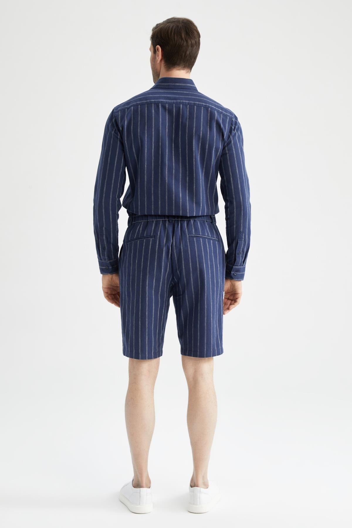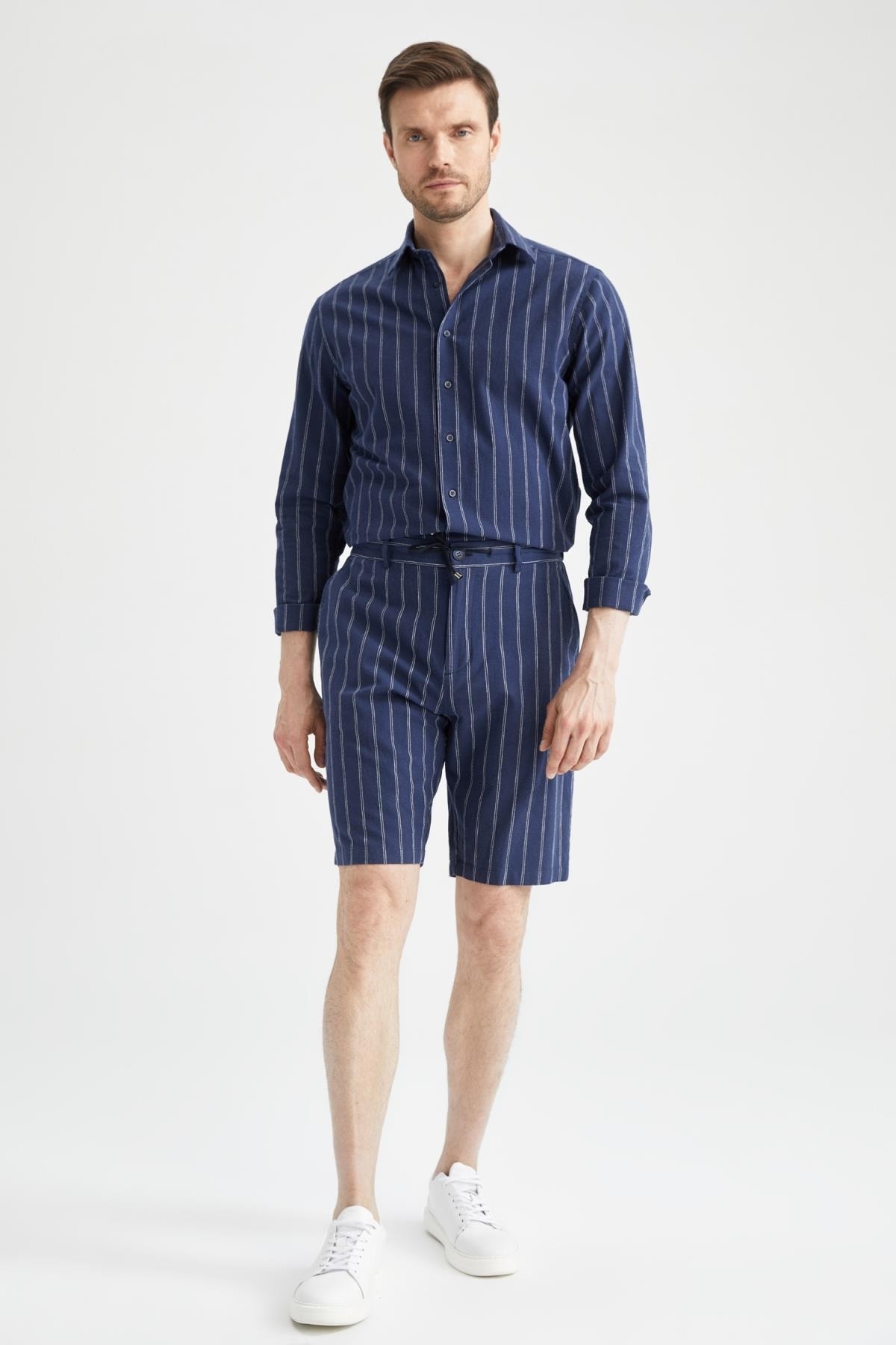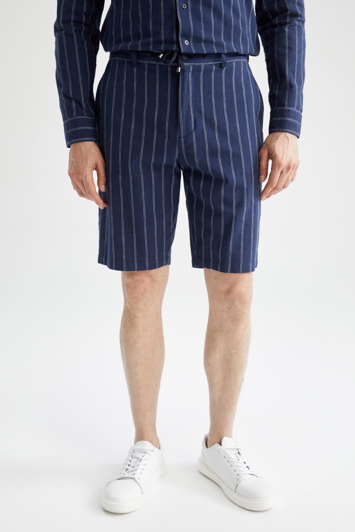 - نام : Regular Fit Keten Karışımlı Çizgili Bermuda Şort