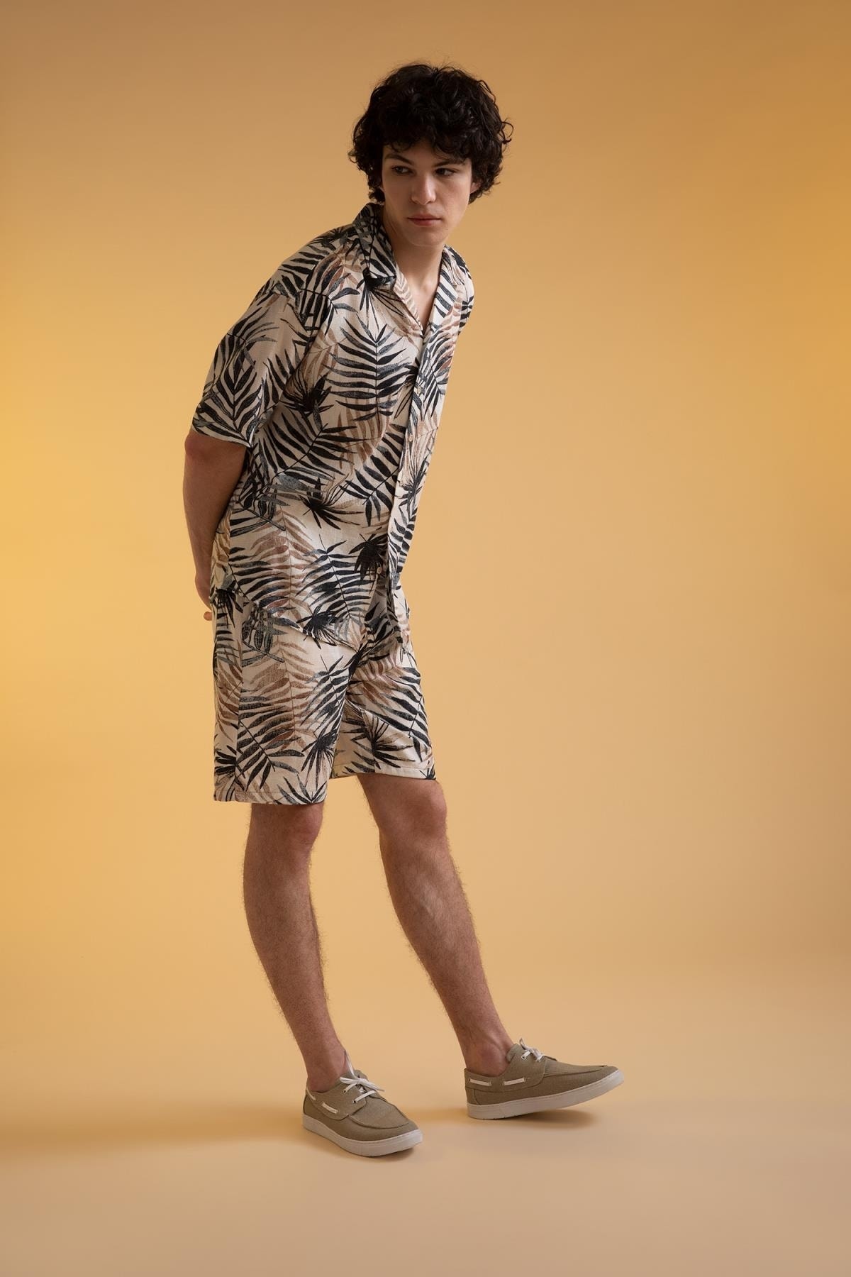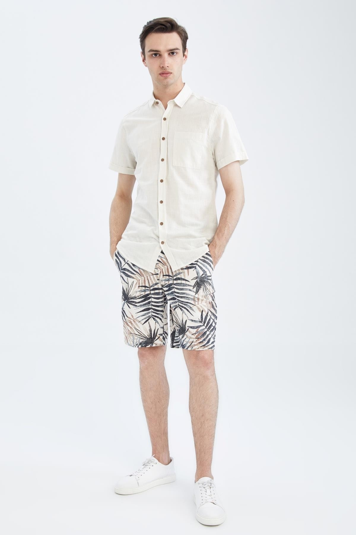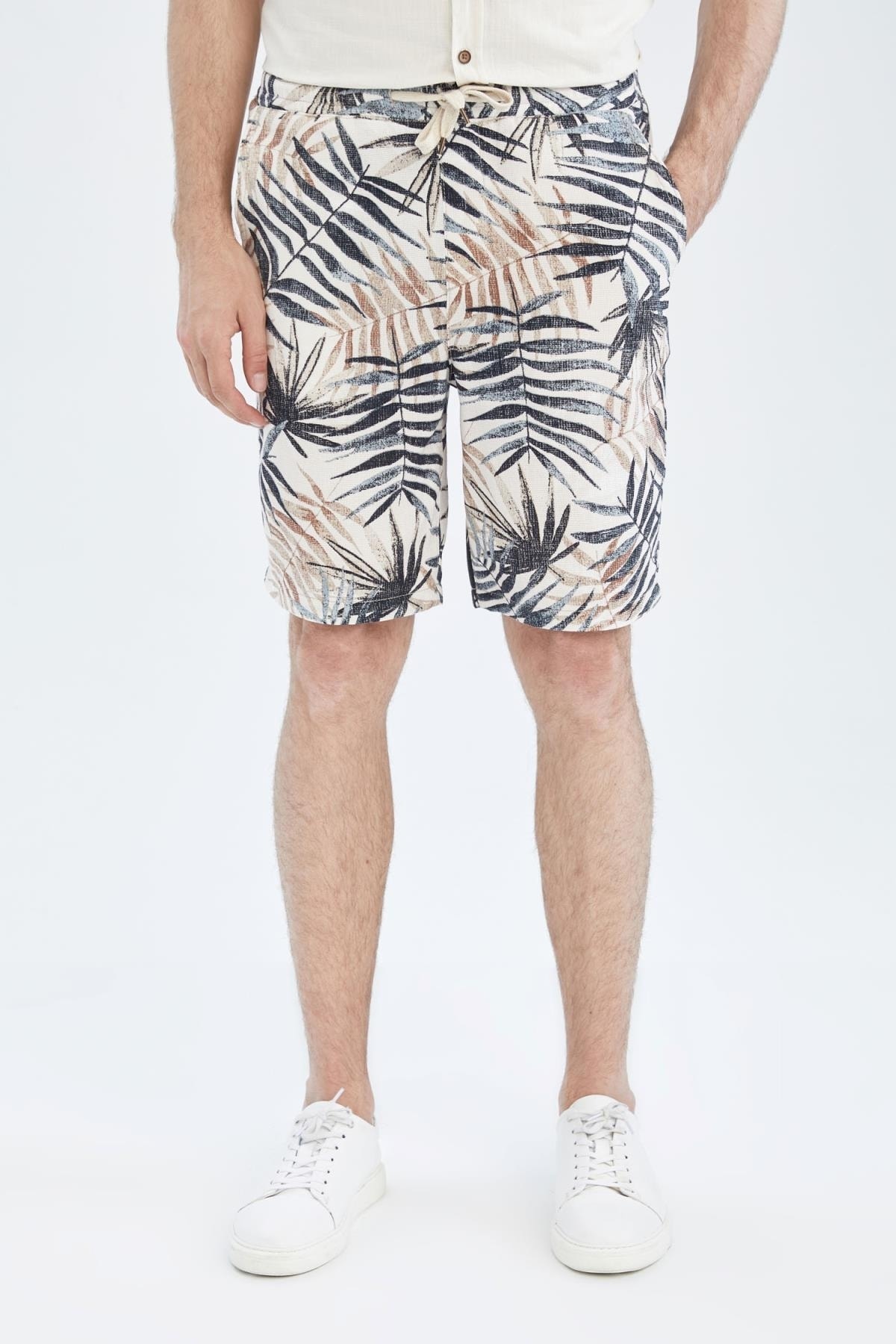 Pamuk karışımlı konforlu kullanım sunan desenli kumaşı, beli ayarlanabilir bağcıklı, spor ve dinamik giyinmeyi sevenlerin tercihi olacak tişört ve ayakkabılar ile şık kombinler oluşturabileceğiniz defacto erkek regular fit desenli bermuda şort.