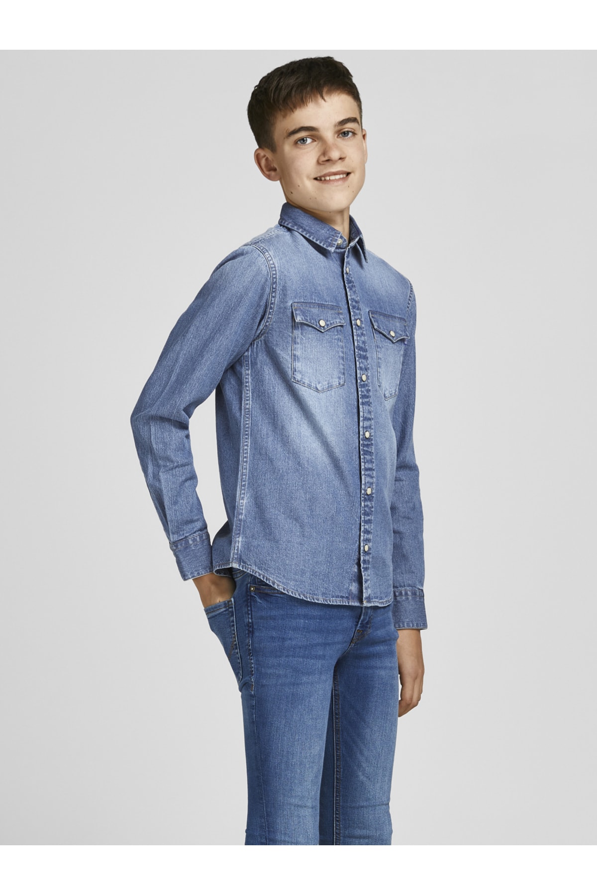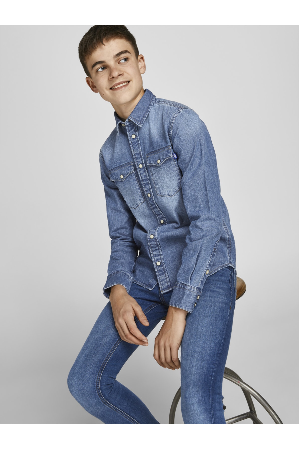 Denim gömlek. 100% Pamuk JACK & JONES JUNIOR