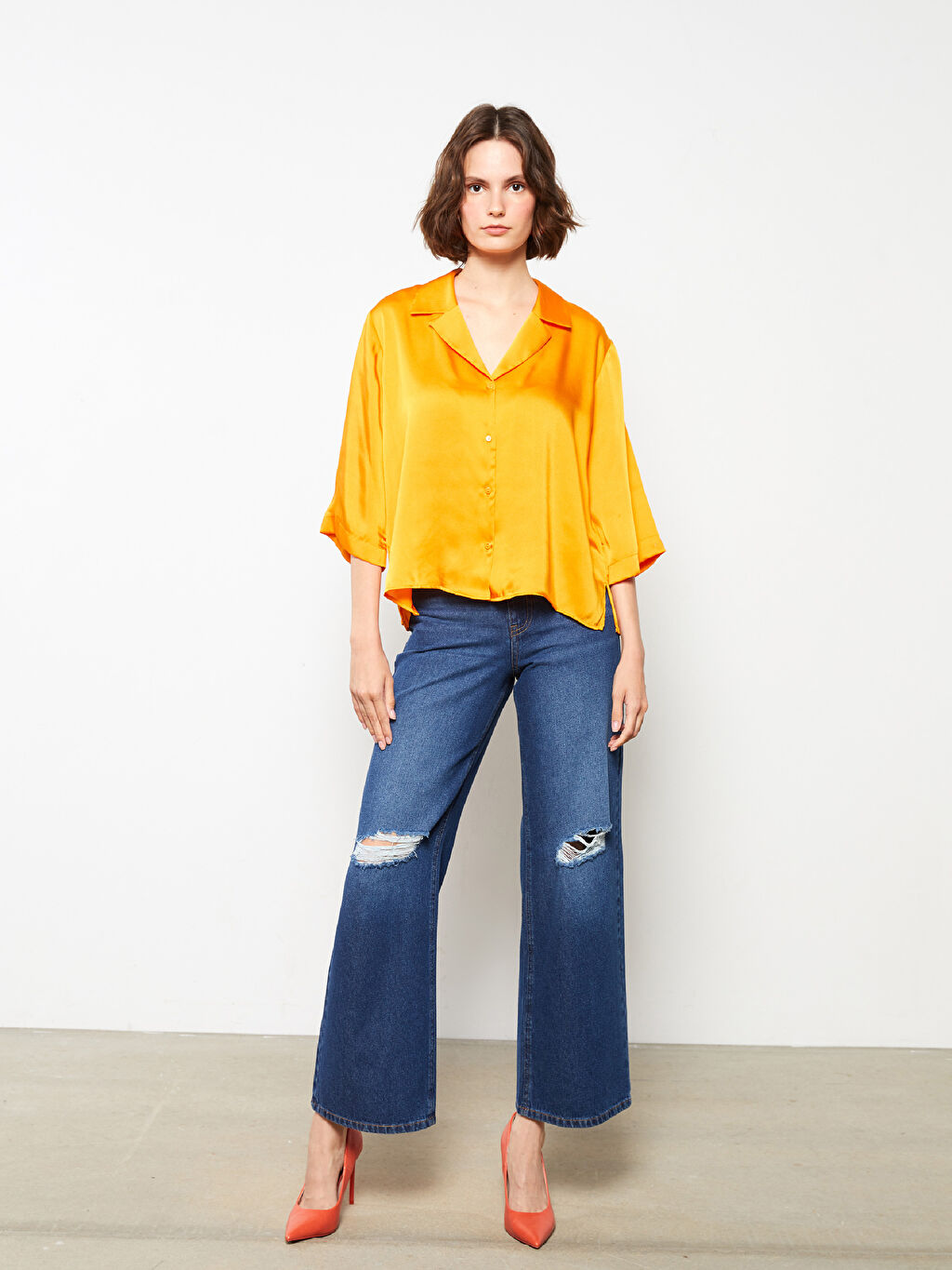 - نام : Önden Düğme Kapamalı Düz Saten Kadın Gömlek