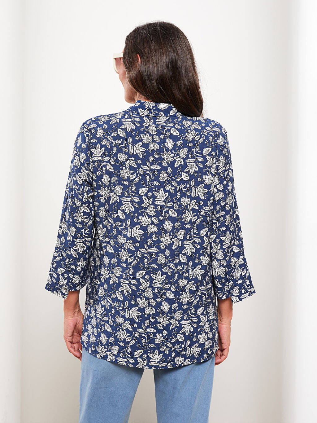 - نام : Önden Düğme Kapamalı Desenli Uzun Kollu Kadın Gömlek