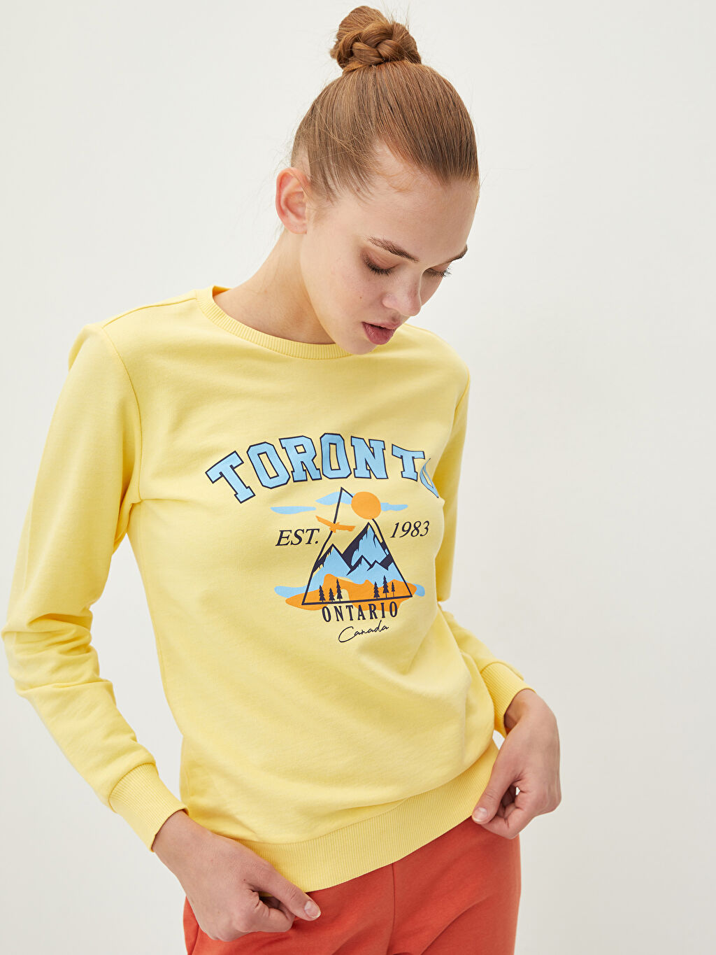 - نام : Bisiklet Yaka Baskılı Uzun Kollu Kadın Sweatshirt