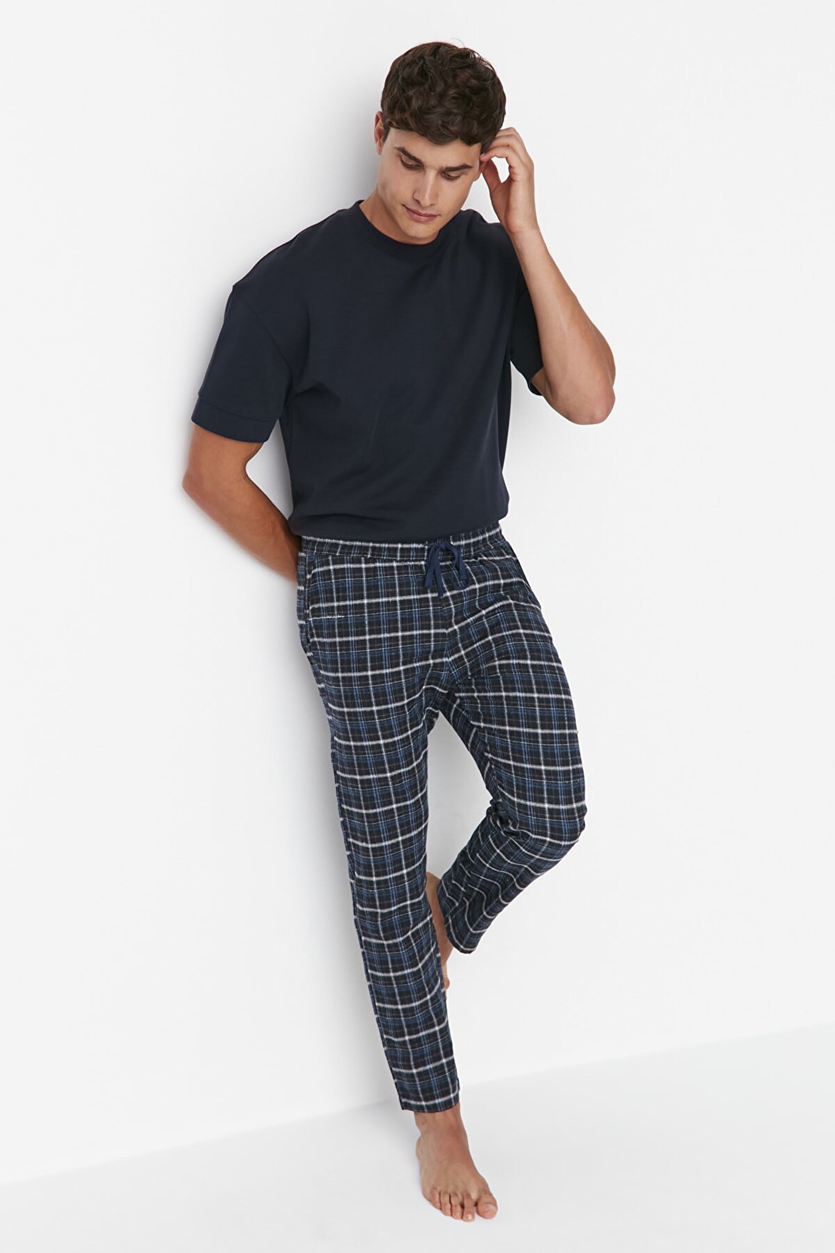 - نام : Erkek Lacivert İndigo Ekoseli Regular Fit Dokuma Pijama Altı TMNAW23PJ00014