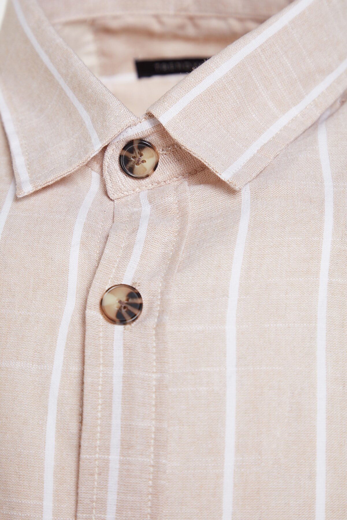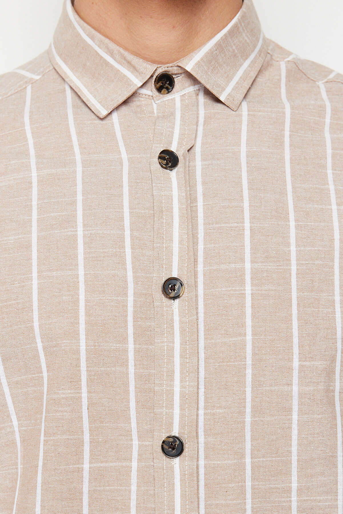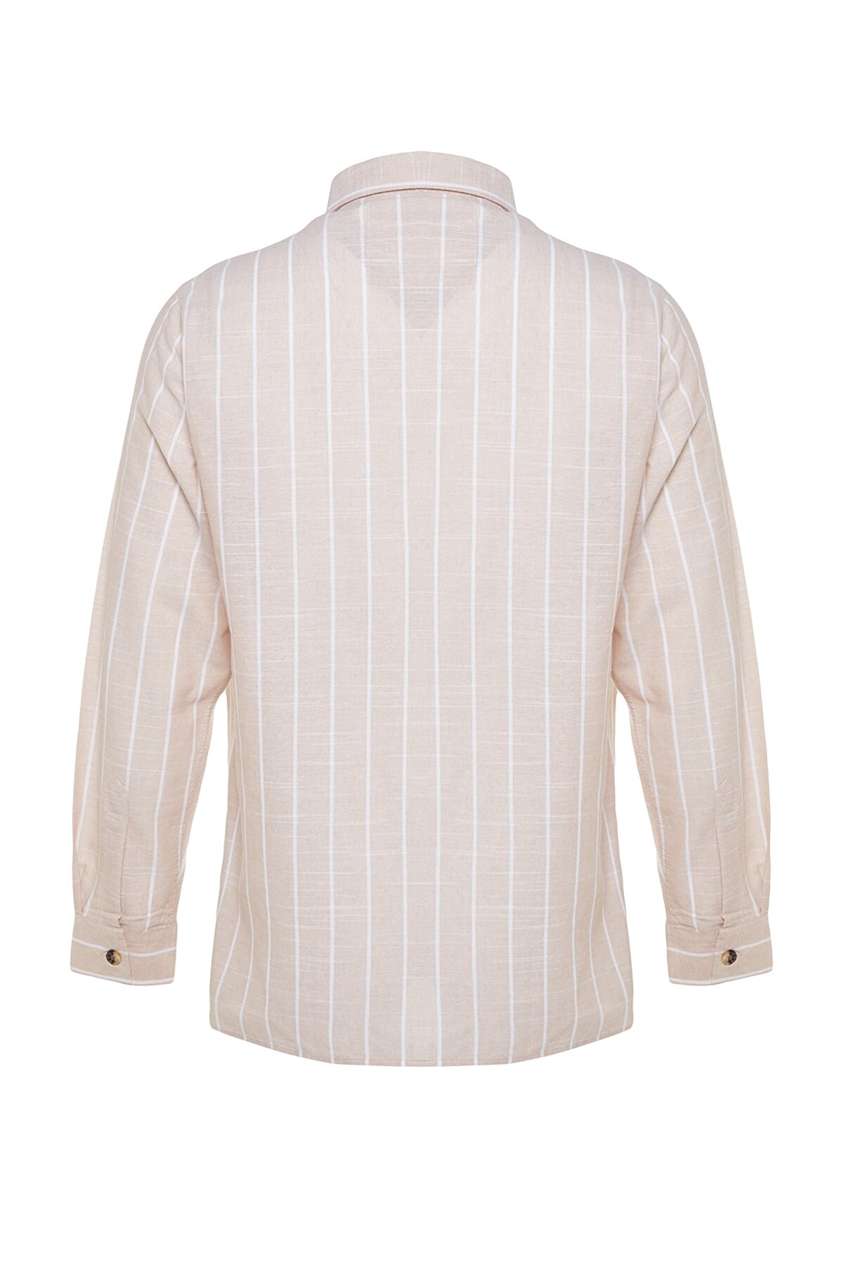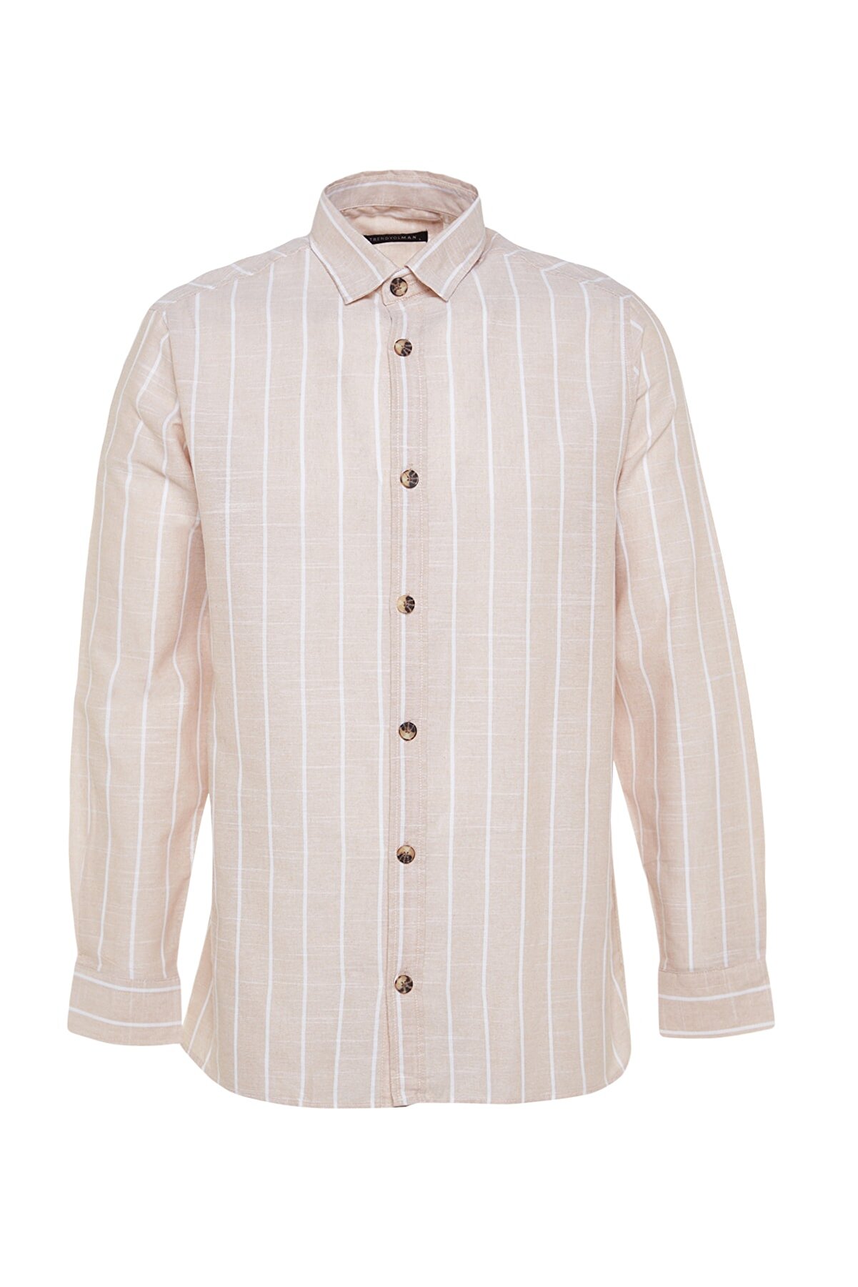 - نام : Bej Erkek Regular Fit Gömlek Yaka Çizgili Gömlek TMNSS22GO0032