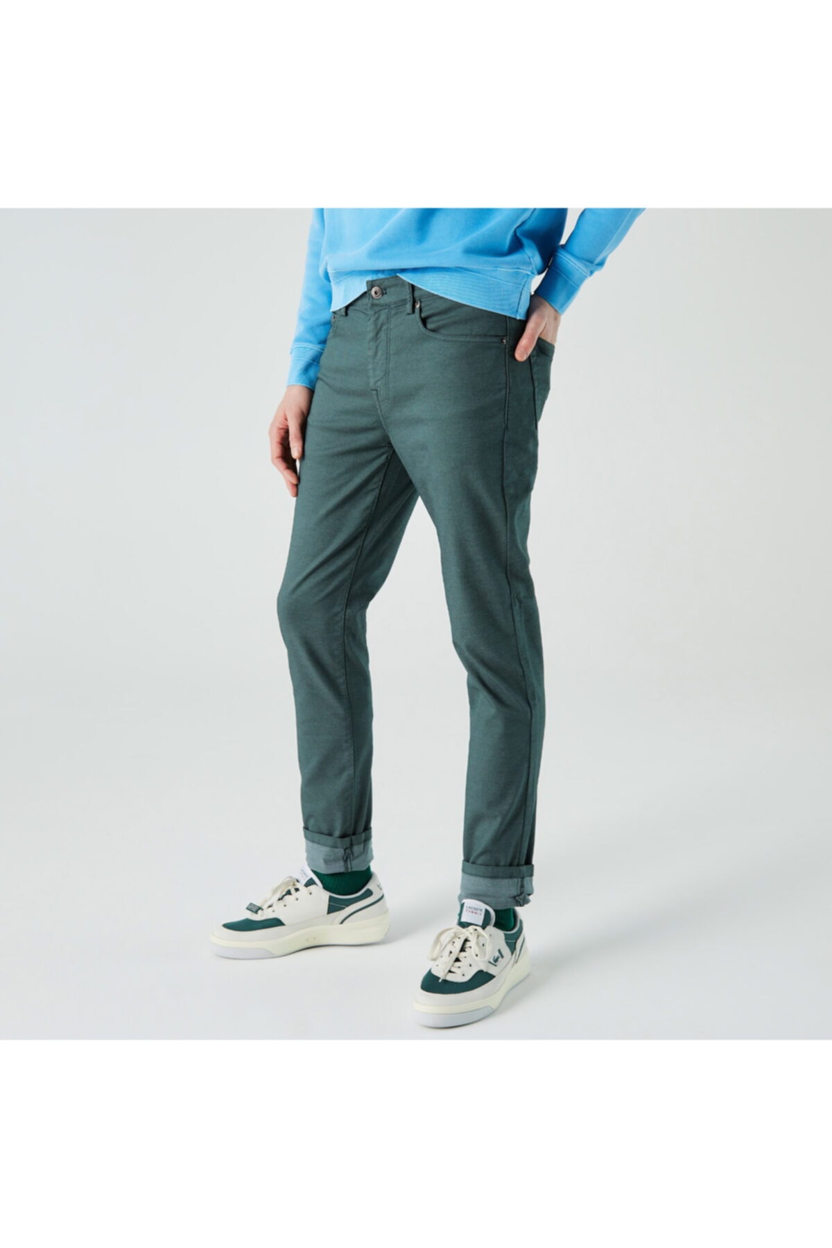 Stilinizin kilit parçalarından olan erkek pantolonlar, fonksiyonel kumaş yapısı ile klasik şıklığınızın en önemli ayrıntısı olacak. Günlük, ofiste ya da özel günlerde rahatlıkla kullanacağınız her stile kolaylıkla uyum sağlayan erkek pantolonlar farklılaşan tasarımları ve kombinlenme biçimleriyle tavır değiştiriyor. Lacoste gömlek, sneaker ya da pololarla da kombinleyebilirsiniz. Yan Cepler