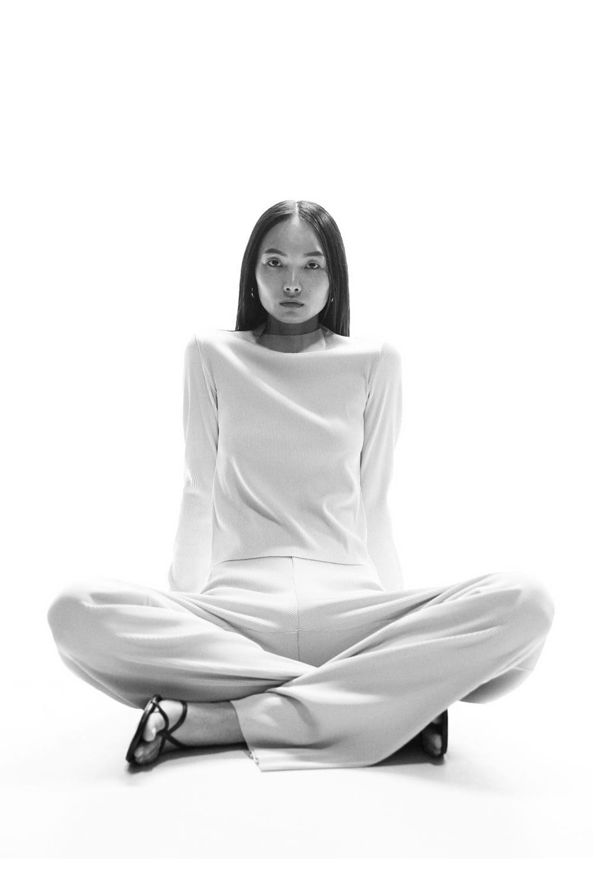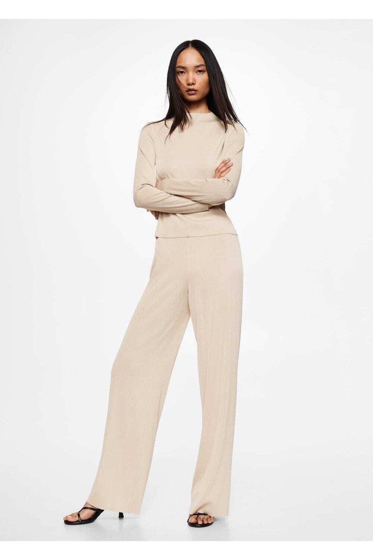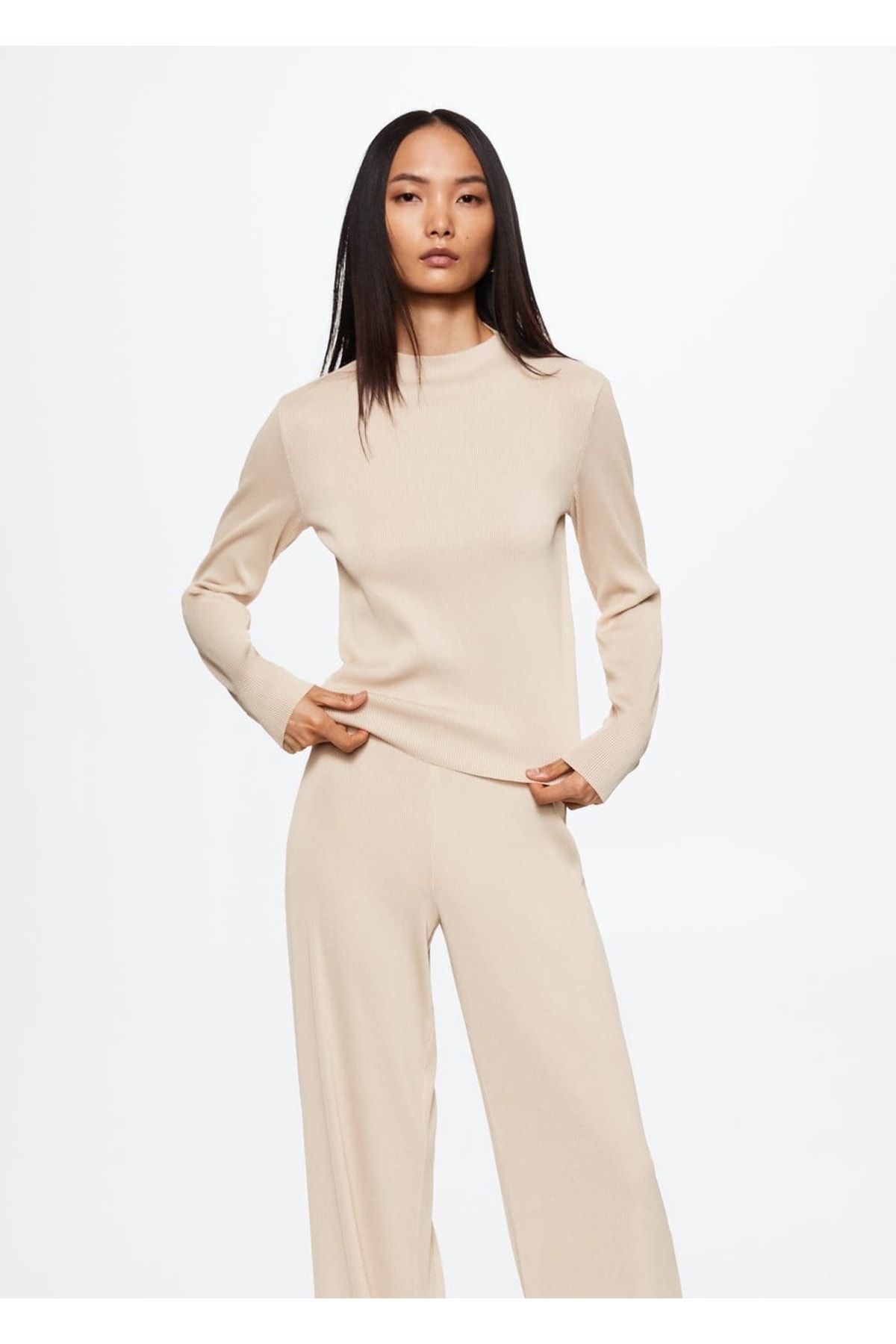 تی شرت آستین بلند زنانه بژ برند mango 37003852