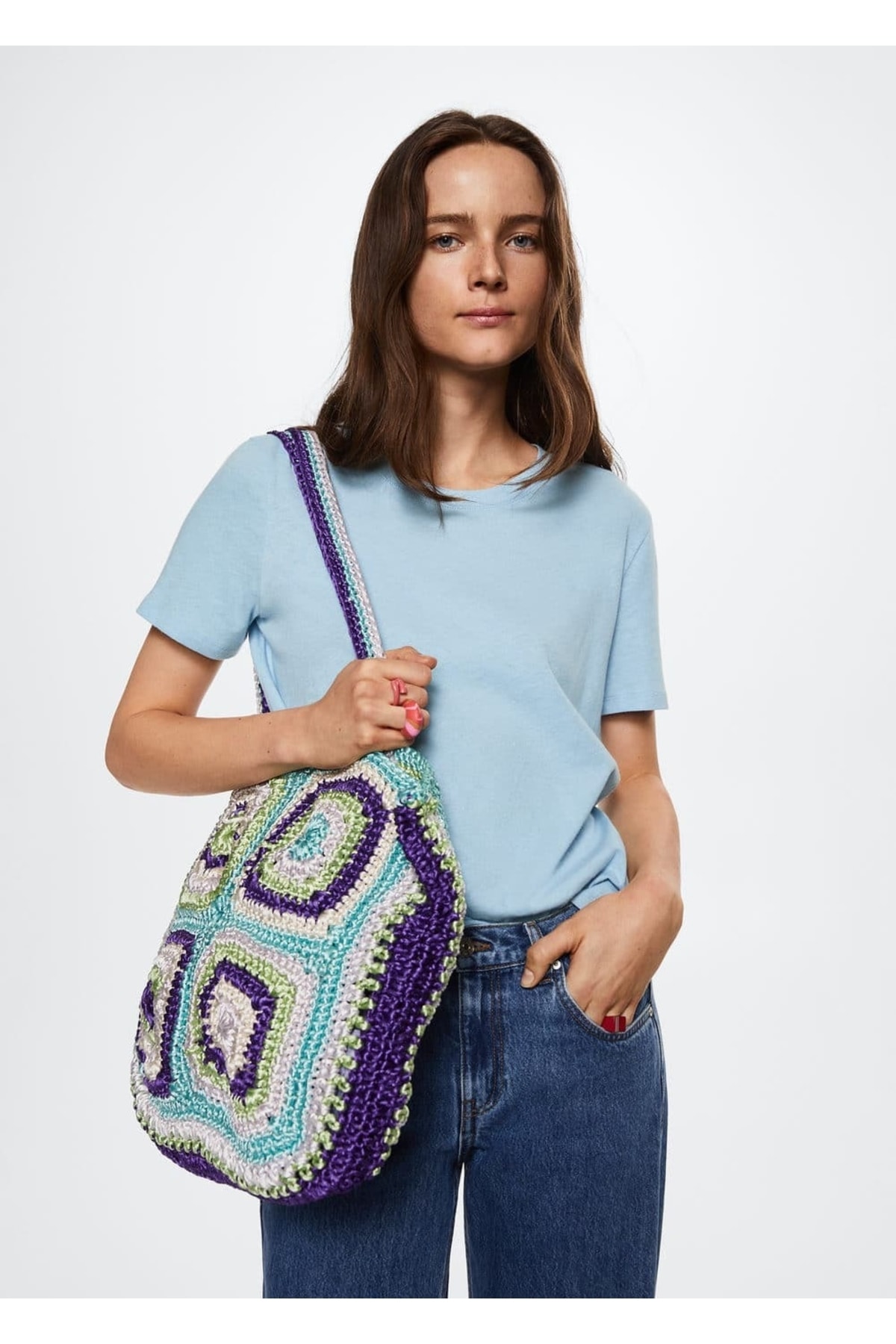 تی شرت آستین کوتاه زنانه آبی برند mango 37050480