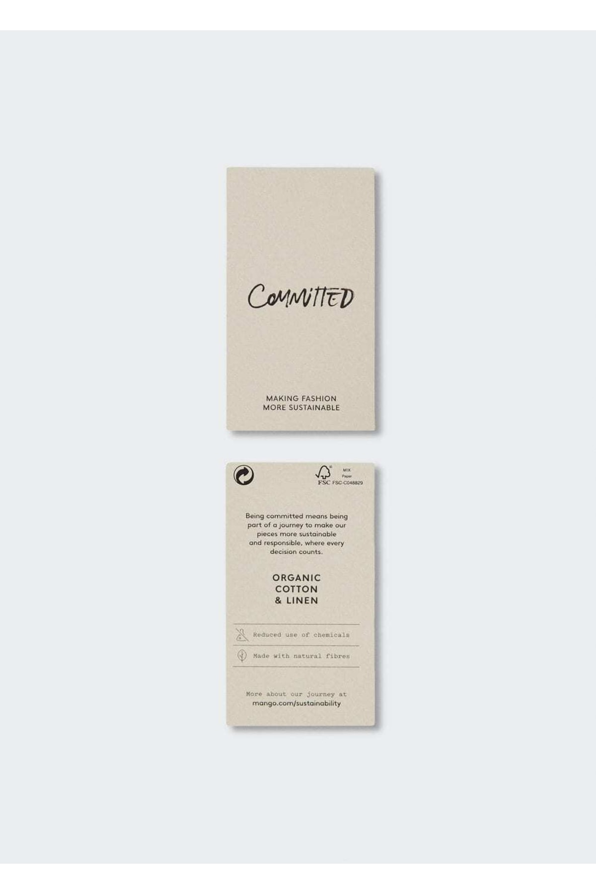 Tişört .-- laki. Committed Koleksiyonu, Keten ve pamuk karışımlı, Düz model, Uzun model, Kısa kollu, Yuvarlak yakalı, Büyük Beden Mevcuttur, Committed etiketli giysiler, çevresel etkilerinin azaltılarak, sürdürülebilir lifler veya süreçler kullanılarak üretilen ürünlerdir. Mango'nun hedefi, doğaya daha fazla adanmış olan uygulamaları desteklemek ve koleksiyondaki sürdürülebilir giysi sayısını arttırmaktır. 70% pamuk,30% keten. Yan dikiş uzunluğu 40.7 cm, Arka uzunluk 68.3 cm. KISA SANTRFÜJLE MAKİNEDE MAKS. 30°C'DE YIKAYIN, ÇAMAŞIR SUYU KULLANMAYIN, MAKS. 150°C İLE ÜTÜLEYİN, KURU TEMİZLEME YAPILMAZ, KURUTMA MAKİNESİNDE KURUTULAMAZ