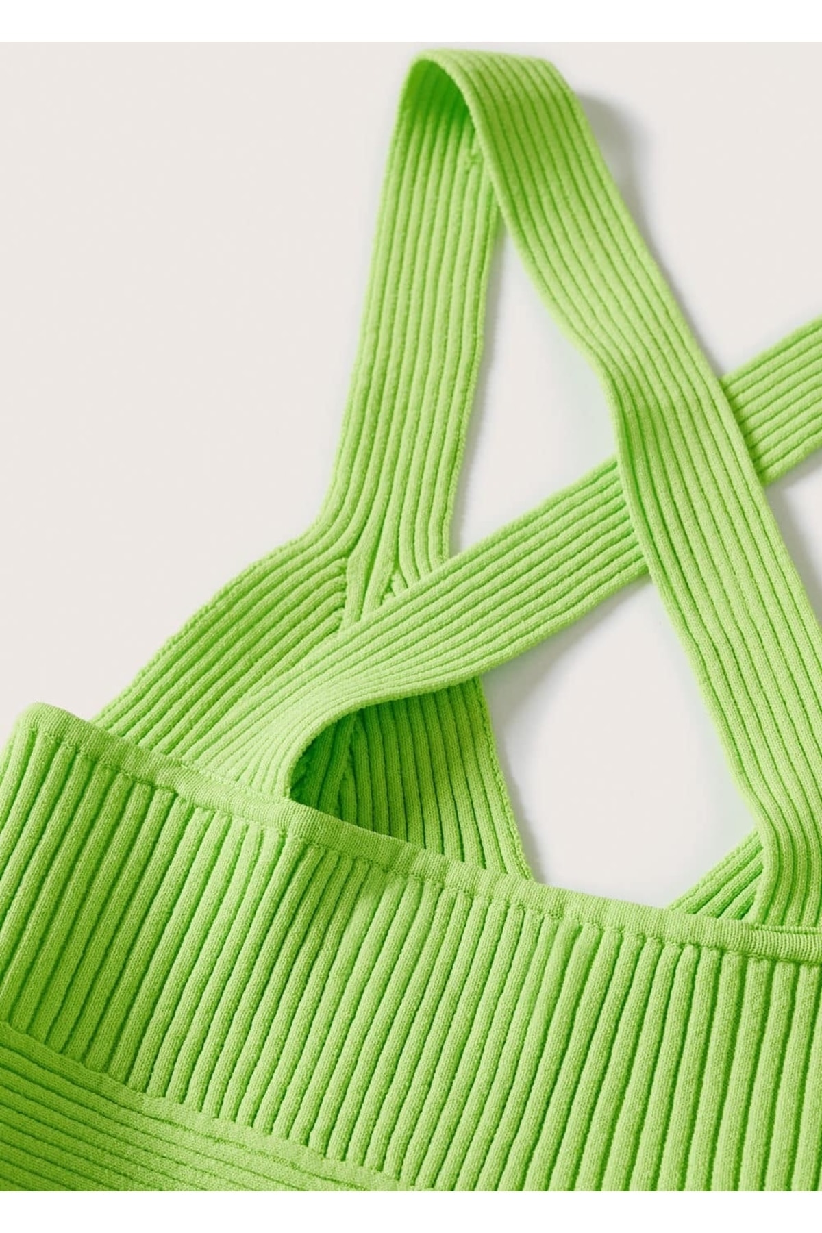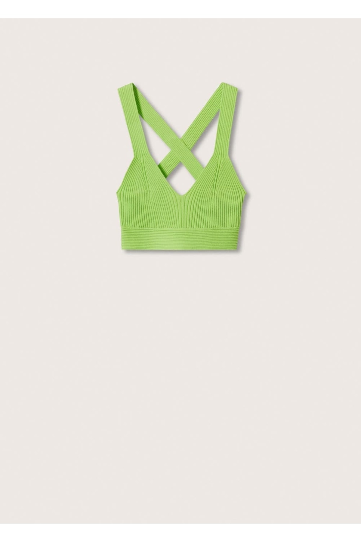 Bluz .-- sol. Committed Koleksiyonu, İnce örgülü kumaş, İnce tasarımlı, V yakalı, Geniş askılı, Kısaltılmış tasarım, Arkası çapraz. 50% recycled polyester,50% polyamid. Arka uzunluk 14.5 cm. ELDE MAKS. 30°C'DE YIKAYIN, ÇAMAŞIR SUYU KULLANMAYIN, MAKS. 110°C İLE ÜTÜLEYİN, KURU TEMİZLEME YAPILMAZ, KURUTMA MAKİNESİNDE KURUTULAMAZ