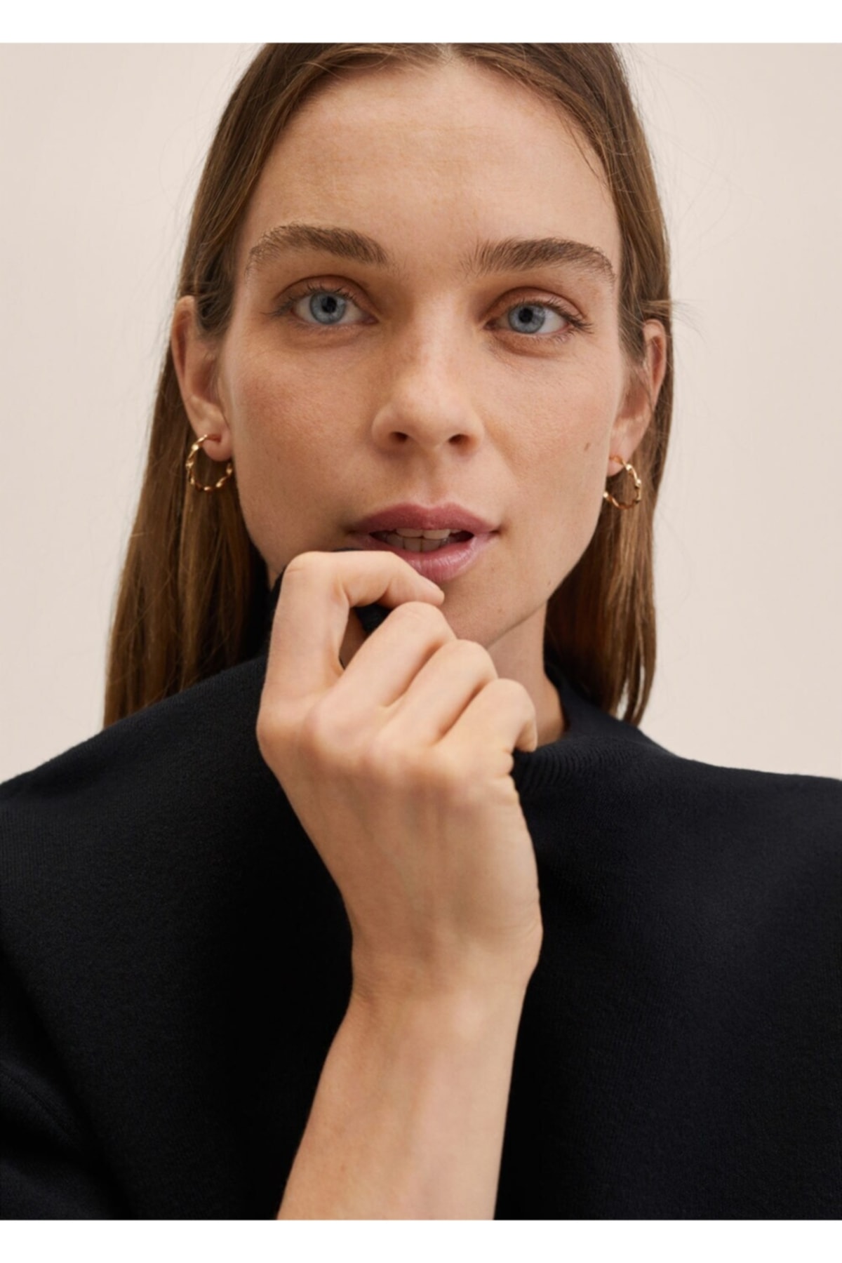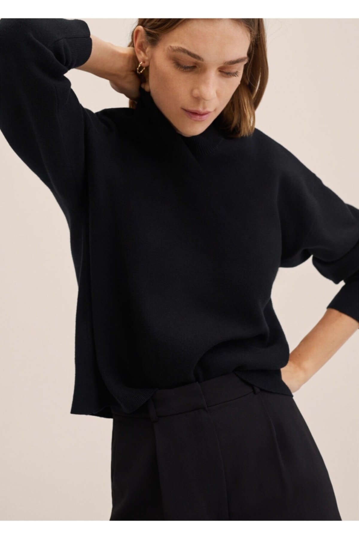 Kazak .-- tortuga. Committed Koleksiyonu, Standart tasarım, Orta kalınlıkta örgü, Kapamasız, Düz tasarım, Örme kumaş, Lastik süslemeli, Geniş model, Omuzları düşük, Yüksek yakalı, Uzun kollu, Committed etiketli giysiler, çevresel etkilerinin azaltılarak, sürdürülebilir lifler veya süreçler kullanılarak üretilen ürünlerdir. Mango'nun hedefi, doğaya daha fazla adanmış olan uygulamaları desteklemek ve koleksiyondaki sürdürülebilir giysi sayısını arttırmaktır. 52% viskoz,30% polyester,18% polyamid