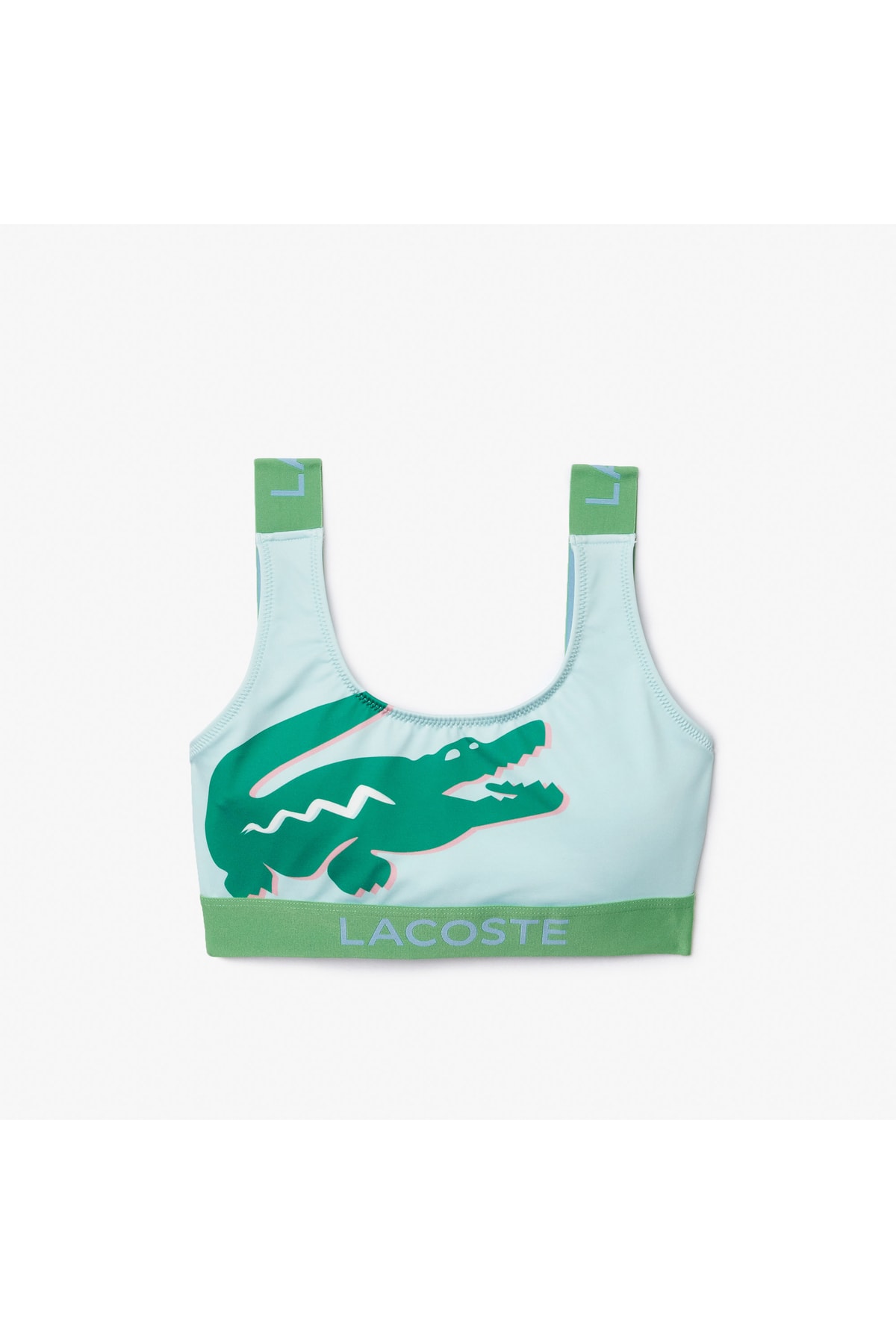 Boost your flair in this colorful bikini top adorned with an oversized crocodile. The eco-friendly piece made in technical jersey features elasticized and branded straps, an opening at the back and a contrast, elasticized bottom of garment with branding. A whimsical must-have loaded with comfort. Recycled polyester technical jersey