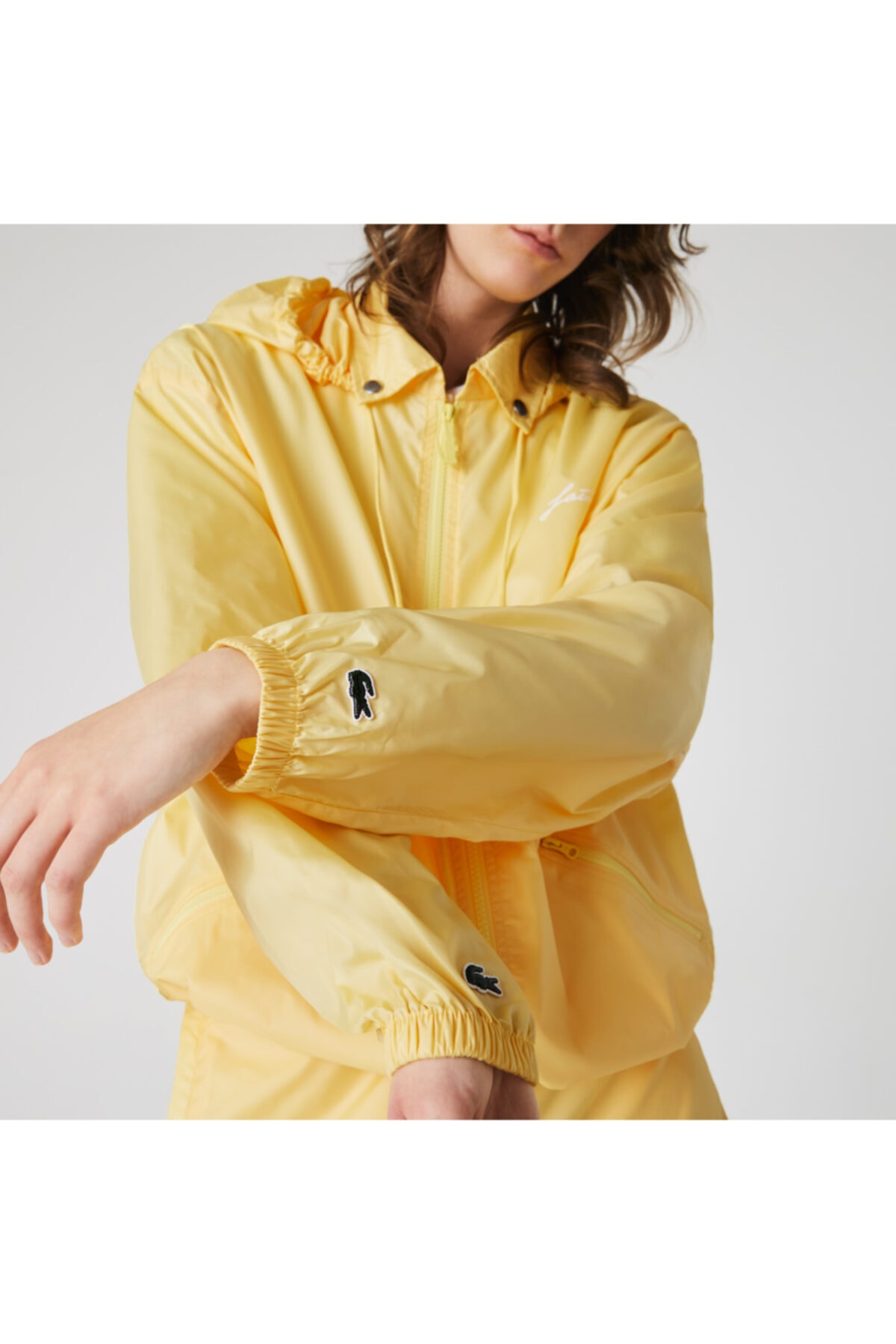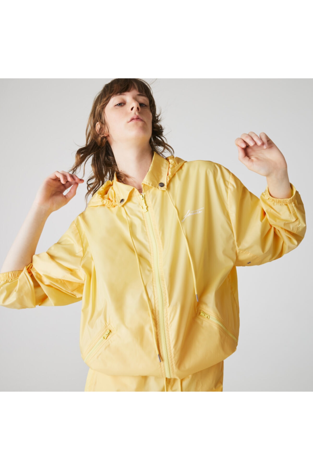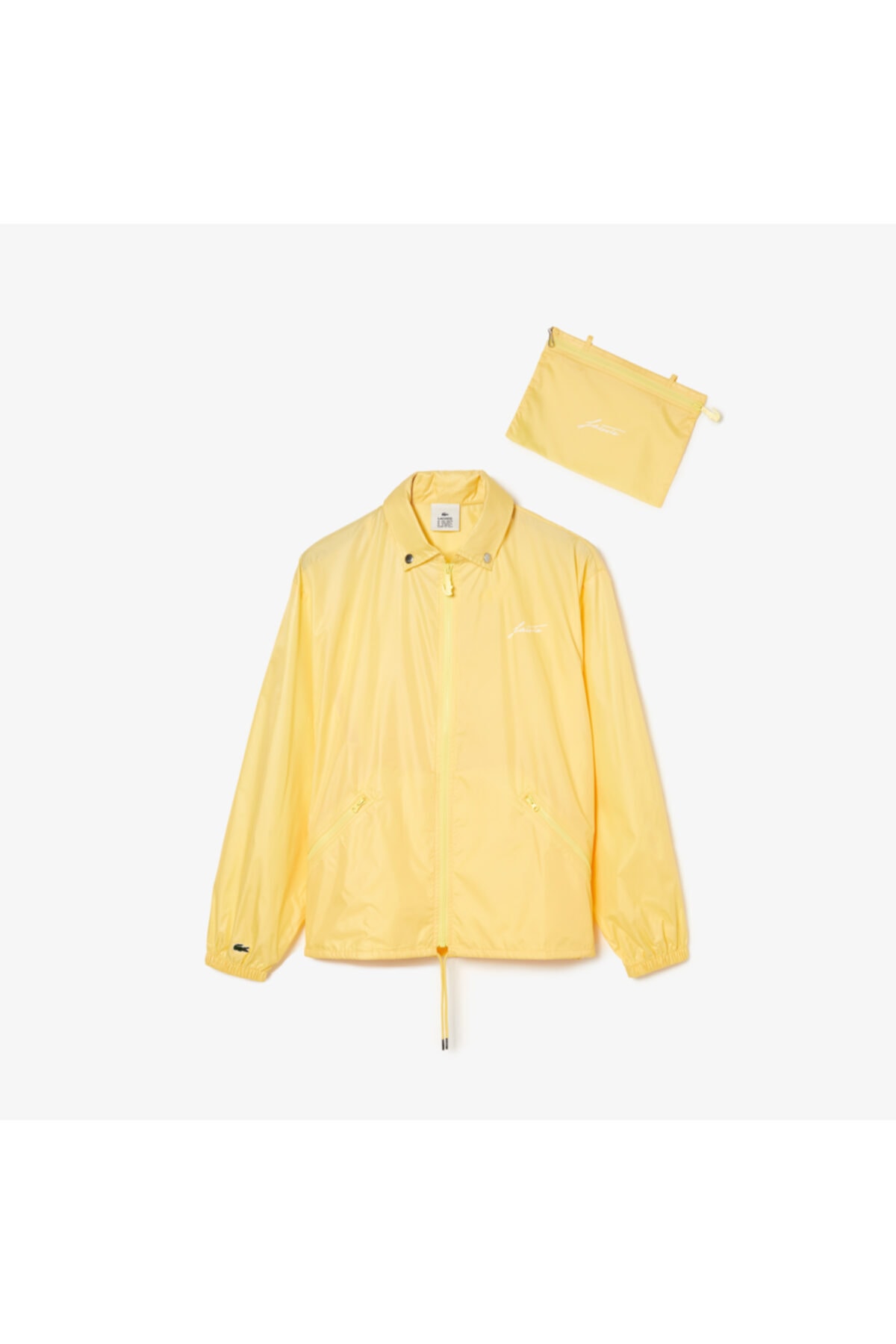 Suya dayanıklı kumaştan üretilen bu kapüşonlu fermuarlı ceket, tarz ile rahatlığı buluşturuyor. Çiseleme durumunda yanınızda her yere götürebilmek için tamamen katlayabilir ve markanın logosunu taşıyan fermuarlı çantasına koyabilirsiniz. Ayarlanabilir elastik yüzeyleri ve göğsünde bulunan Lacoste imzası ile bu ceket sezon ortasının bir vazgeçilmezi. Teknik Özellikler Yakası büzgü ipli katlanabilir kapüşon