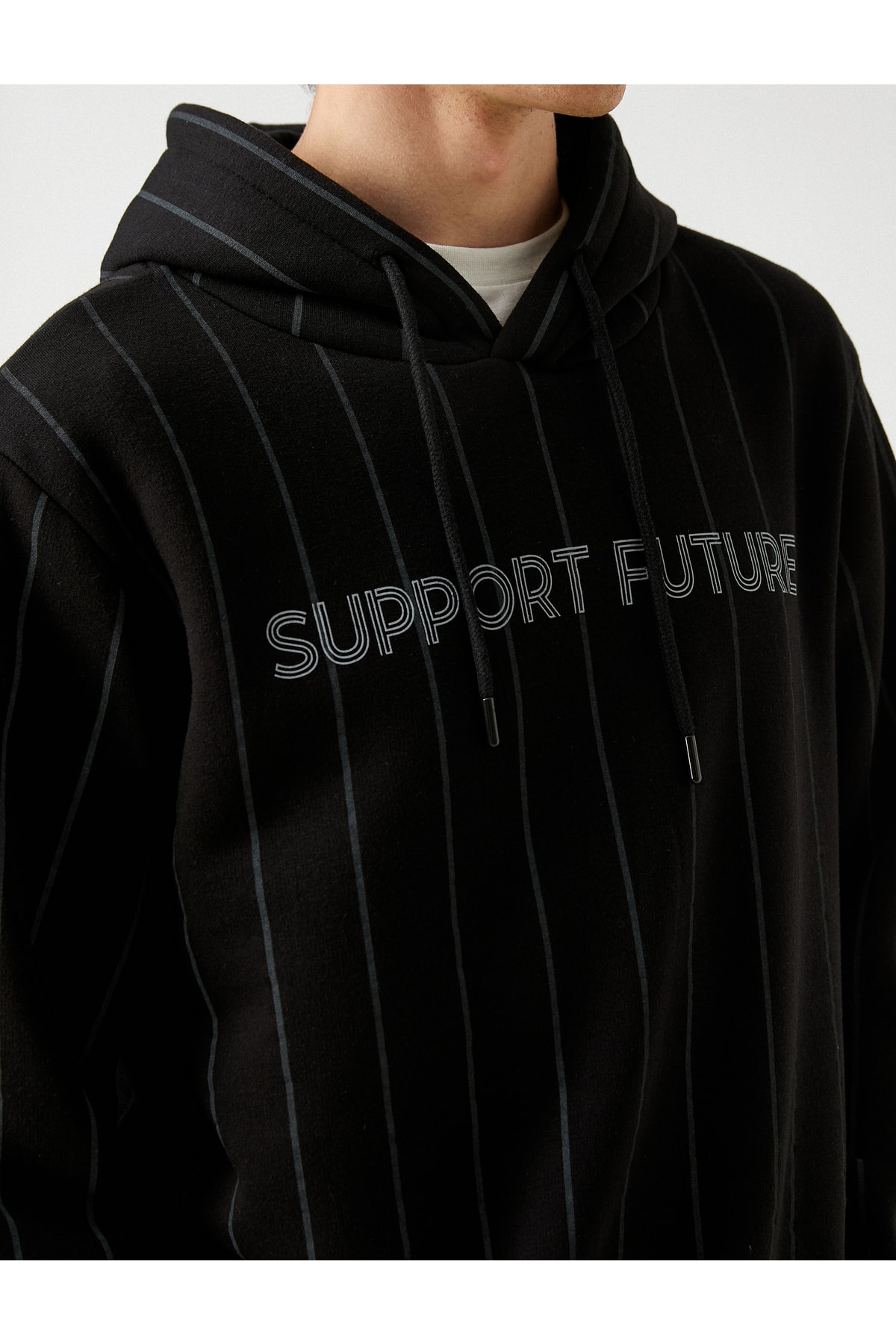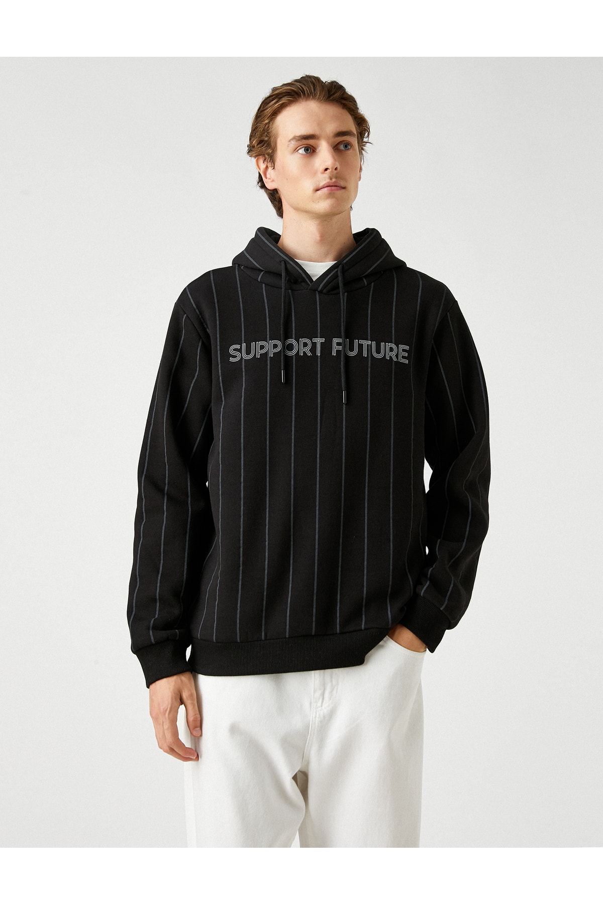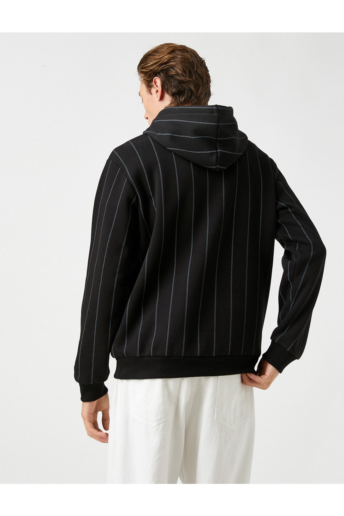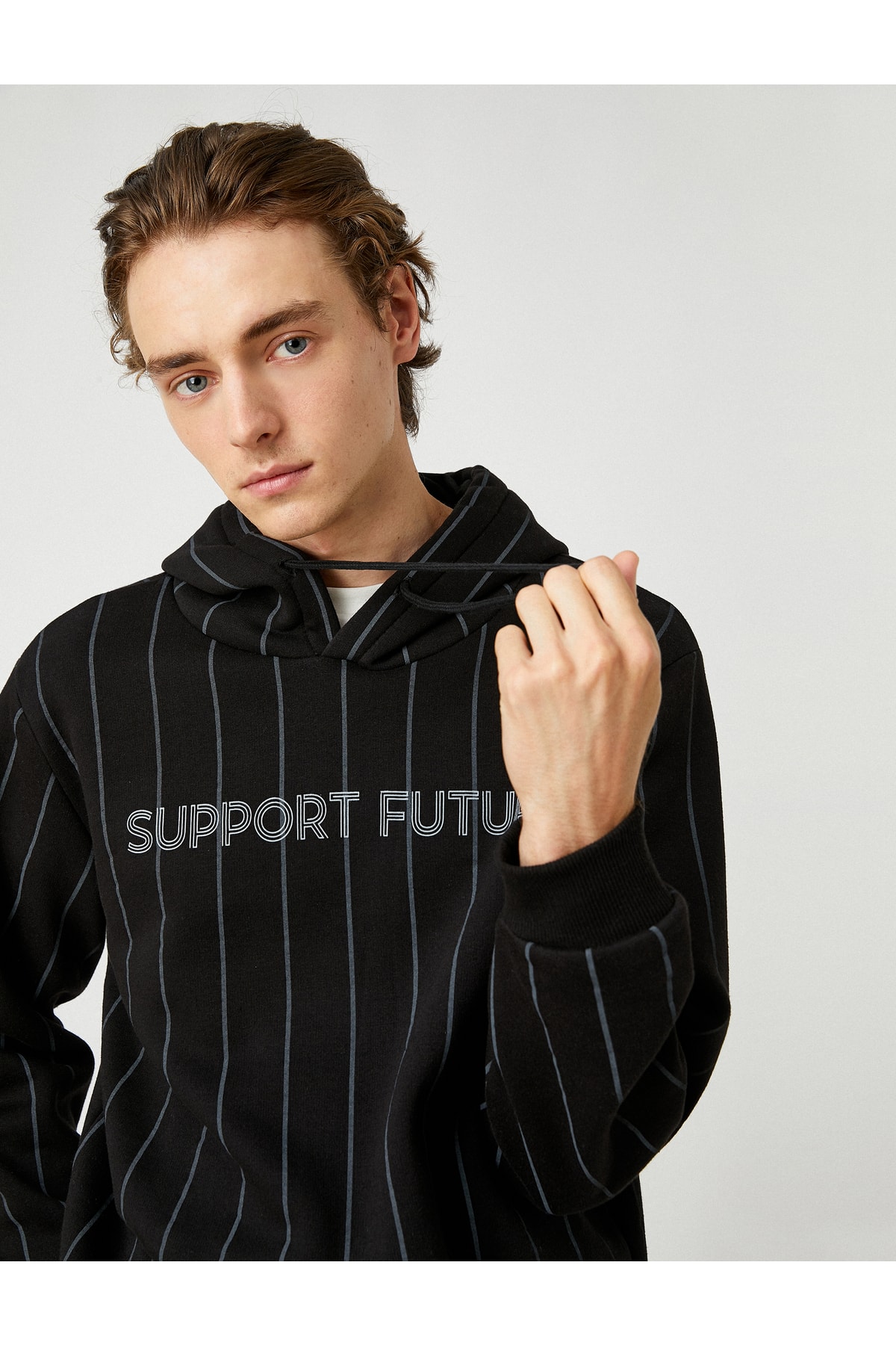 Baskılı Çizgili Kapşonlu Sweatshirt