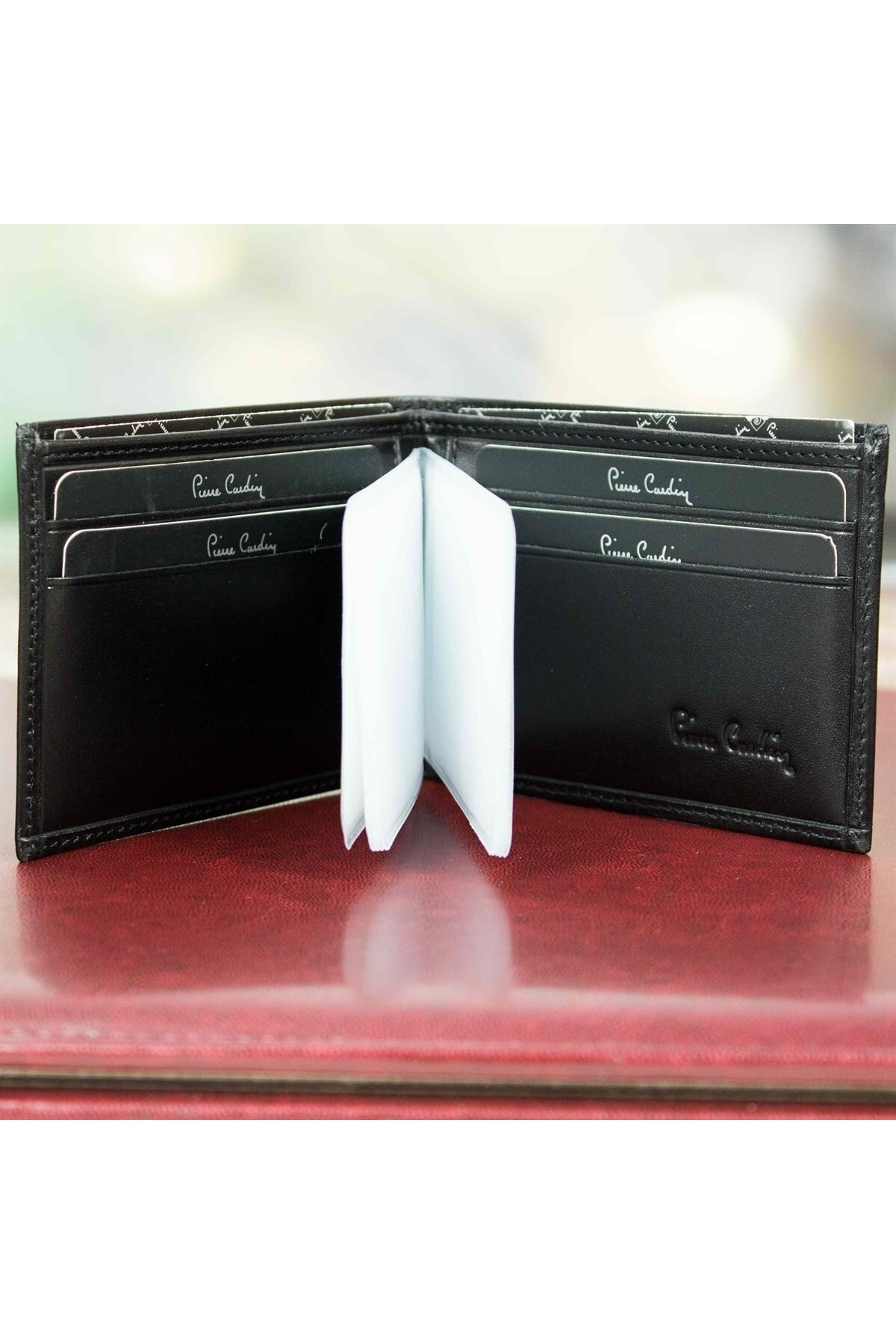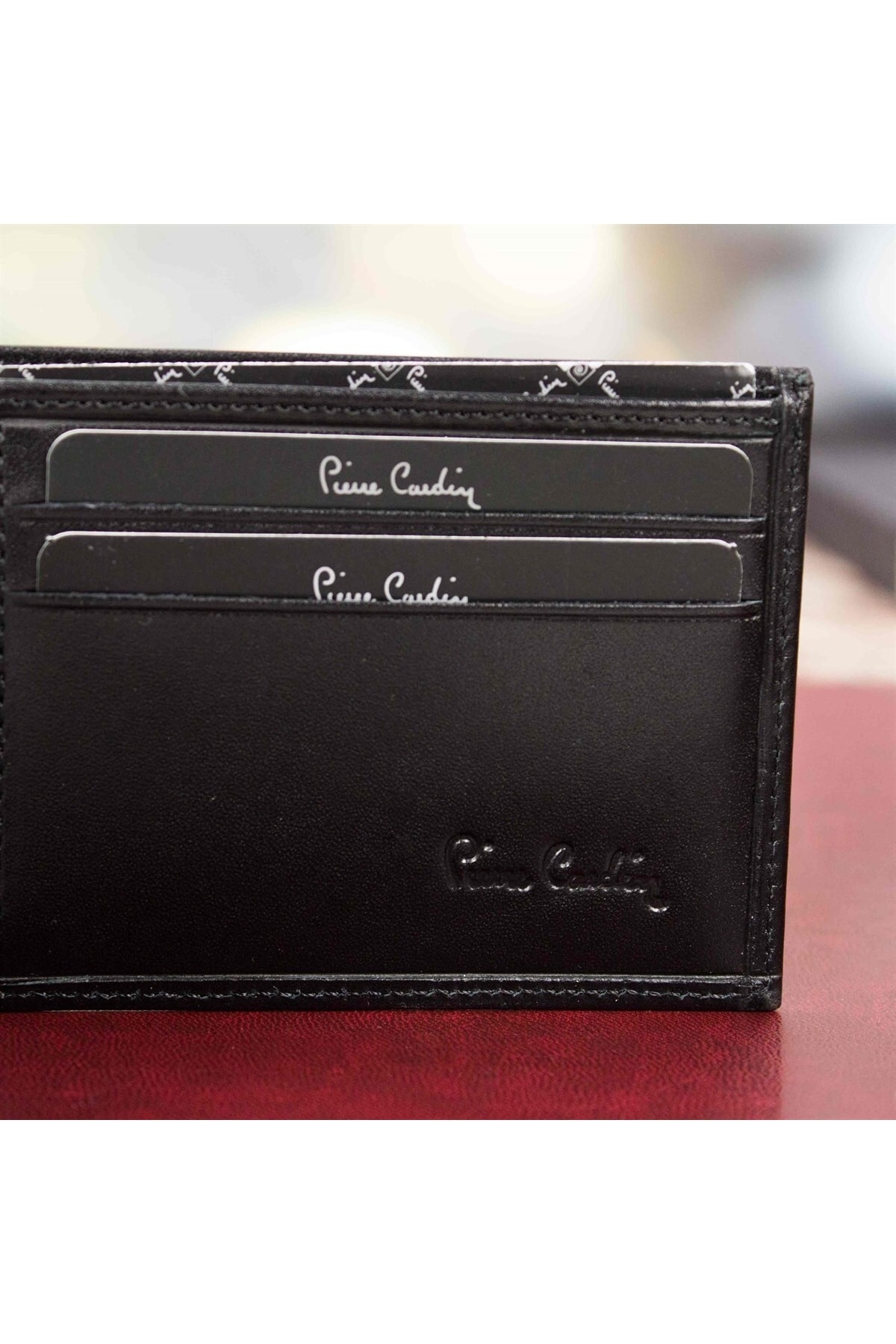 Cüzdan Özellikleri: 1 adet kağıt para bölmesi mevcuttur. 4 adet kredi kartı ehliyet vs. bölmesi mevcuttur. 2 adet gizli kartlık vs. bölmesi mevcuttur. Çıkarılabilir şeffaf 10 adet ekstra kartlık kapasitelidir. Yeni nesil nüfus cüzdanları ile uyumludur. Cüzdan Ebatları: Yükseklik: 8 cm , Uzunluk: 10,8 cm Renk: Siyah Paket İçeriği: 1 adet pierre cardin deri cüzdan