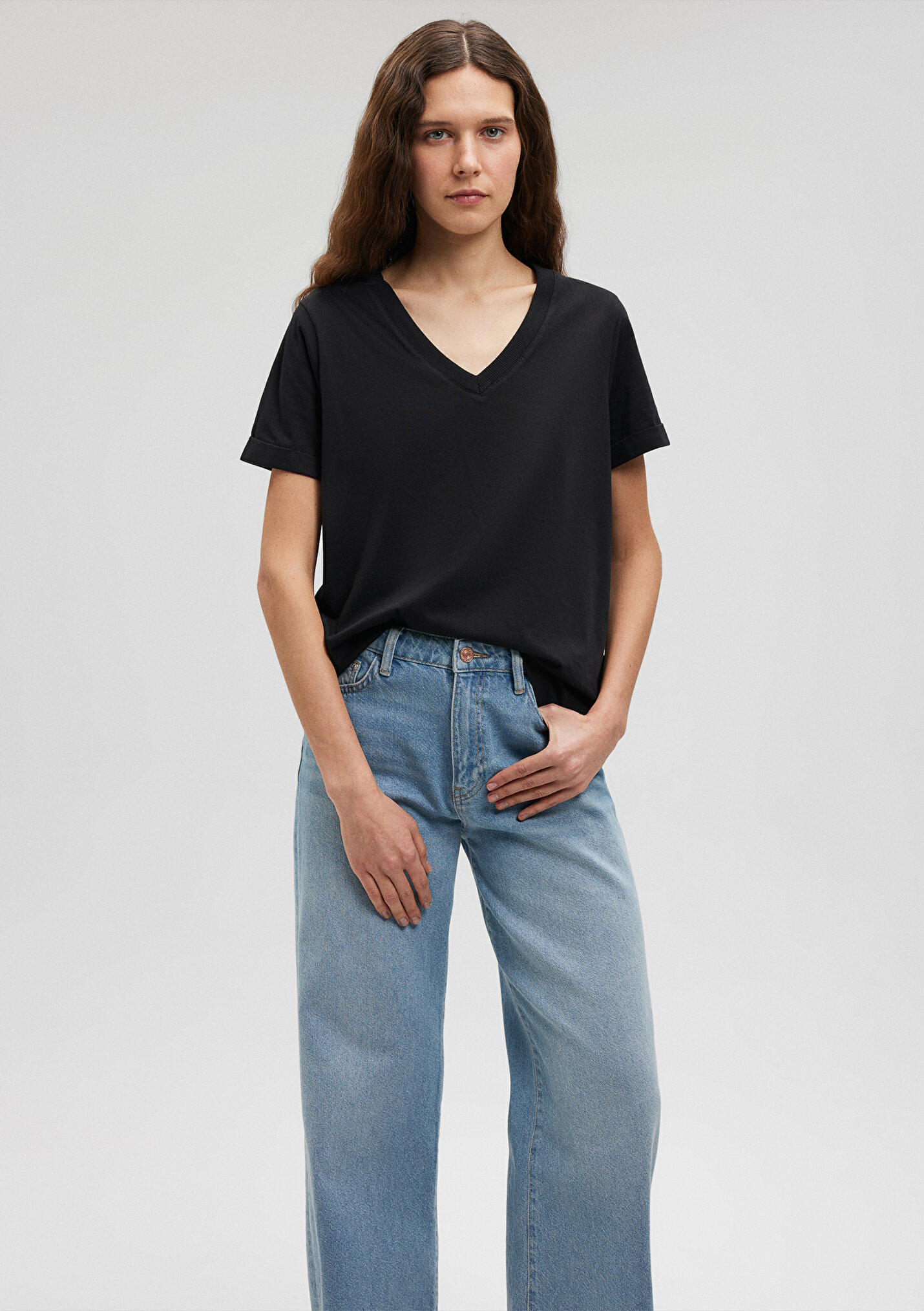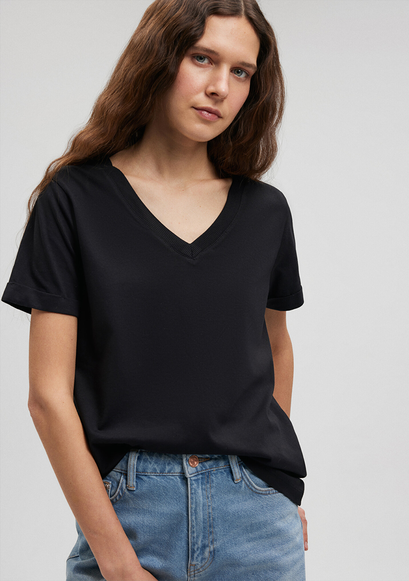 - نام : V Yaka Siyah Basic Tişört