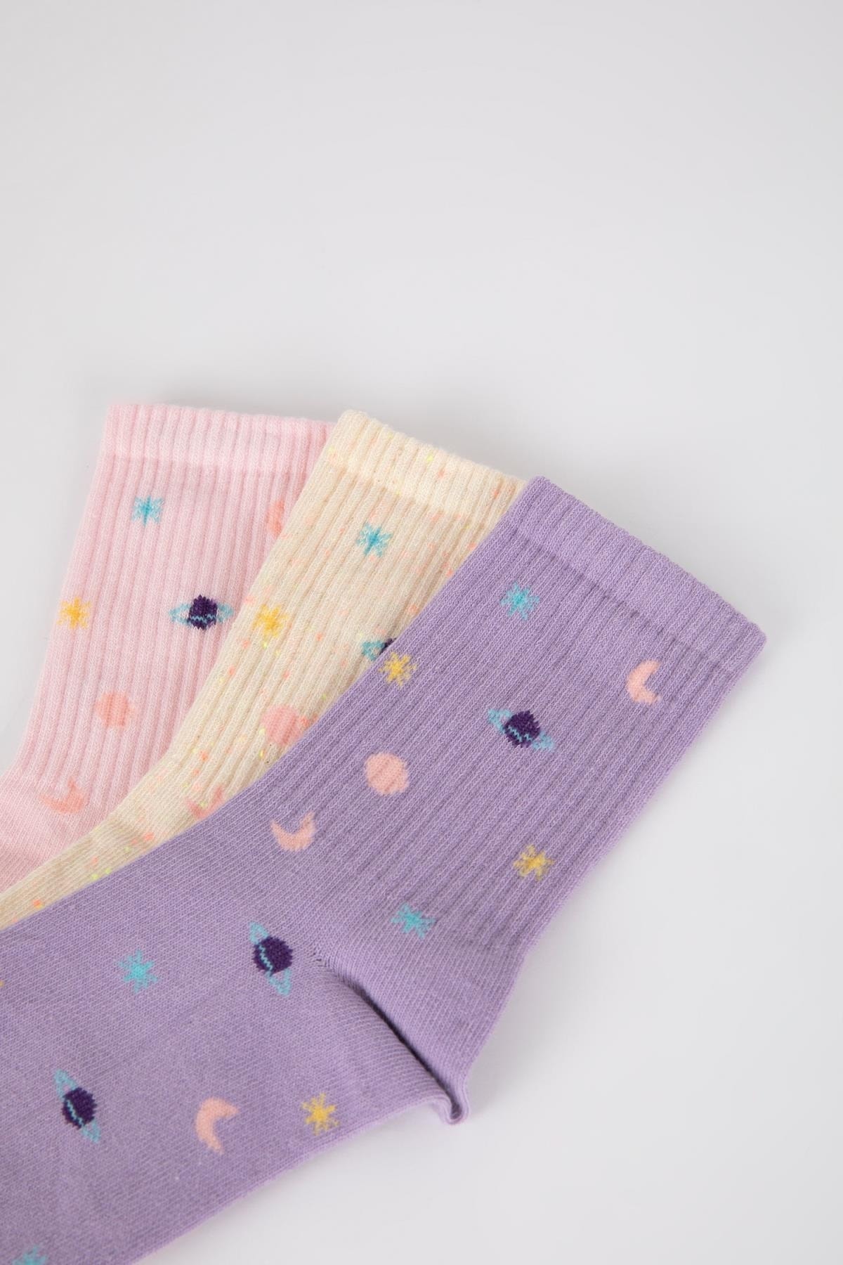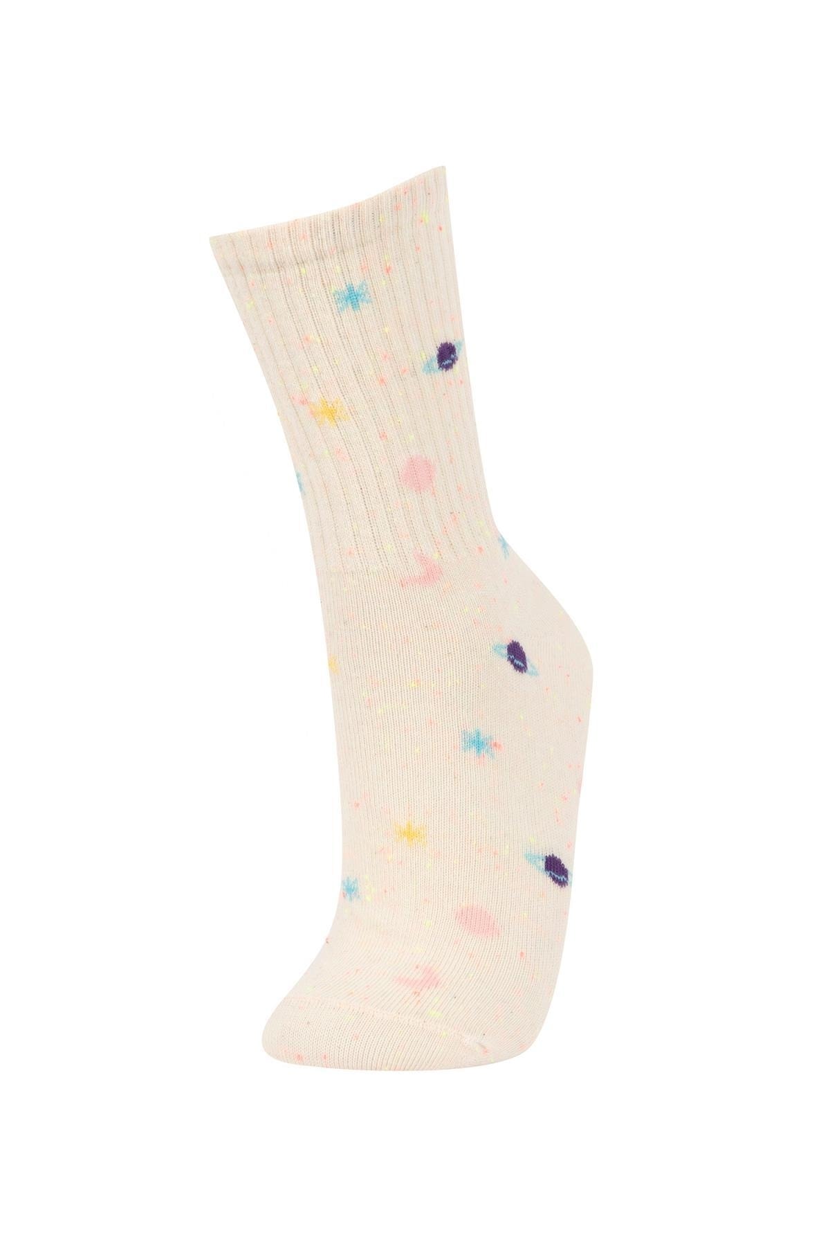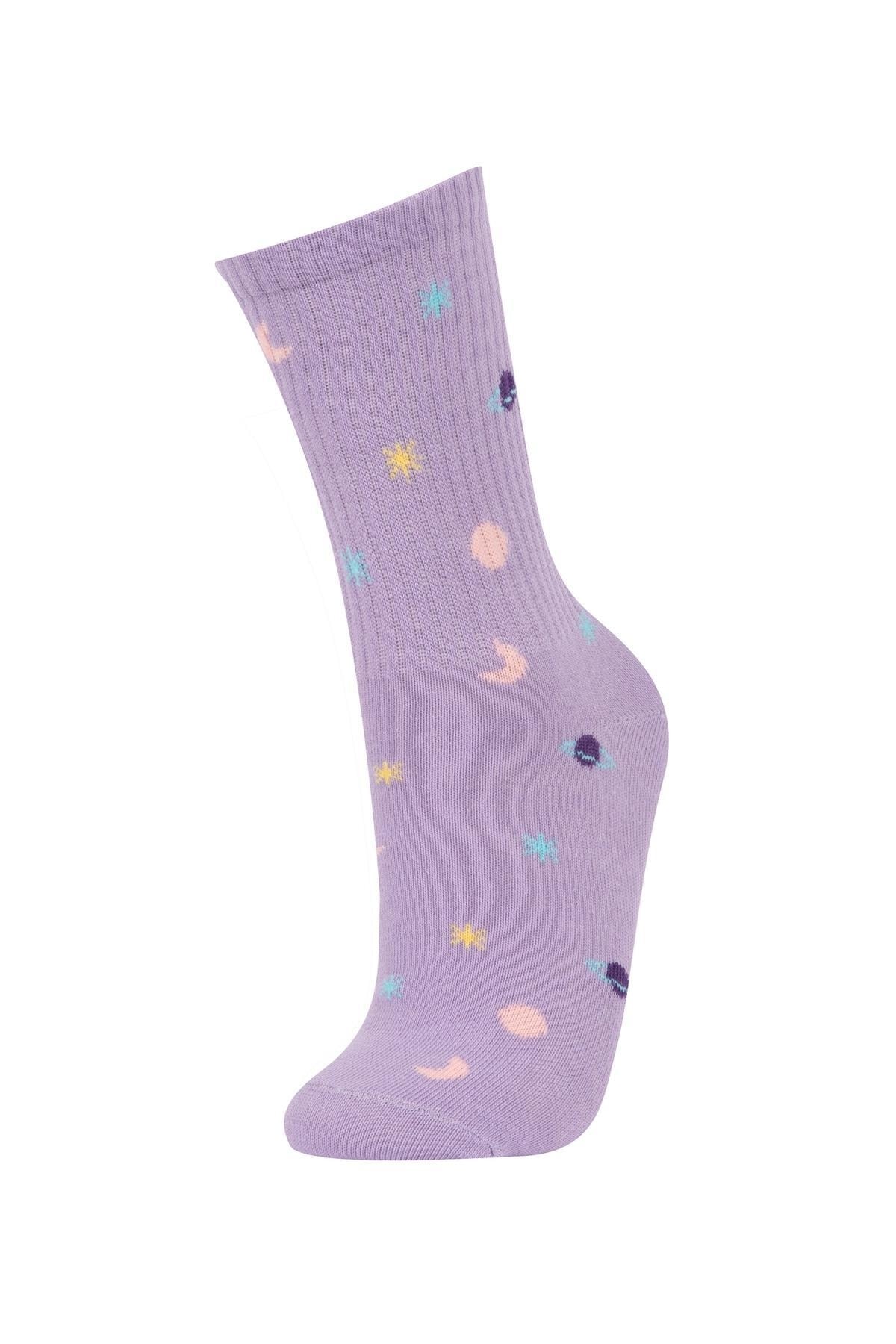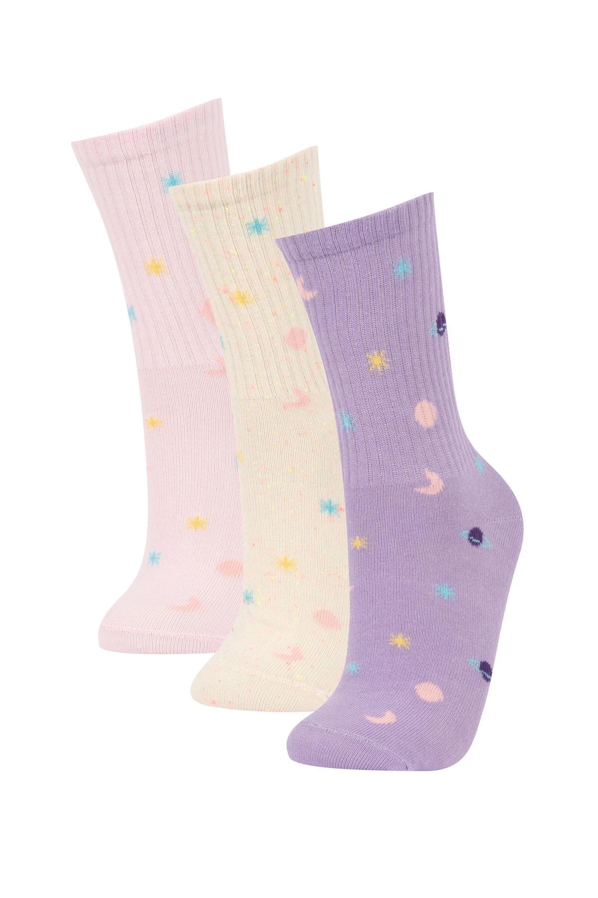 Gün boyu rahat ve konforlu kullanım sağlayan desenli modeli ile sporda tenis oynarken tarzınızı yansıtacağınız kombinlerinizin parçası olacak DeFacto Kadın Pamuk 3'lü Uzun Çorap.