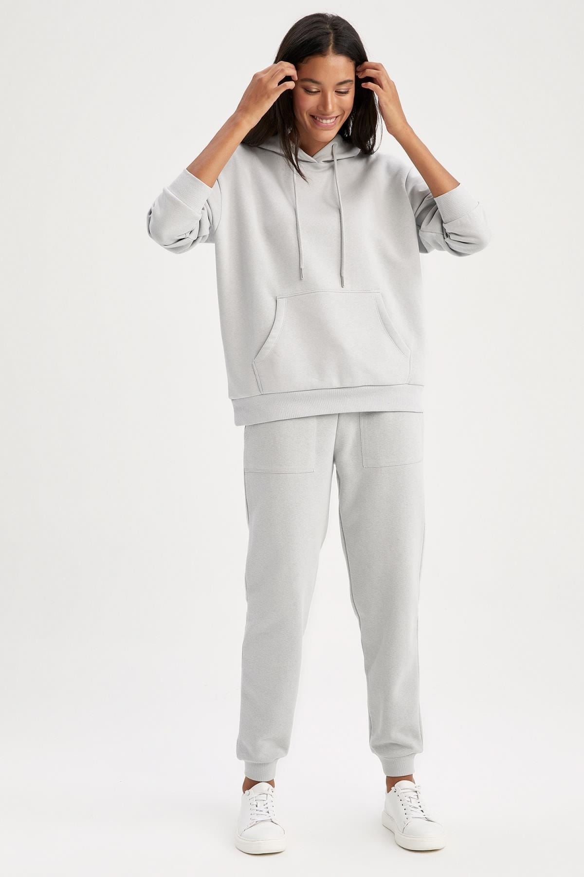 Sade modeli ve rahat kesimi ile günlük kombinlerinizin vazgeçilmezi olmaya aday, crop sweatshirt, sweatshirt, basic gömlek ve tişörtlerle kombinleyebileceğiniz, kolayca fit görünebileceğiniz, kullanışlı cep detayıyla defacto kadın beli bağcıklı cepli relax fit jogger eşofman altı.