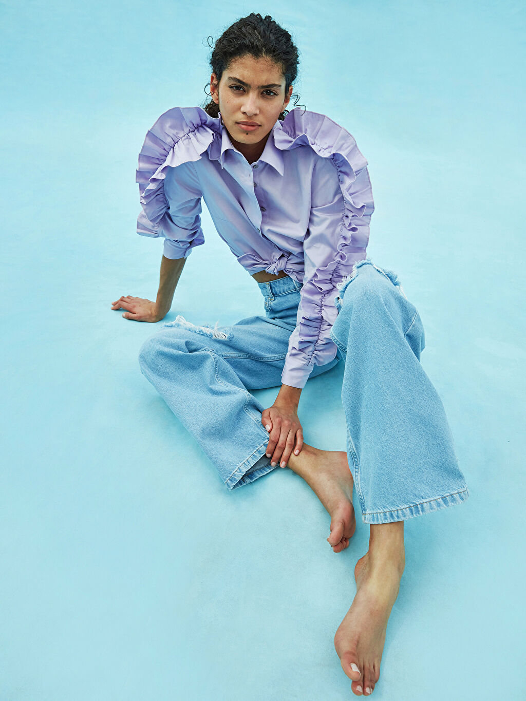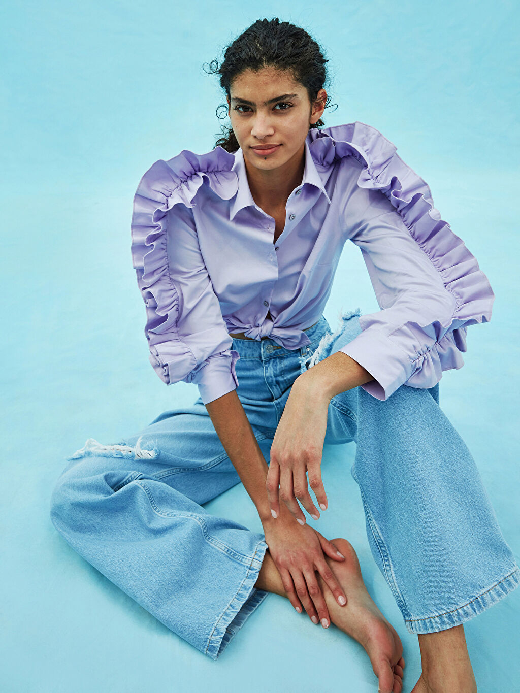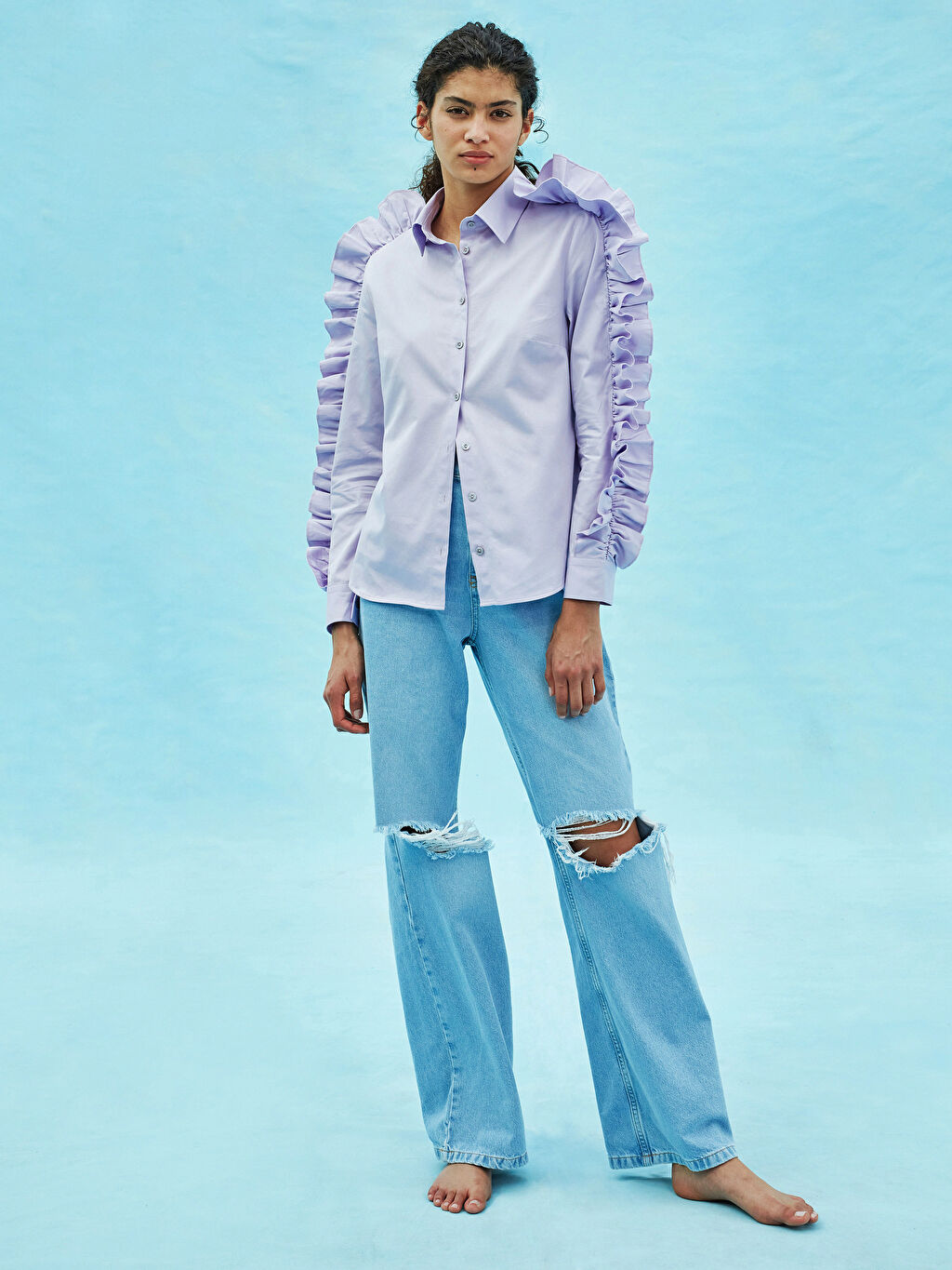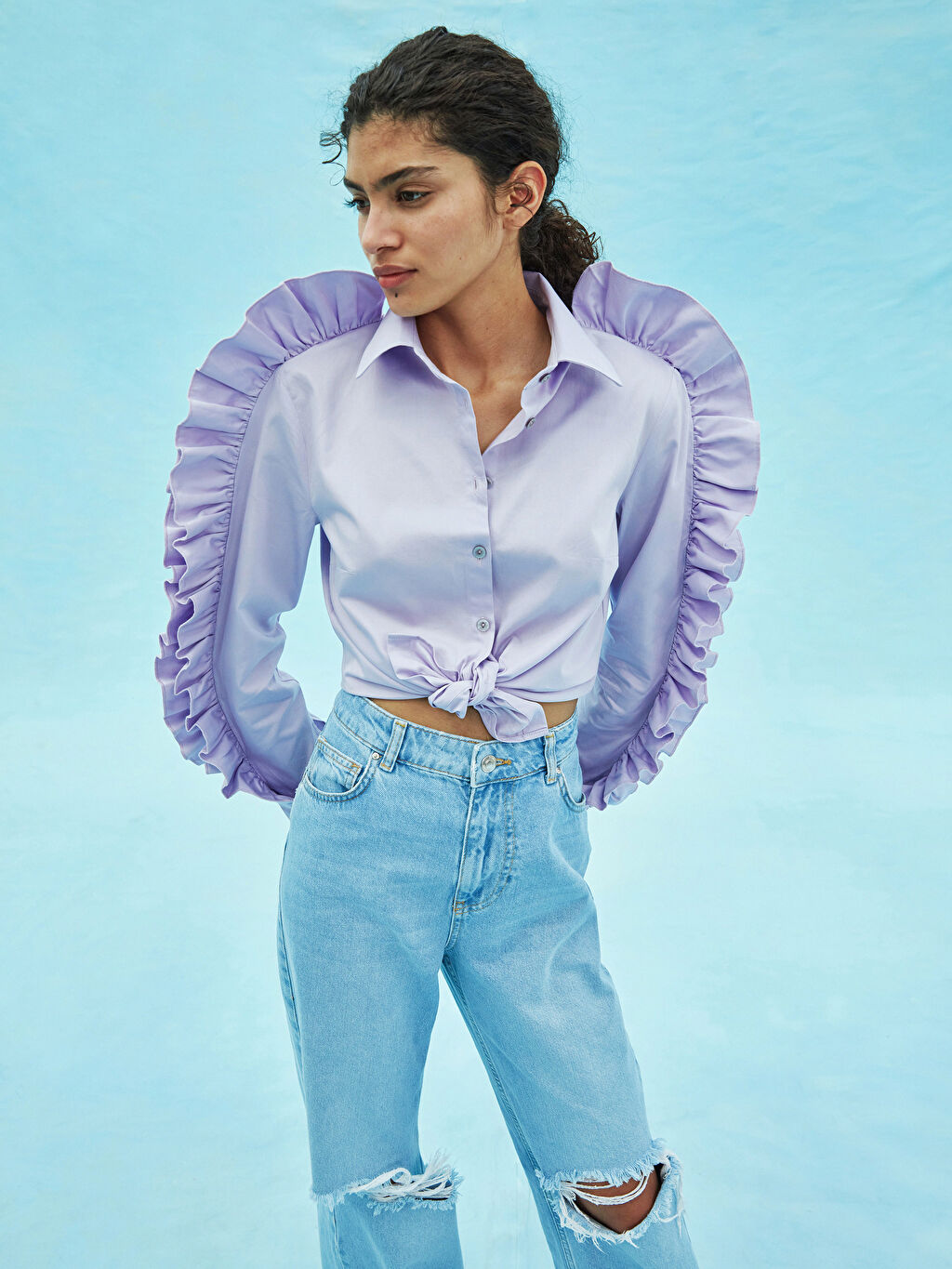 - نام : KOLLARI FIRFIR DETAYLI ÖNDEN DÜĞMELİ KADIN JADE GÖMLEK