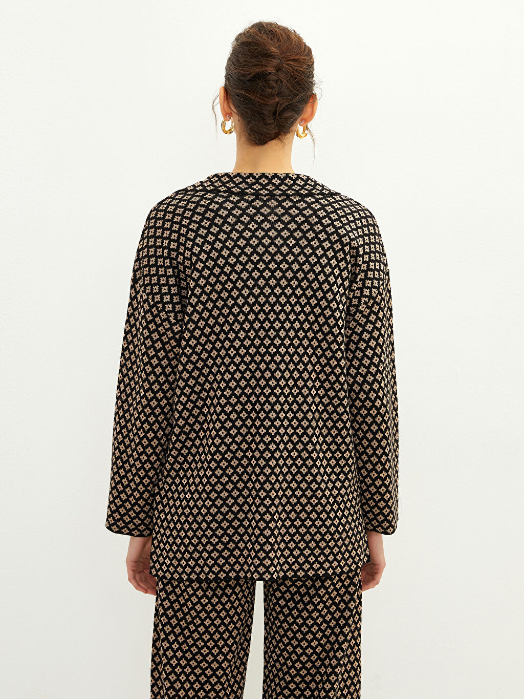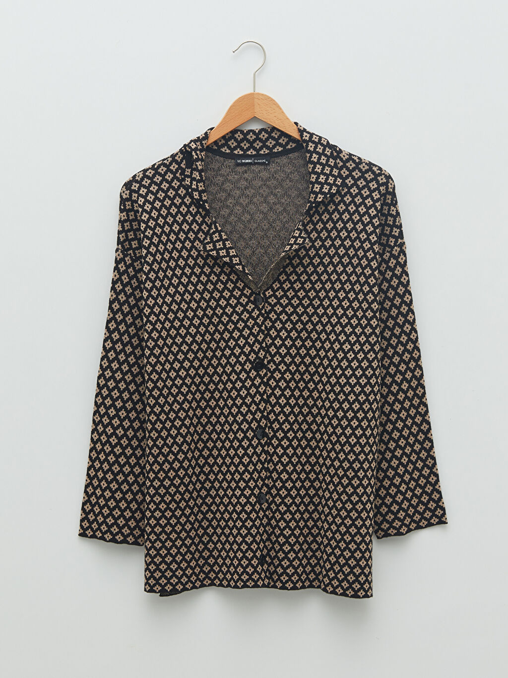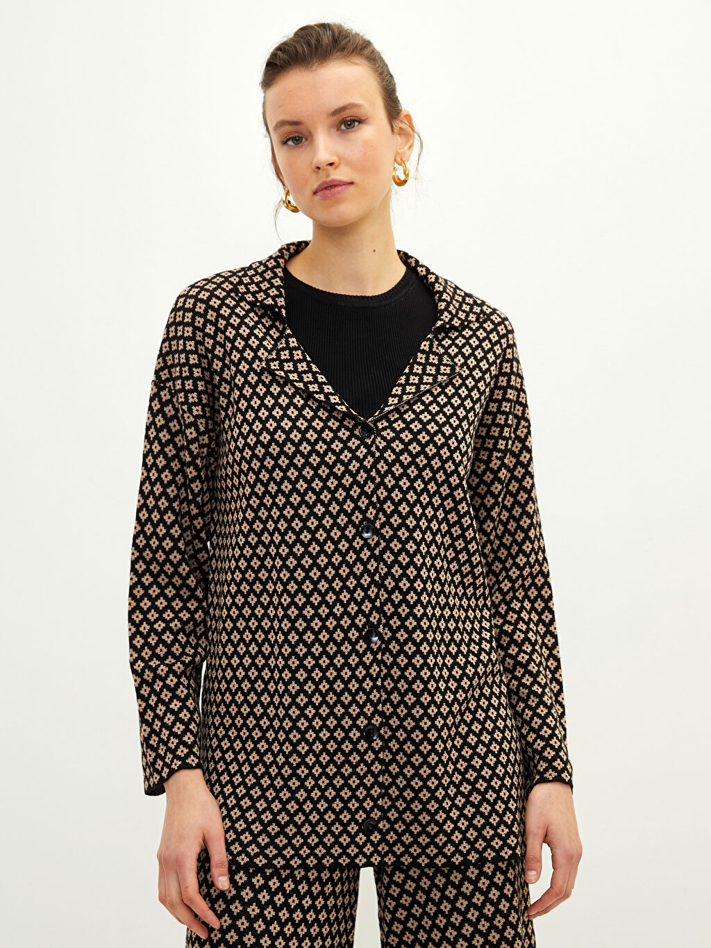 - نام : Ceket Yaka Desenli Uzun Kollu Kadın Triko Hırka