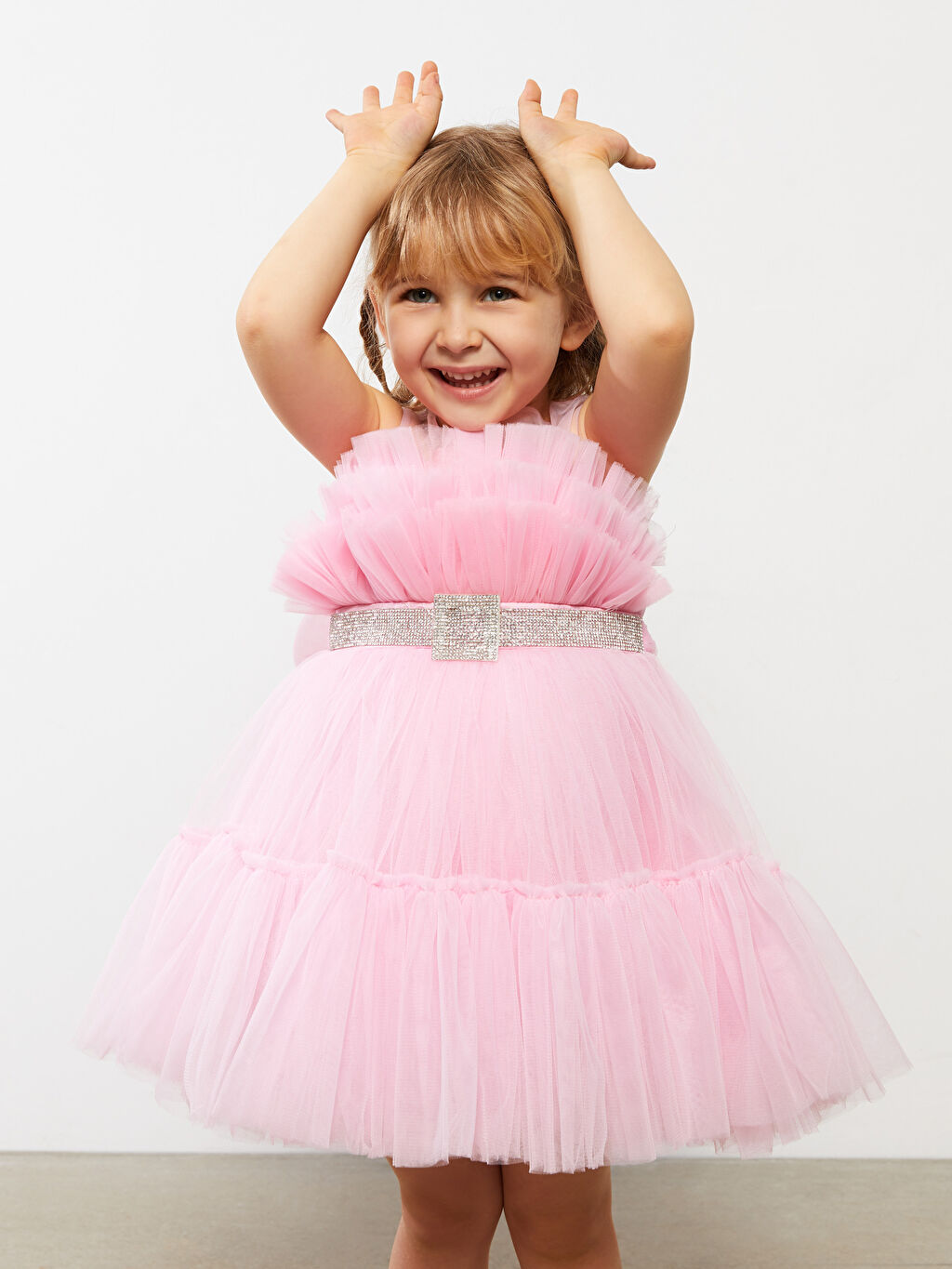 - نام : Bisiklet Yaka Tül Detaylı Kız Bebek Abiye